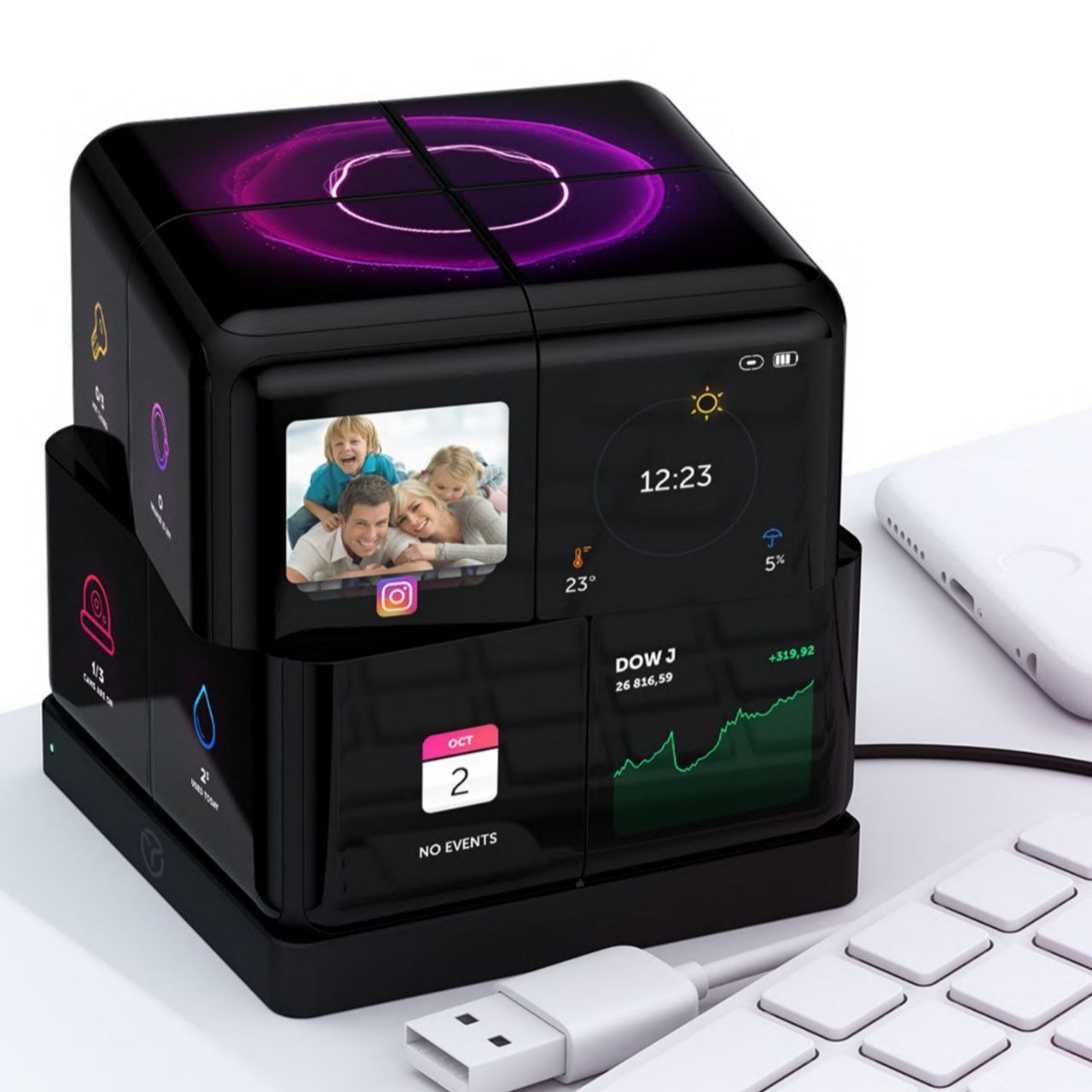 The WOWCube® System is an innovative entertainment platform that looks like a 2x2 version of traditional cube puzzles. It’s a mixed reality device with a tangible interface that combines classical 3D twisty puzzles and video games where virtual gameplay is controlled by physically tilting, twisting, and shaking the device. Patented technology, unique CubiOS operating system, and a single digital cube surface formed by screens turn the WOWCube® system into a cube you twist, tilt and shake for gaming, learning, and content. You may play many games, download new games from the application store via Bluetooth, and develop new games and applications.