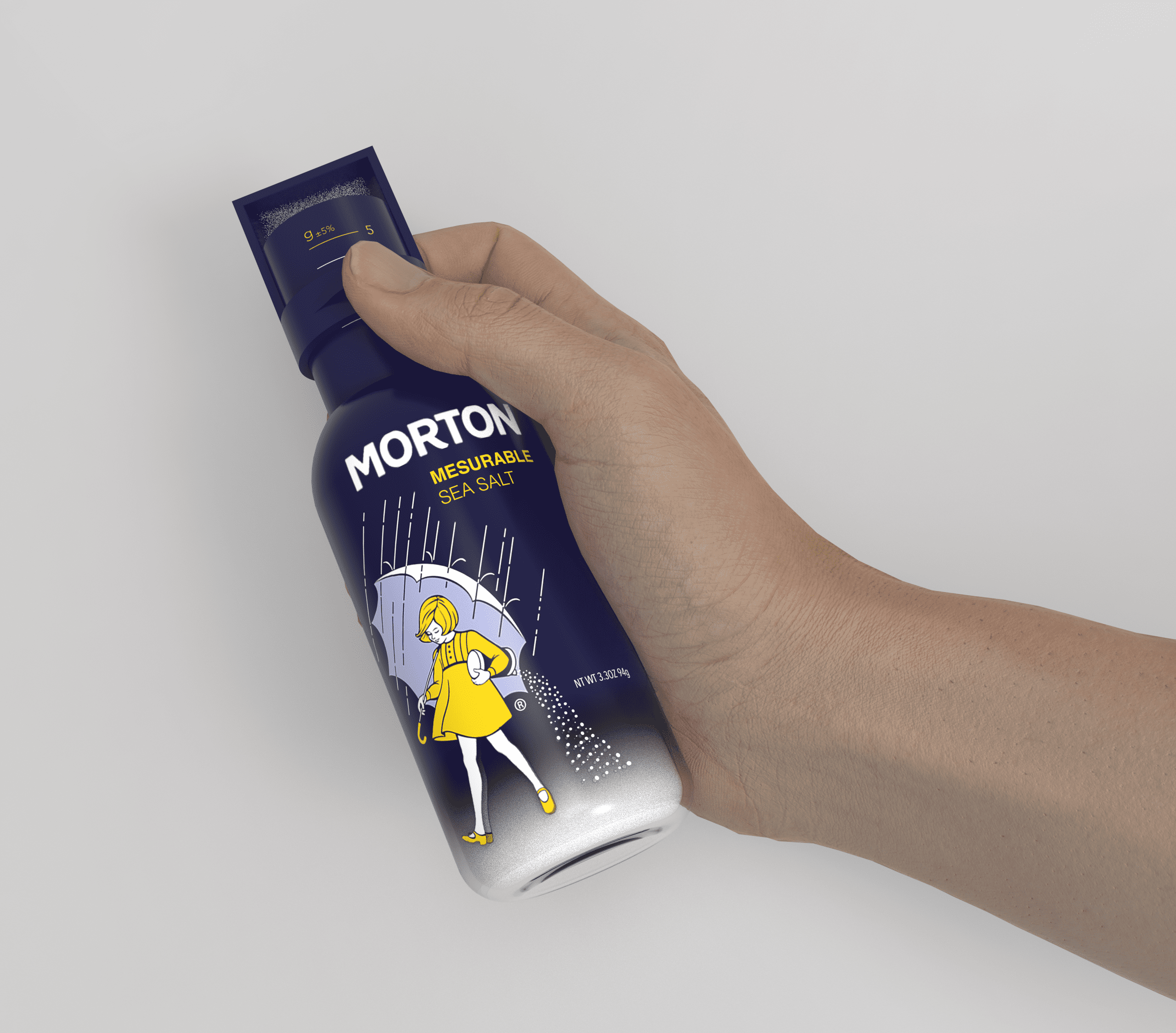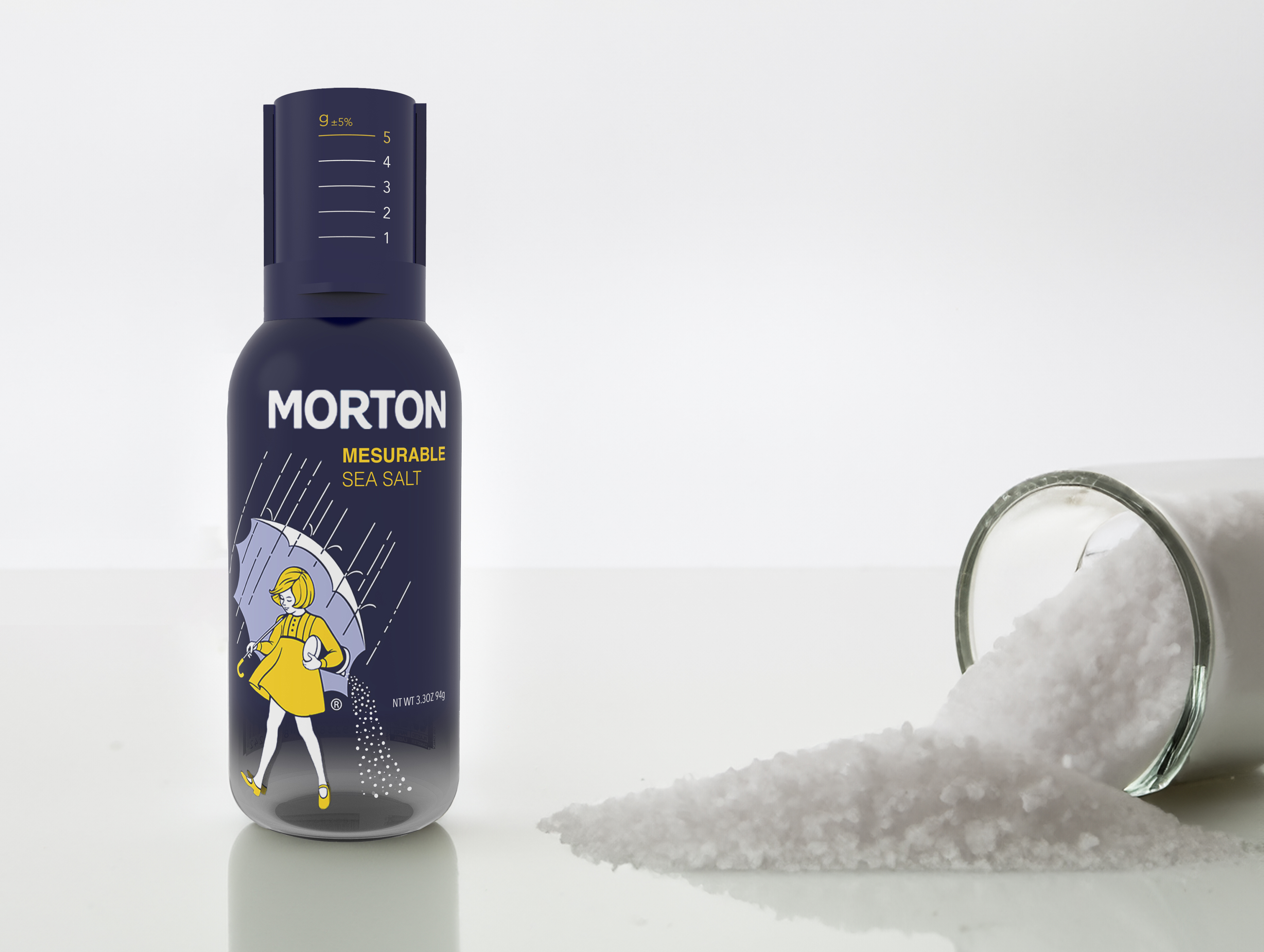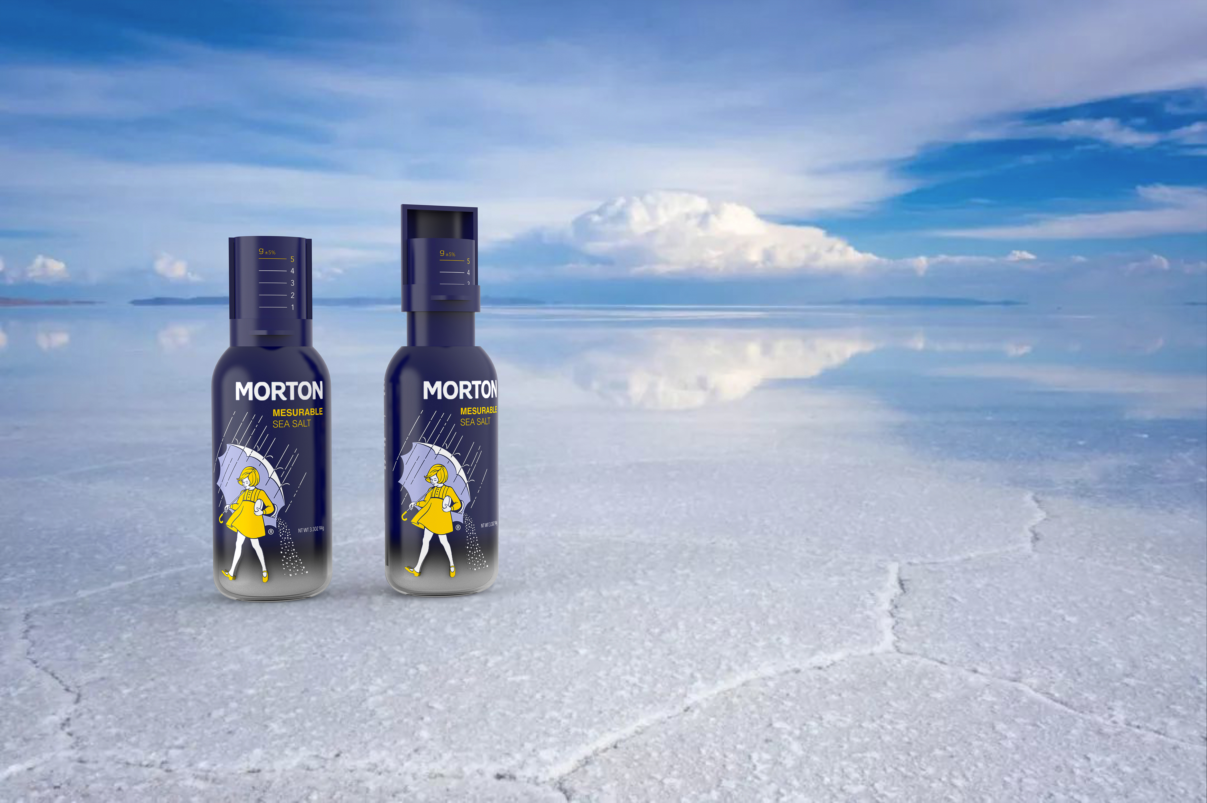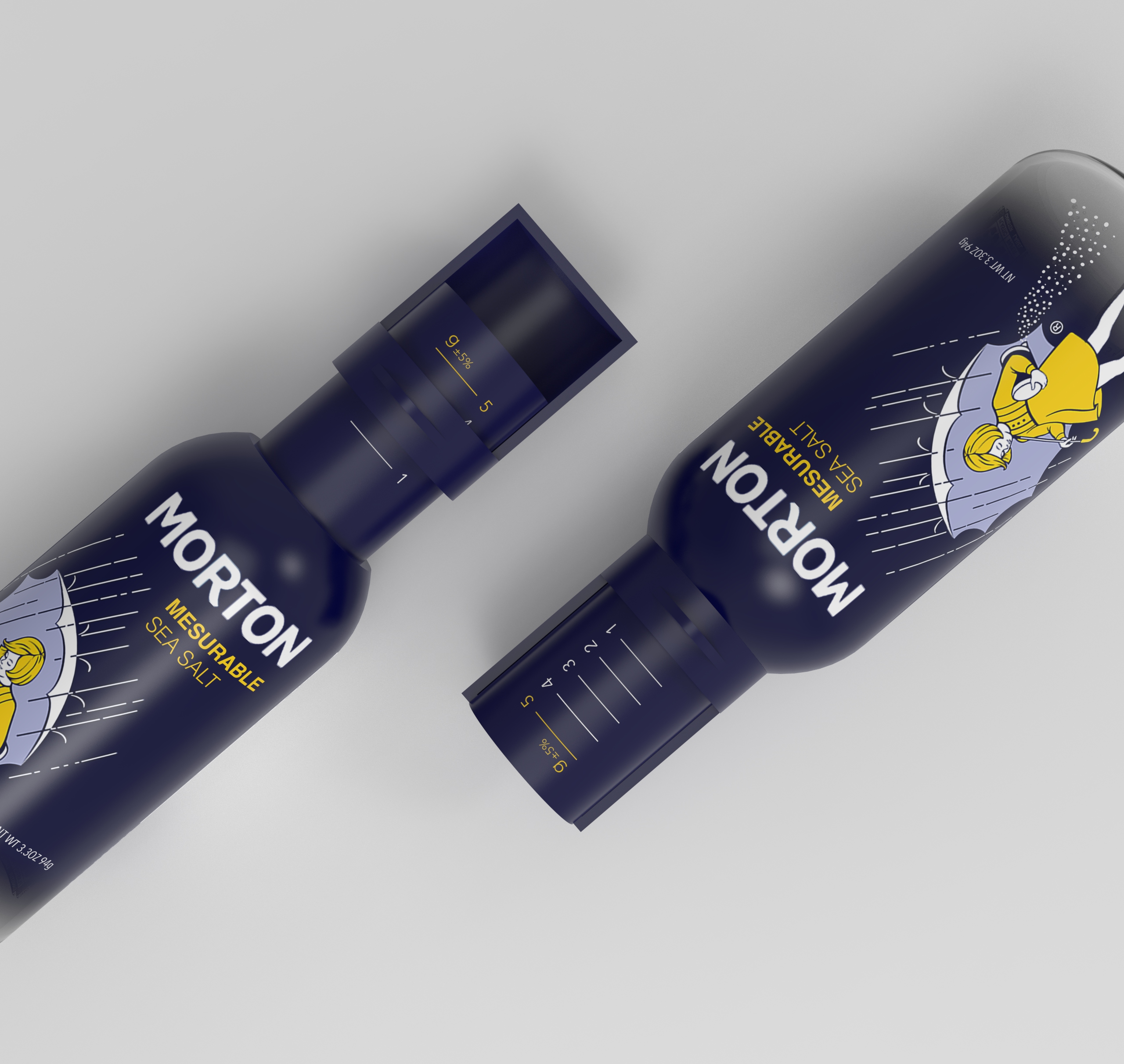 This project is a salt shaker packaging design specific for Morton. What makes it differentiated from similar salt shaker packages available in the market is uncluttered and unaffected form. The mating of the graduated groove and the snap-fit mechanism allows user to accurately dispense 1-5 g salt. It is easy to operate with just one hand. This metering salt shaker supports refilling and reuse. The transparent label on the bottom helps user see how much salt is left.