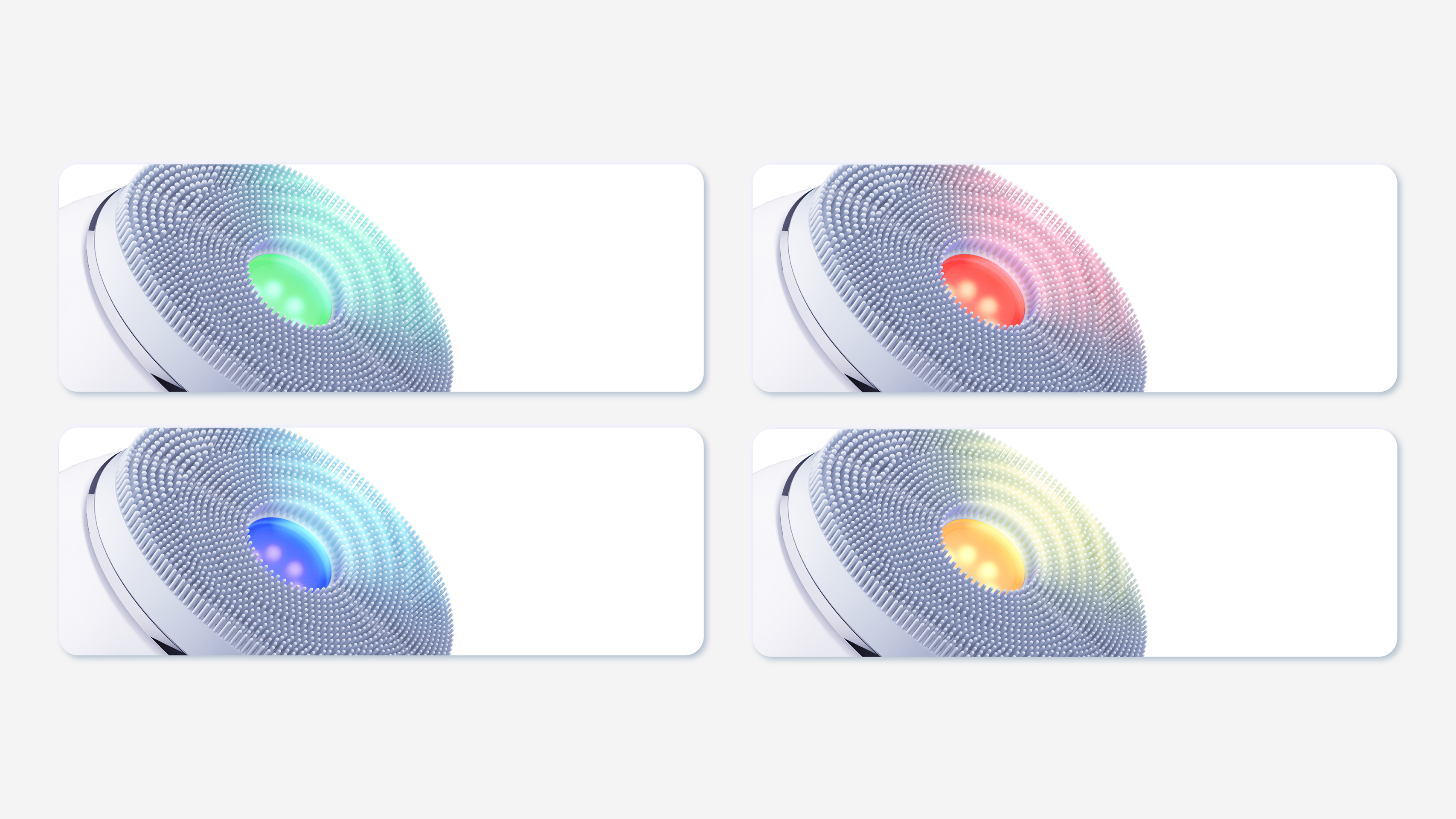 CLOUD SMART SONIC FACIAL CLEANSING DEVICE is the industry-first to use graphene heating technology, combining cleansing and LED light therapy beauty. Featuring a light cloud-inspired shape, this device weighs only 205g, enhancing the visual lightness and comfort. The curved case and cloud-like arcs are not only eye-pleasing but also ergonomic, ensuring tight and stable grip in wet conditions. It applies a triple-zone cleansing brush with up to 1768 ultra-thin bristles: 0.5mm-diameter zone for gentle cleaning off of the makeup, 0.6mm-diameter zone for regular cleaning, and 0.9mm-diameter zone for deep cleaning, enabling finer and softer cleaning for all types of skin, especially for sensitive one. It employs four modes (green/red/blue/yellow) of LED light therapy that allows for free switching based on diverse skincare needs, offering a one-stop solution for skin cleansing and beauty. This device adopts graphene heating technology, releasing far-infrared rays in power-on status to secure a 45-degree Celsius warm massage, which helps promote microcirculation. Additionally, it achieves an ultrasonic vibration frequency of 33,000 times/min (max.), facilitating blood circulation and reinvigorating the skin.