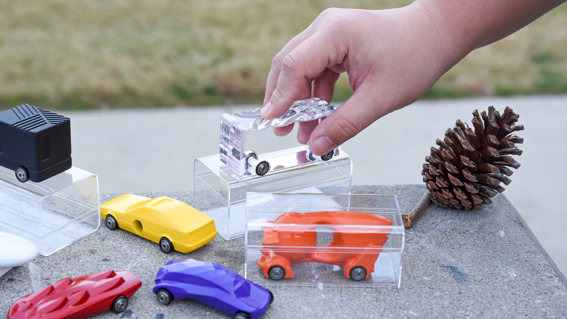 Phosphene is a thoughtfully designed toy car collection, crafted to bridge the sensory gap for those with visual impairments while offering universal appeal. Each car in the collection is a tactile representation of a color, embodied through unique shapes and textures. Made from eco-friendly recycled plastic, these cars are solid, polished, and simple in structure, yet rich in sensory experience. The use of ball bearings and rubber tires, coupled with titanium alloy M3 screws, ensures smooth motion and durability. What sets Phosphene apart is its inclusive design philosophy. It allows users of all abilities to explore and appreciate the nuances of color through touch, fostering a deeper understanding and connection. The cars also encourage creative engagement, with their assembly and customizable features sparking imagination and interaction. Phosphene is a testament to inclusive, empathetic design, redefining the boundaries of sensory perception and play.