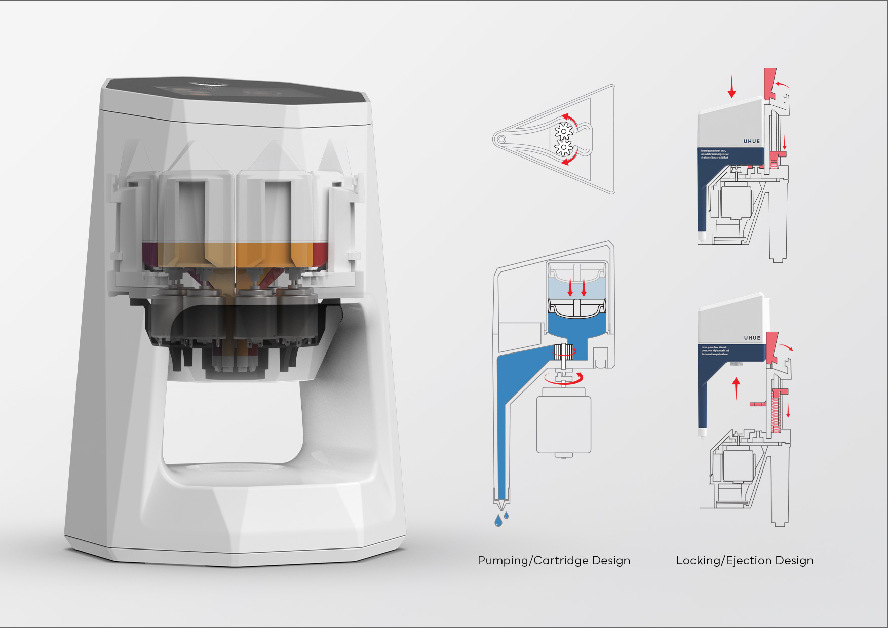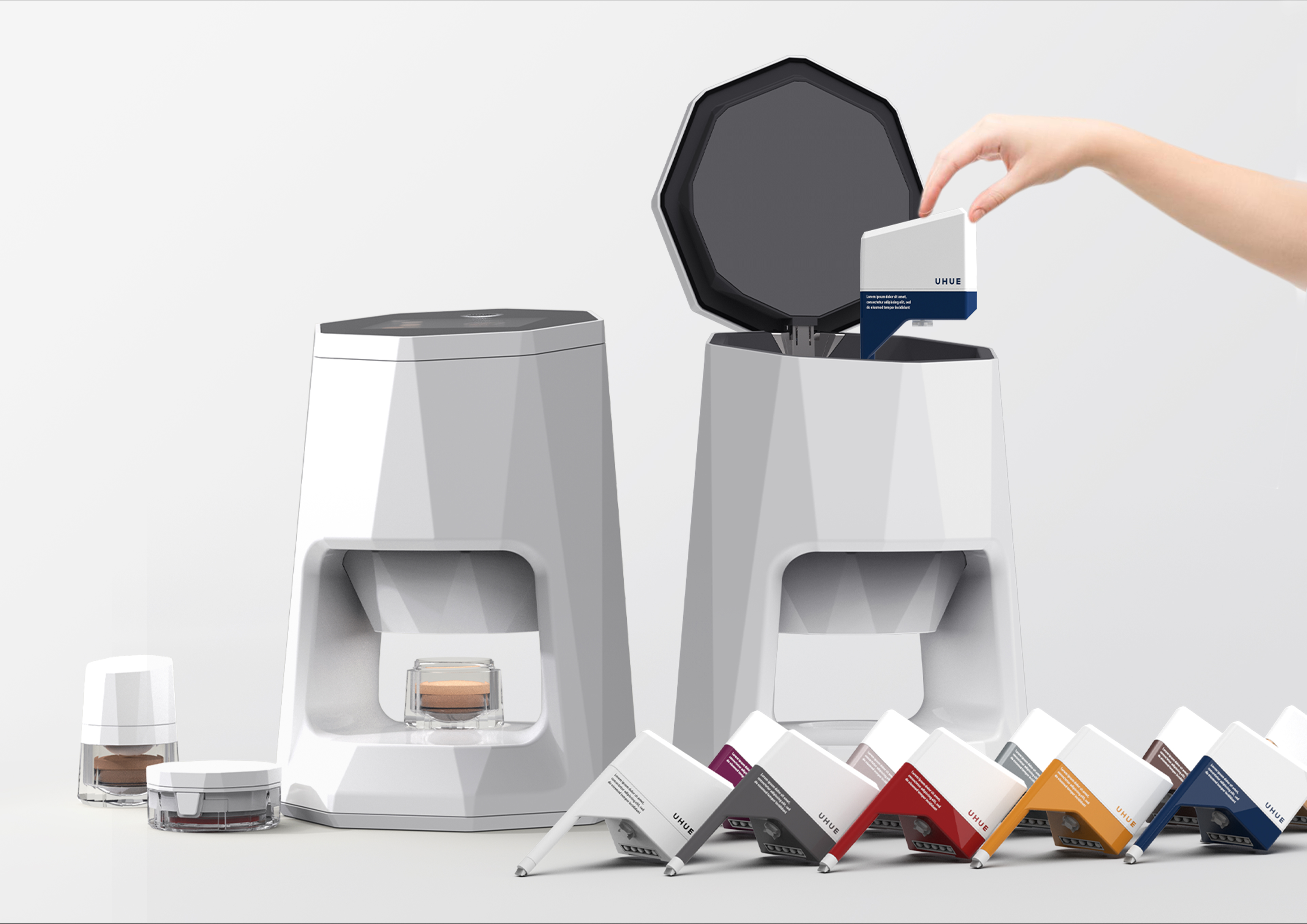 UHUE™ is a first-of-its-kind, at-home custom cosmetic creation device. Putting the power of a dedicated cosmetic factory at your fingertips and on your countertop. Studies have shown that nearly 80% of women struggle to find cosmetics that match their skin tone. This is even more challenging for those who have less common complexions or who are not represented in the traditional cosmetic industry. With UHUE we provide total control for all skin types. Including customizable options in base shades, accent colors, hue, saturation, undertones, coverage, finish, and shimmer. Users can create their entire routine including foundation, concealer, bronzer, lip color, and eyeshadow. They can save, recall, update, and even share their formulas with their friends and community. With UHUE the possibilities are endless.