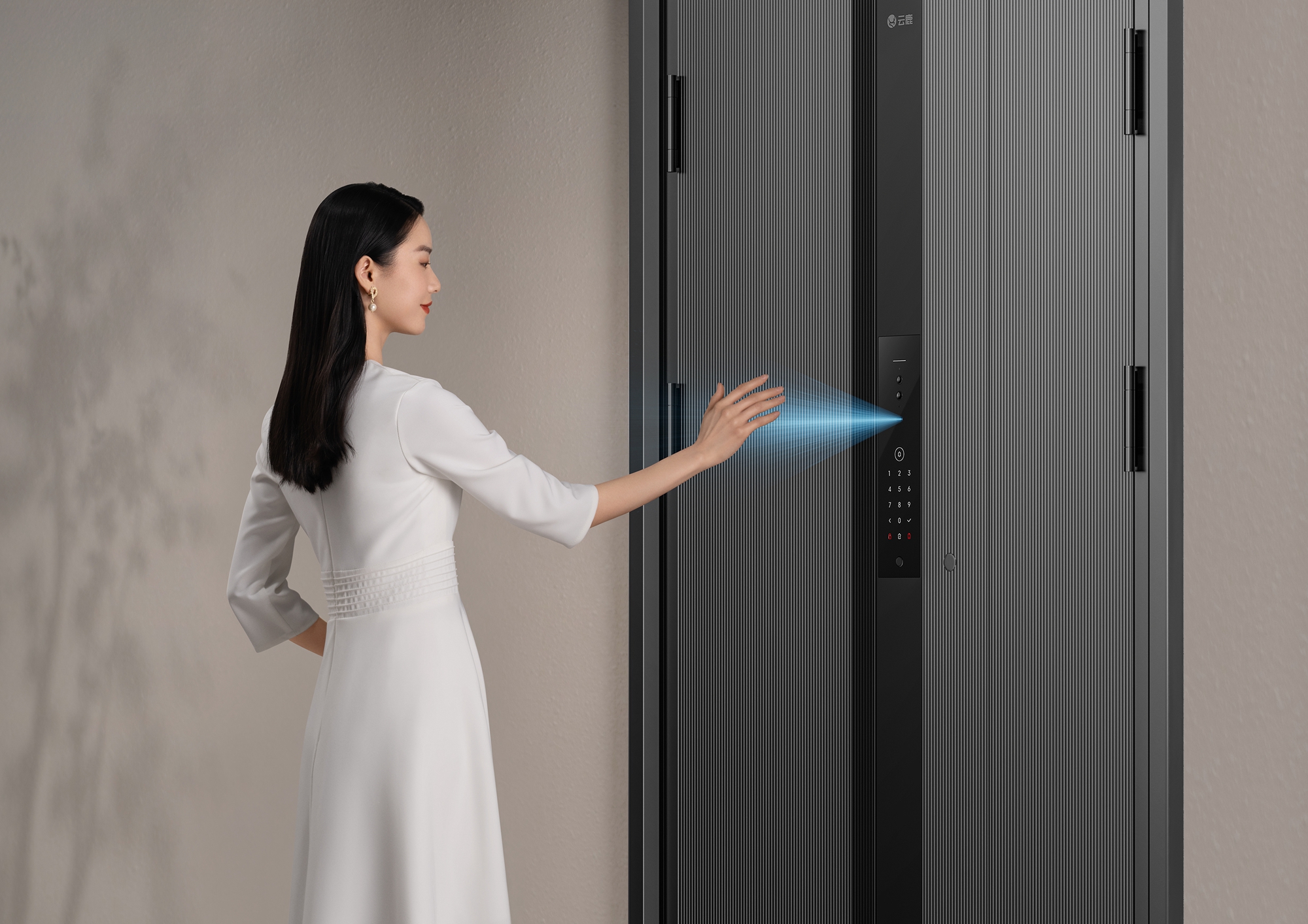 This product is a new smart entry door with the integration of smart unlocking, AI security, interconnection, lifetime power guarantee. Focusing on the demand of "smart entry", it solves the sore points of users regarding the unaesthetic appearance, functions fail to deeply link and expand, convenient unlocking, security and power supply anxiety and other scenarios.The product features the industry's first smart door with higher integrity from appearance to function.