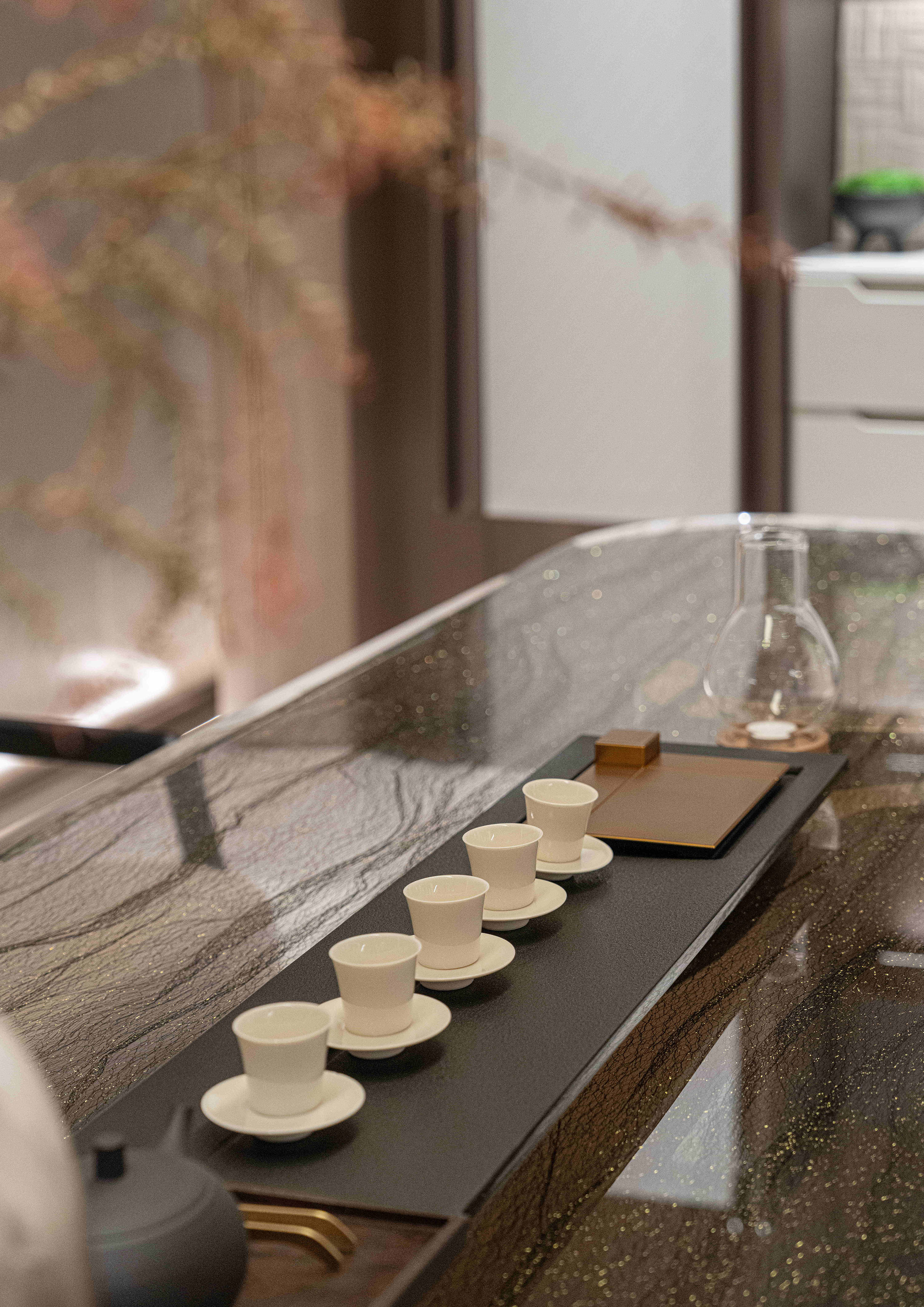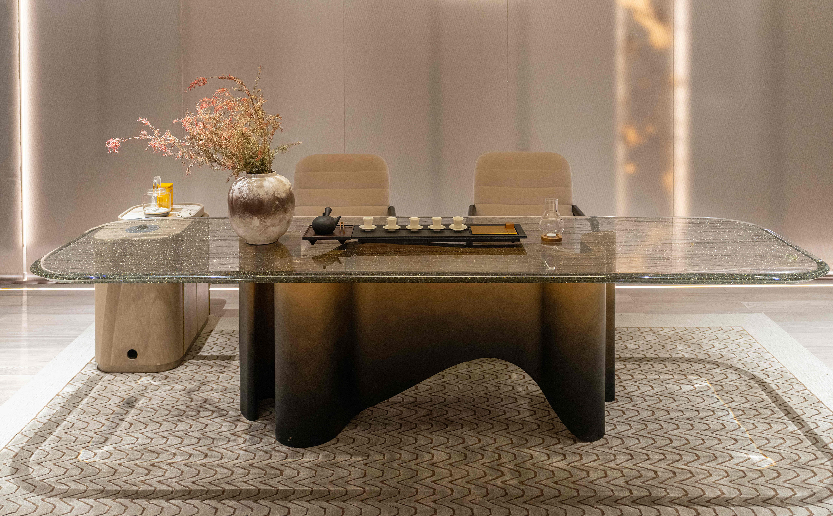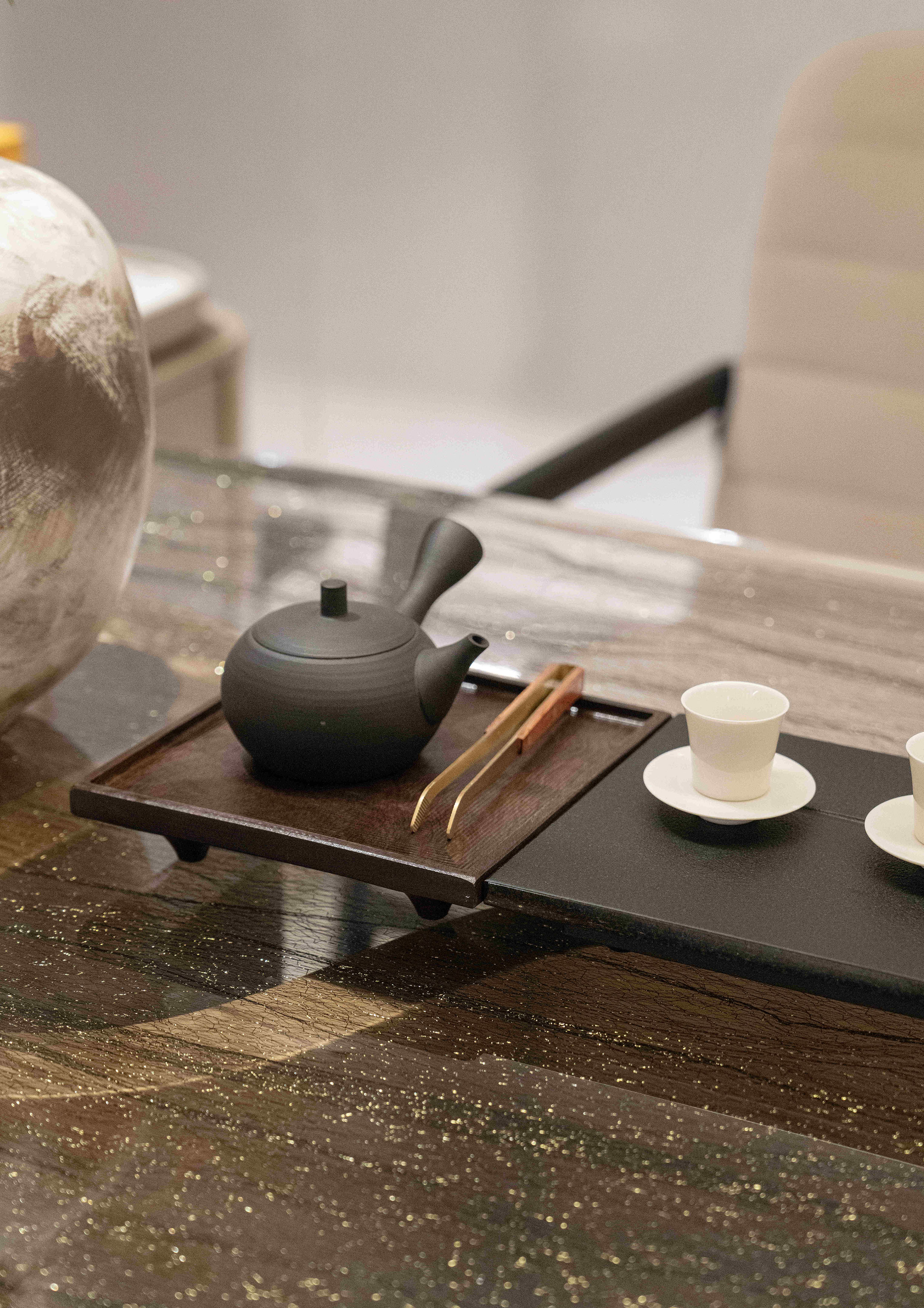 Tea is an essential aspect of traditional Chinese culture, yet it seldom features prominently in furniture product design. This tea table is visually striking and highly functional. Its height of 700mm is designed to accommodate Eastern people's sitting habits when making and tasting tea, reflecting the brand's deep insights and research into contemporary Eastern lifestyles.