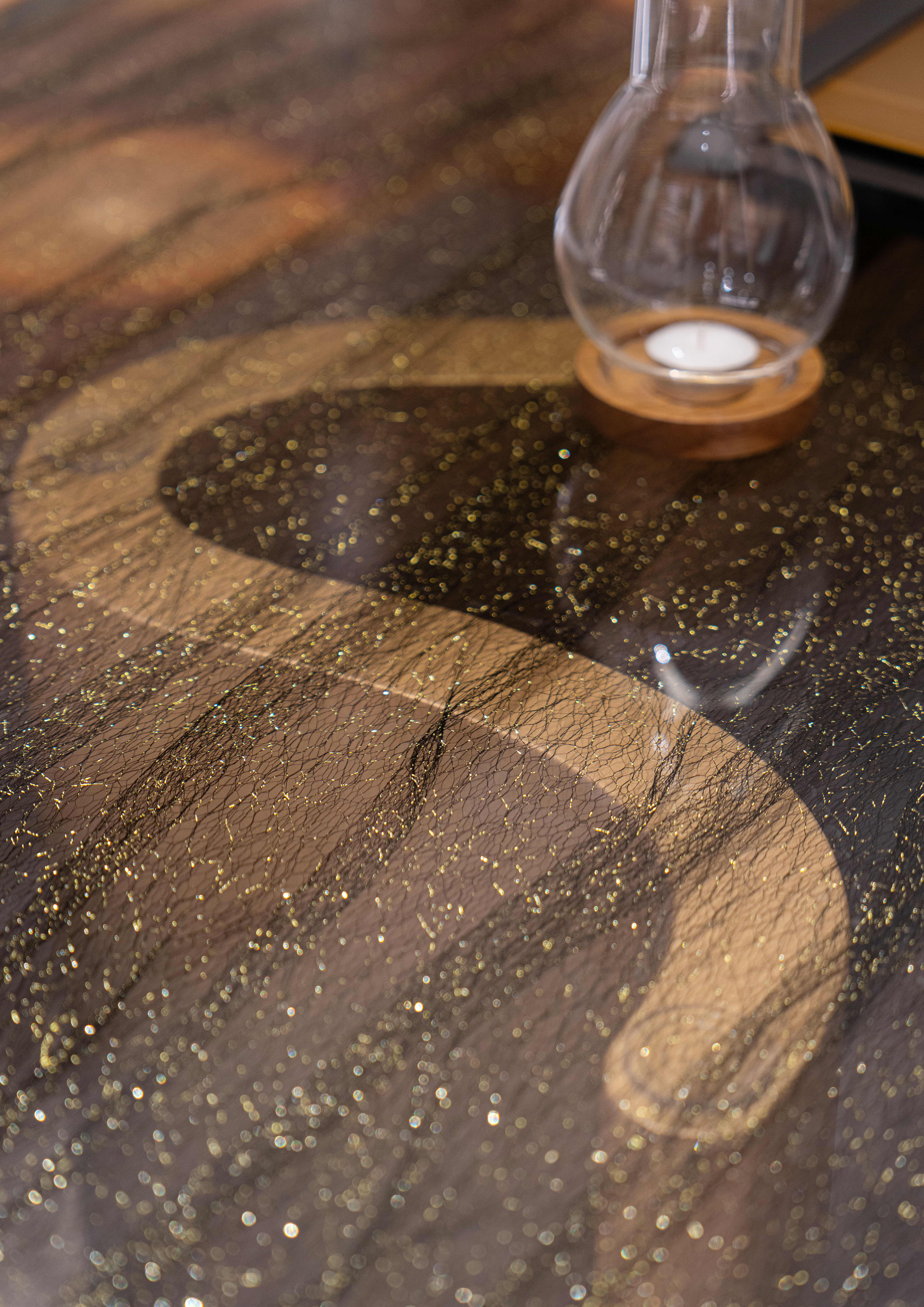 This tea table employs a wired acrylic process, with Yunnan handmade weaving artwork embedded in the table plate. The result is a stunning visual aesthetic, evocative of clouds and mist-covered terraces, that imbues the tea table with a unique cultural value. The legs of the table are constructed using a stainless steel hot bending process, resulting in an undulating curved surface. The transparent acrylic plate reveals its cross-section on the tabletop, resembling the winding paths found in terraces. This further strengthens the emotional connection between the tea table and the user, making it feel as though one is savouring tea amidst misty mountain terraces.