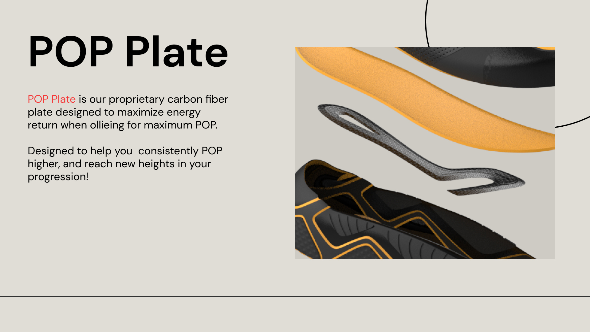 The main action of skateboarding is jumping. No shoe on the market addresses this need to jump higher and get energy returns from this action.