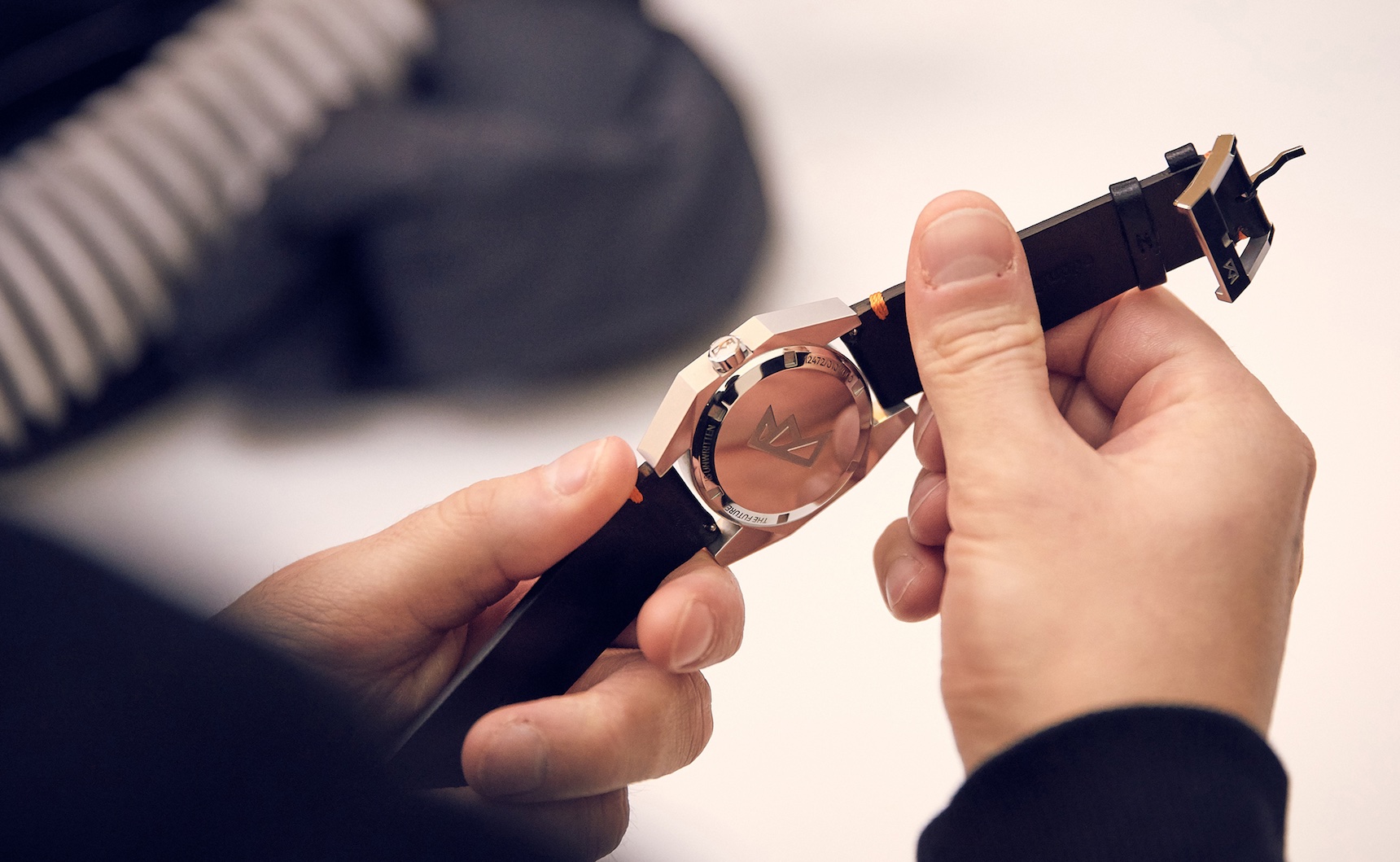 Time, its passing, its individual perception, is the central theme of the brand. Belchengruppe combines this with a fascination for design. The highly-precise Swiss clockwork mechanism at the core of the watches works to display the subjective nature of time. The technical accuracy of the mechanics is broken up by the design and allows the watches to embody the ambiguity of time.