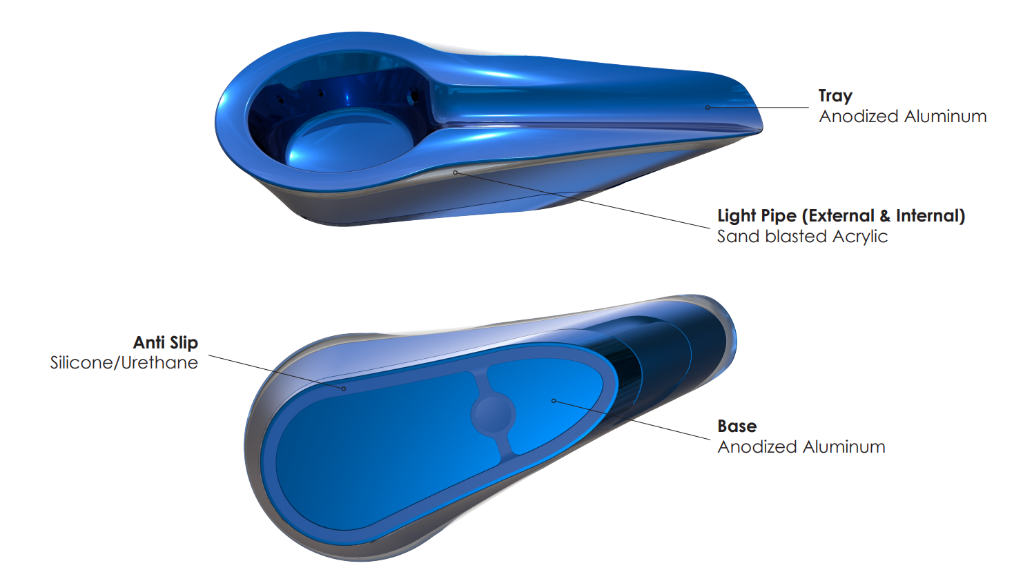 The Cigar Tray is a first-of-its-kind, sensor-based ashtray that continuously measures the burning temperature of a cigar placed on its lip. It provides visual cues to the user using tri-colored LEDs to ensure the cigar is burned as evenly as possible, resulting in an elevated taste and overall smoking experience. The Cigar Tray also has the supportive capability of transmitting the cigar temperature to the user's smartphone using Bluetooth technology. This affords the user the ability to place their cigar down and roam or complete a task while monitoring their cigar's temperature and burn rate from a distance. Its sleek design and utile burn-assist feature make it the perfect home accessory for cigar enthusiasts who revel in indulging their passion on their patio, front porch, or in the backyard during a family BBQ.