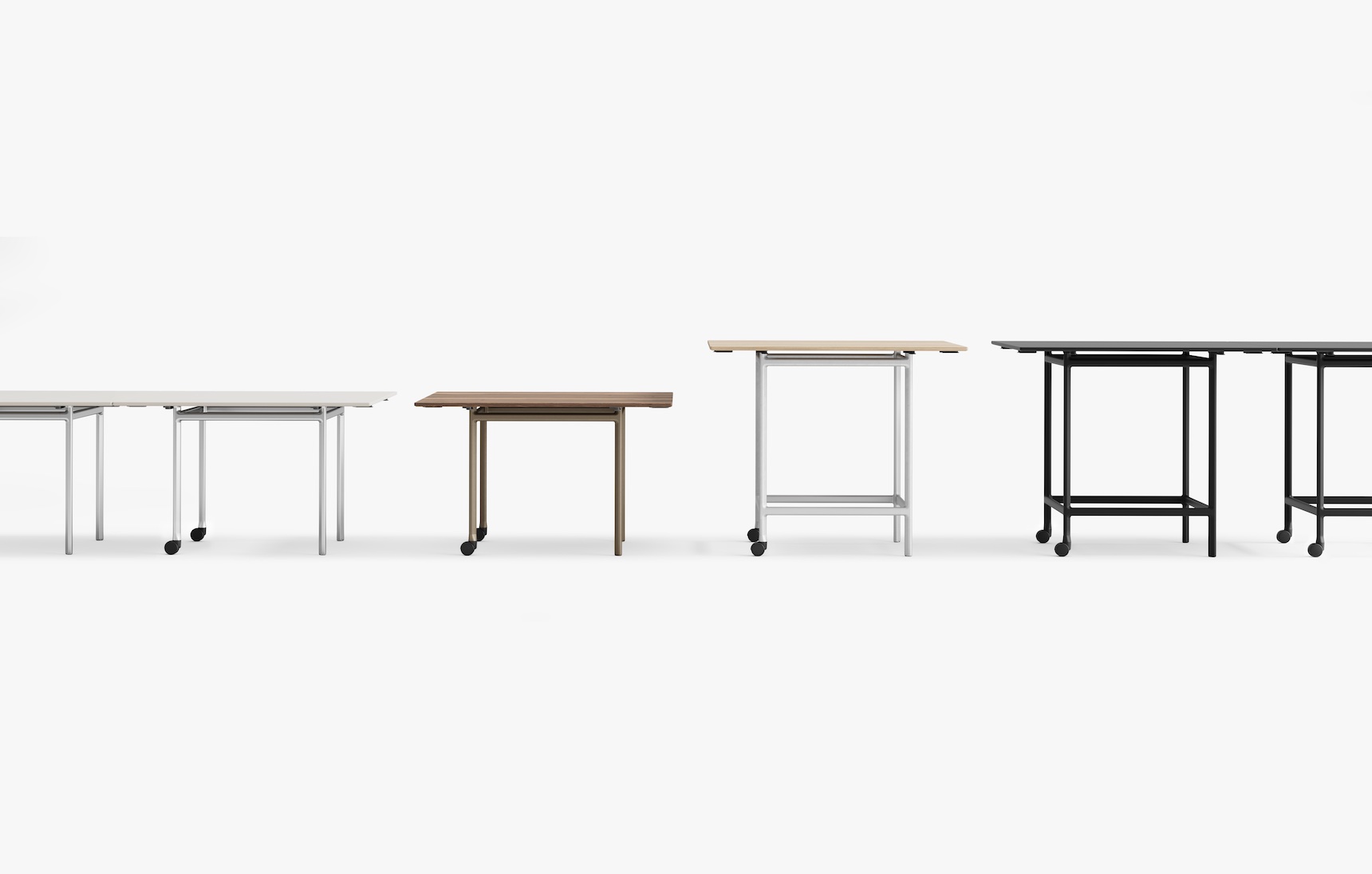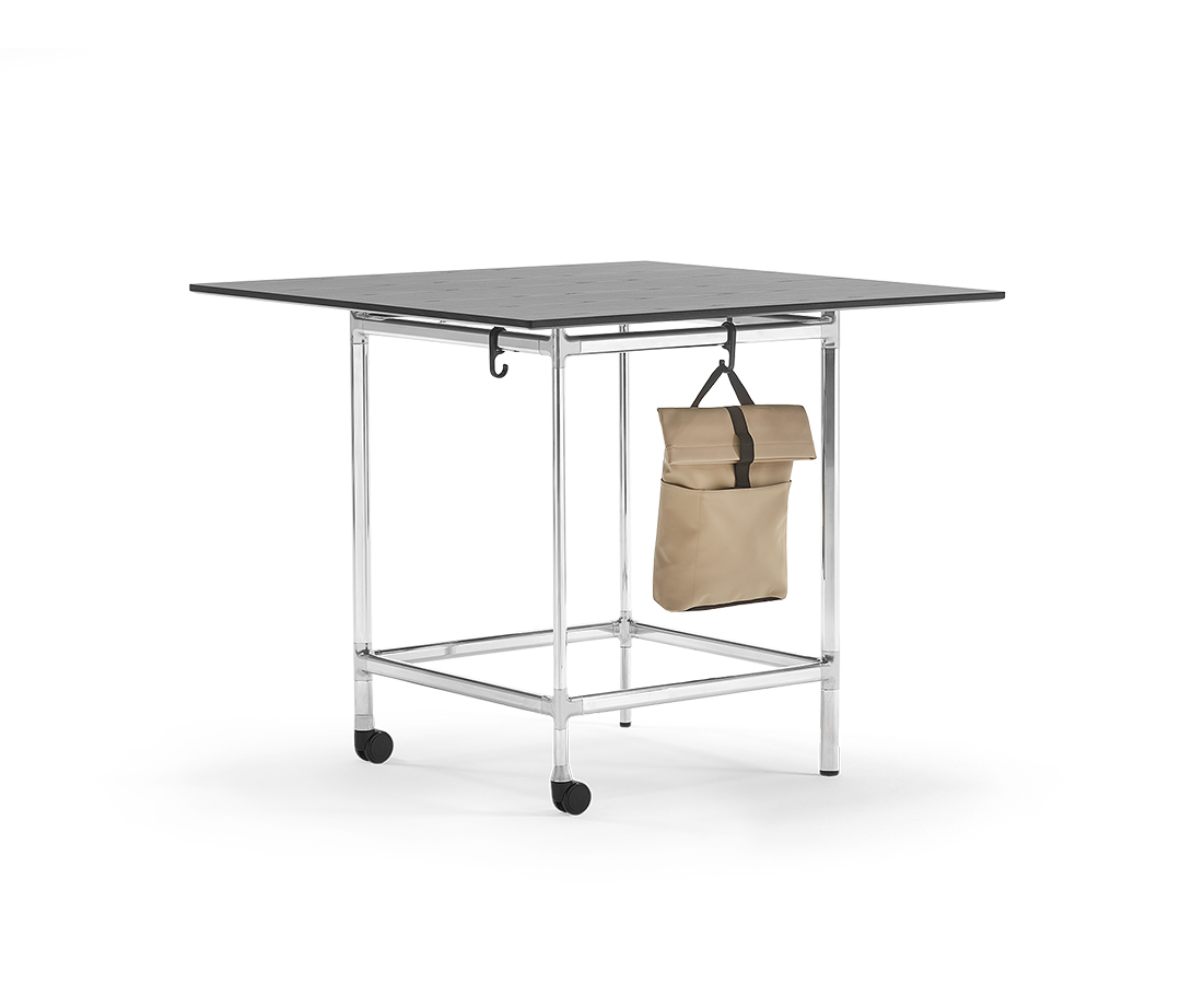 Epix tables are a mobile surface solution that can be arranged for small work groups, or easily ganged to accommodate large-scale gatherings. Equipped with two casters for easy arrangement, they are available at conference, counter and bar heights. Under-mounted hooks provide storage for bags and coats to maintain a clear work surface.