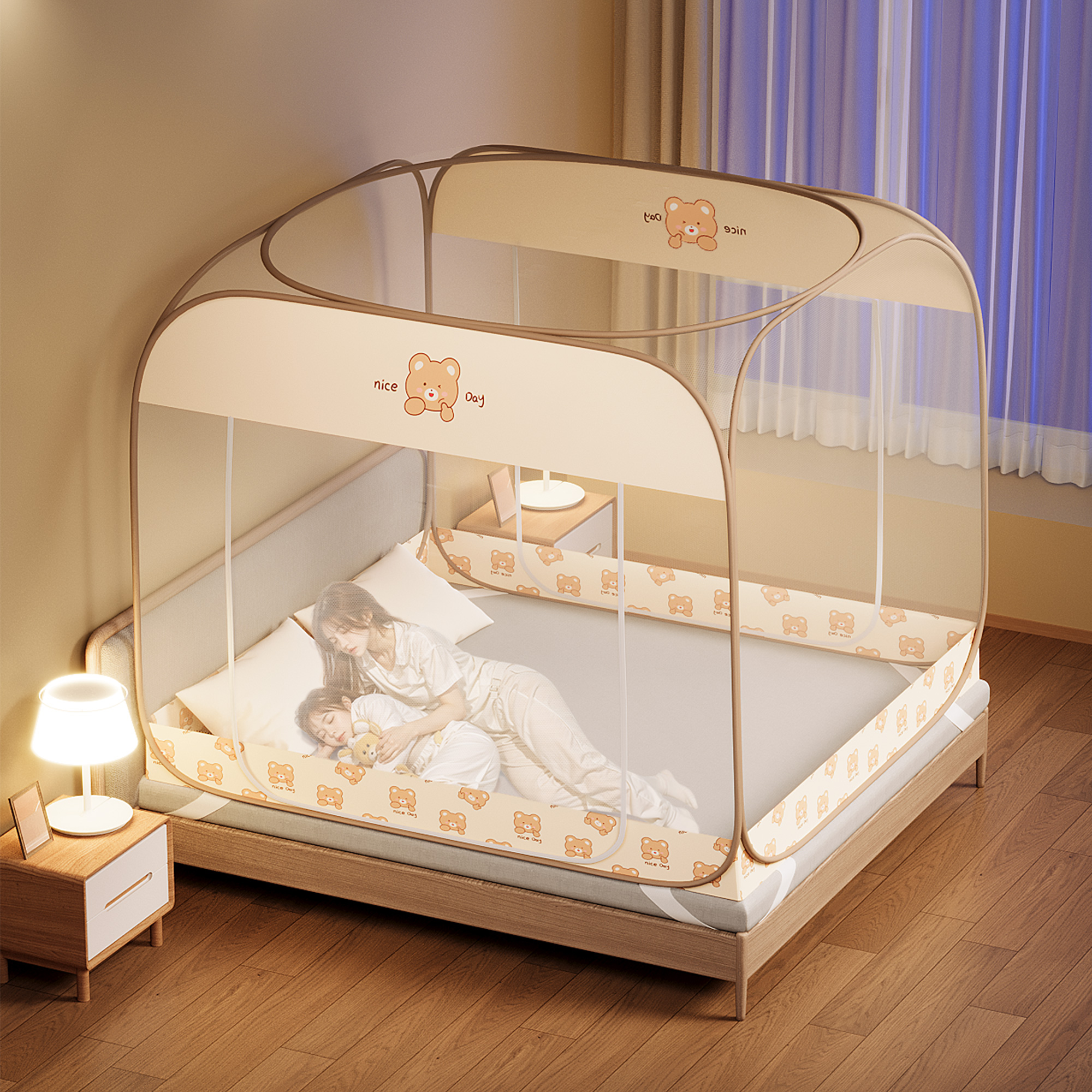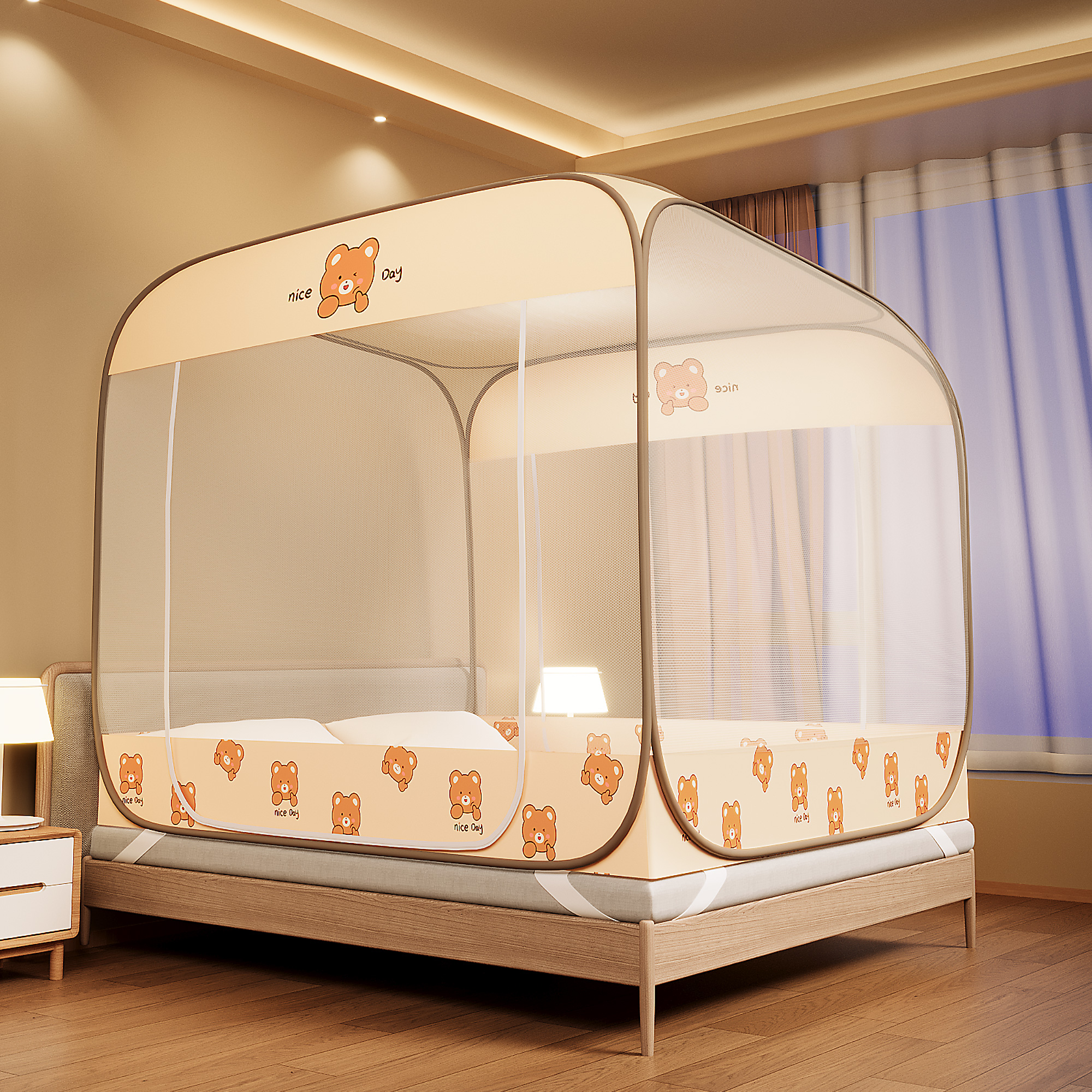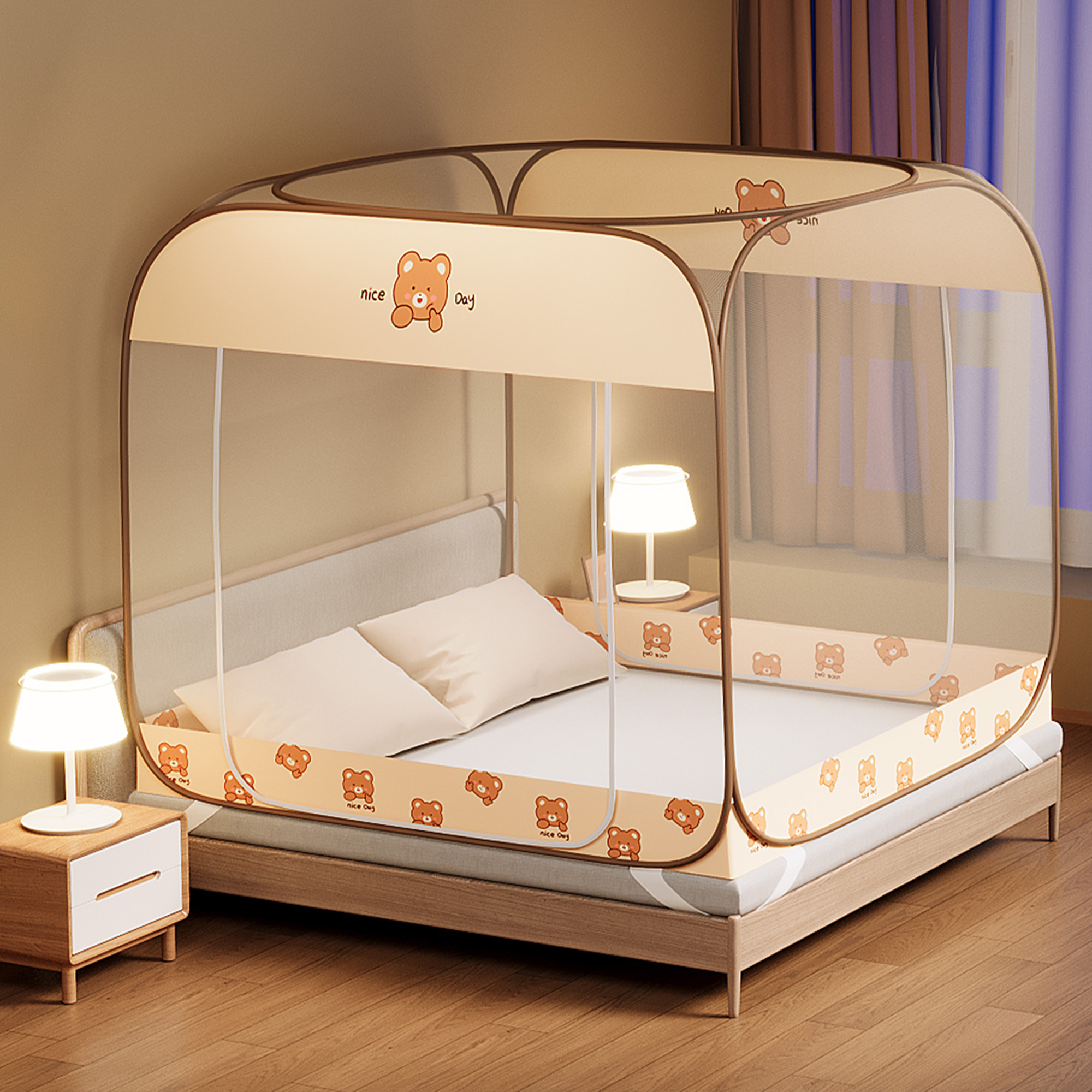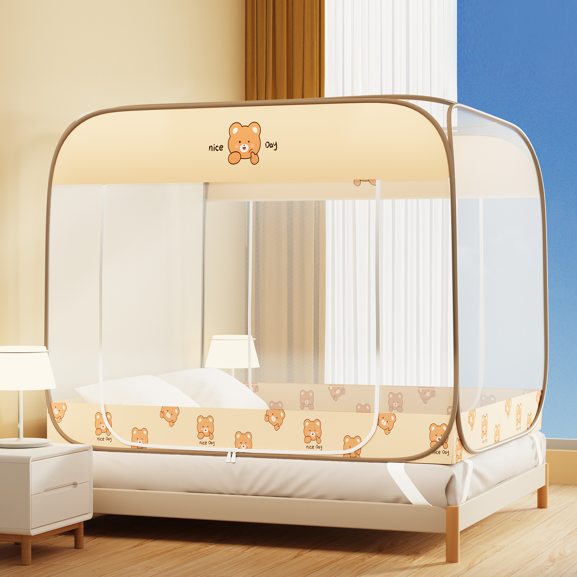 Composed of mosquito net yarn and mosquito-proof fabric, this mosquito net features a main structure supported by highly resilient steel wire, offering excellent usability as it only needs to be unfolded to take shape. This installation-free design eliminates the need for users to assemble the product and can be quickly folded for storage when not in use.