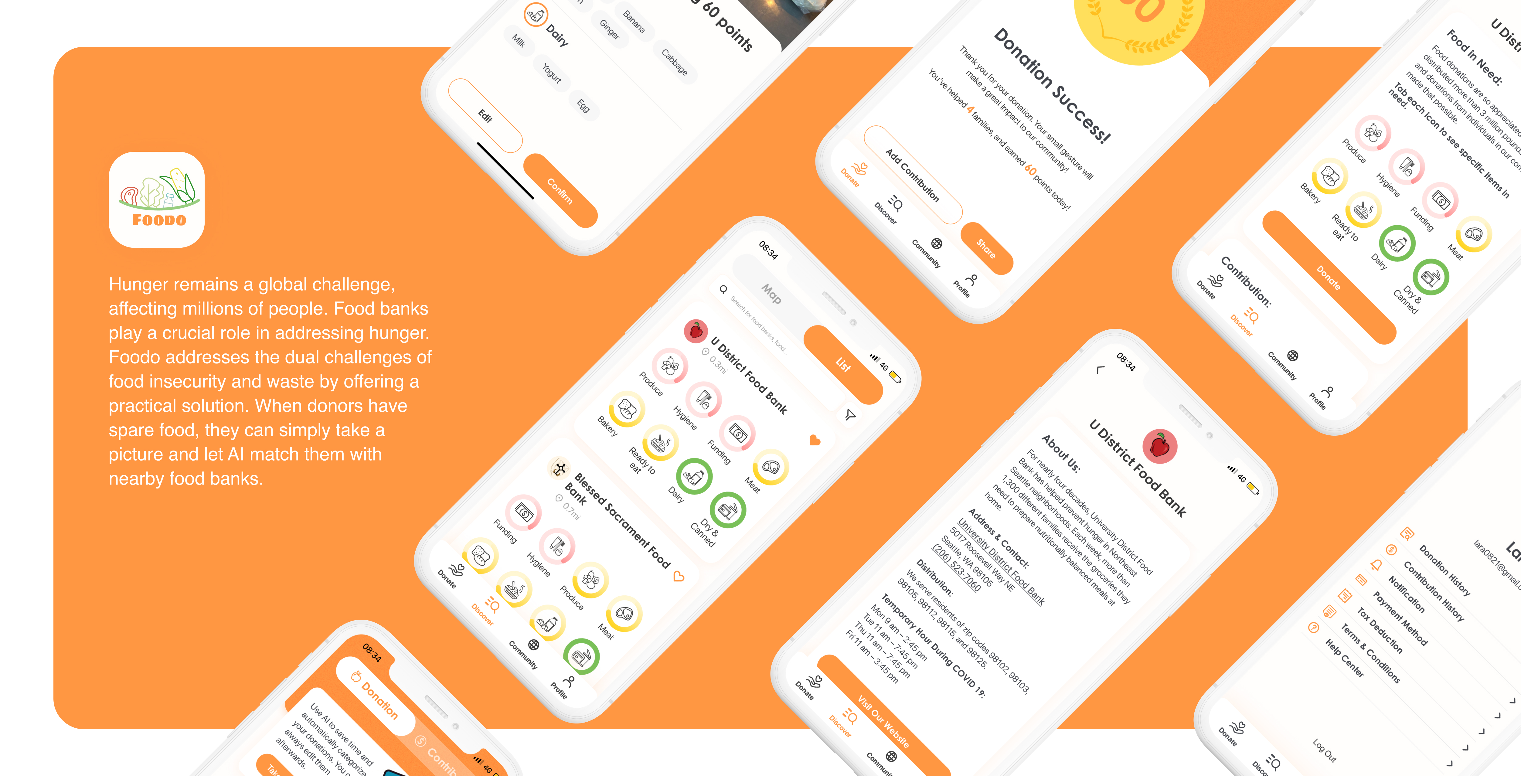 Foodo reimagines the process of food donations by seamlessly bridging the information gap between individual food donors and food banks. Utilizing advanced AI, Foodo matches the food and monetary donations with food banks that need them most. Our vision is to create a motivation-driven solution that fosters long-term sustainability, aiming to combat hunger and eliminate household food waste.