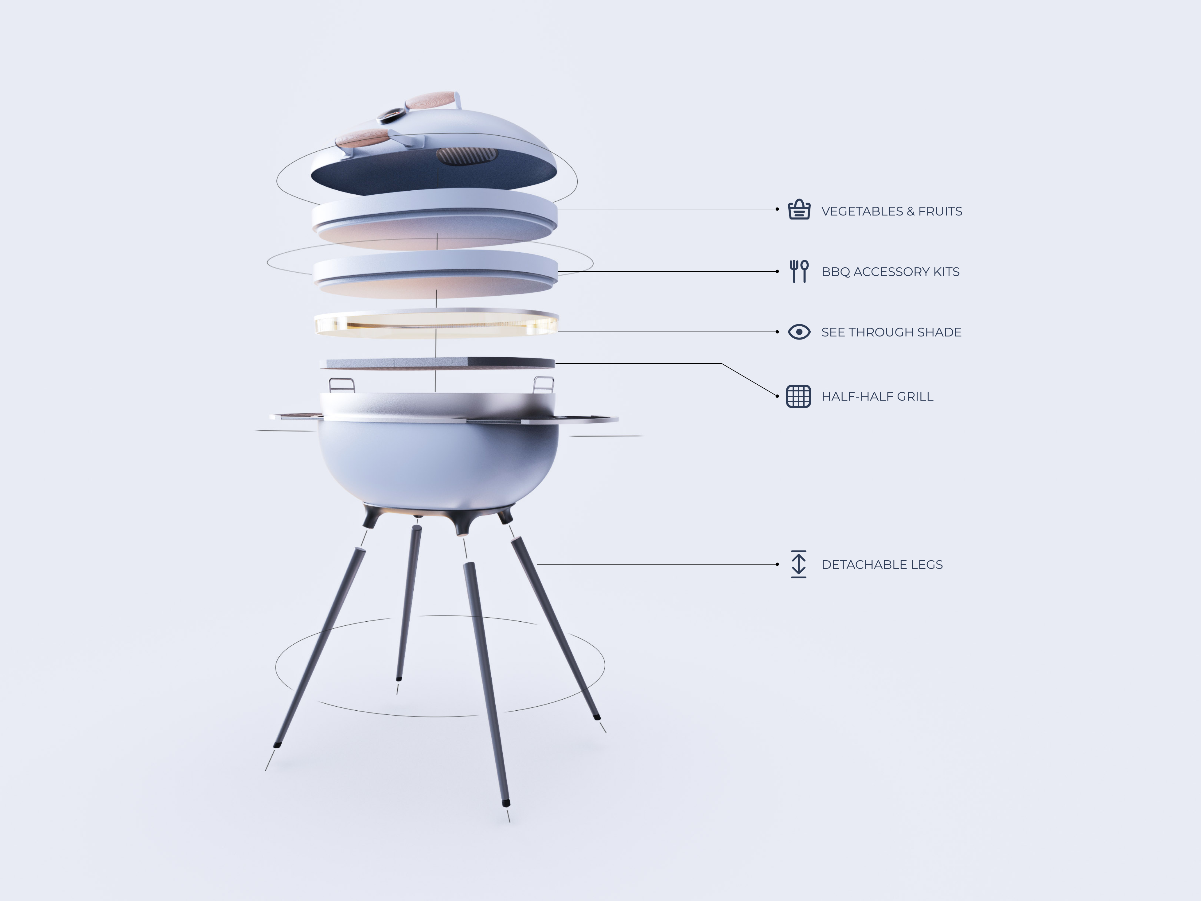 Whether set up on a tabletop for an intimate gathering or on its sturdy legs for a traditional outdoor barbecue, the FlameFlavor Grill is your companion for any occasion. Its robust construction supports the addition of layers, making it as suitable for a grand family feast as it is for a cozy meal under the stars.