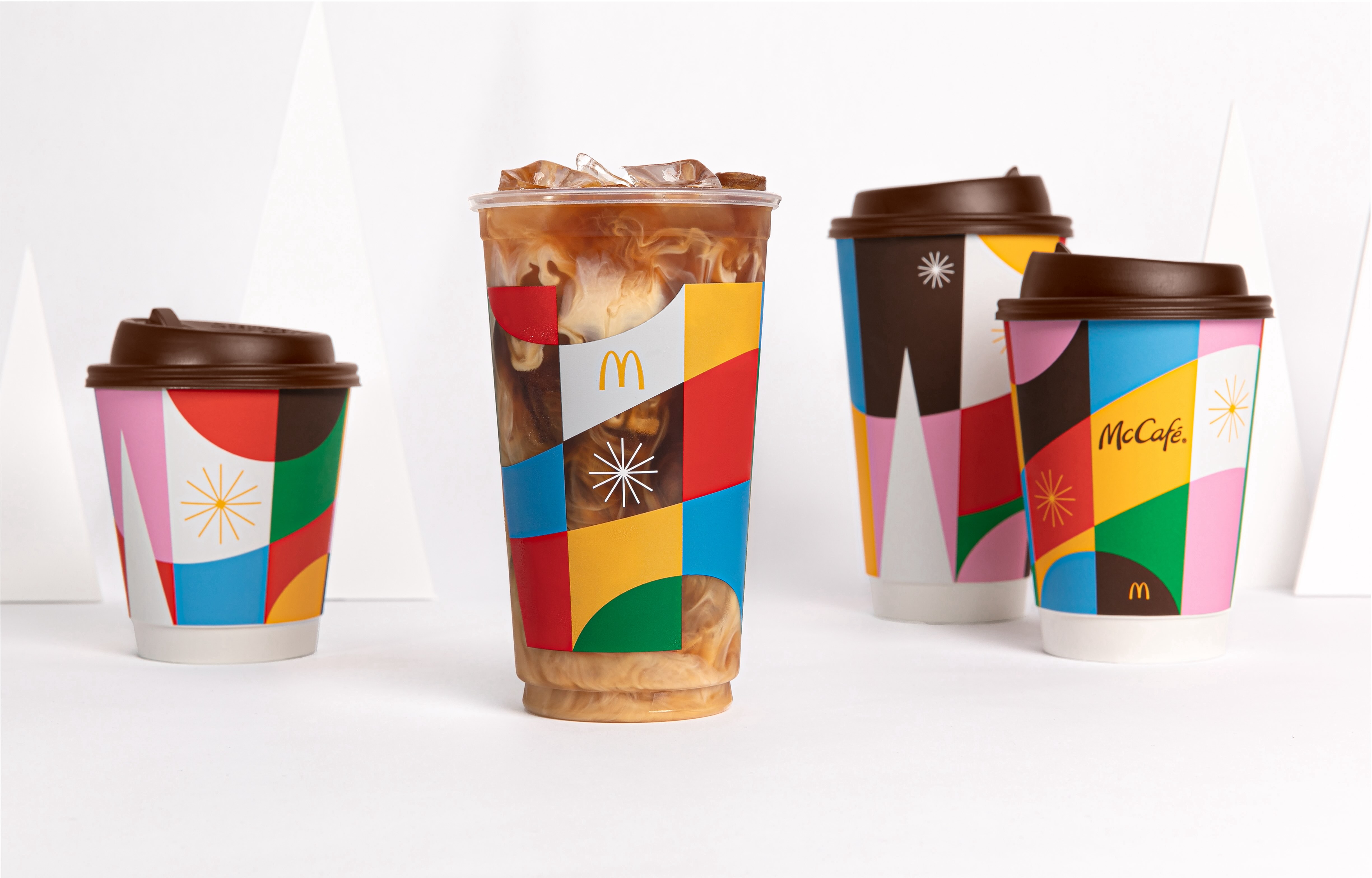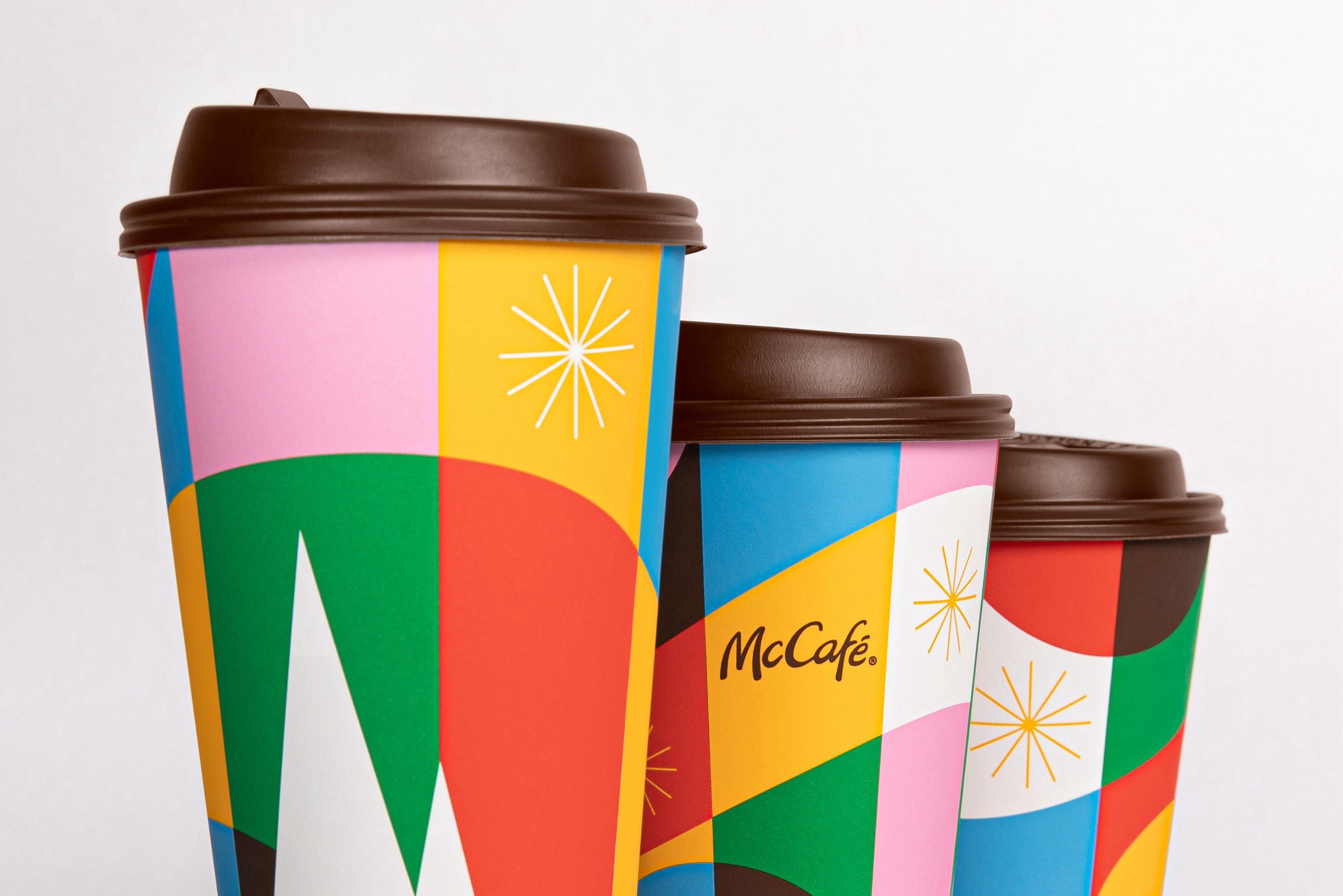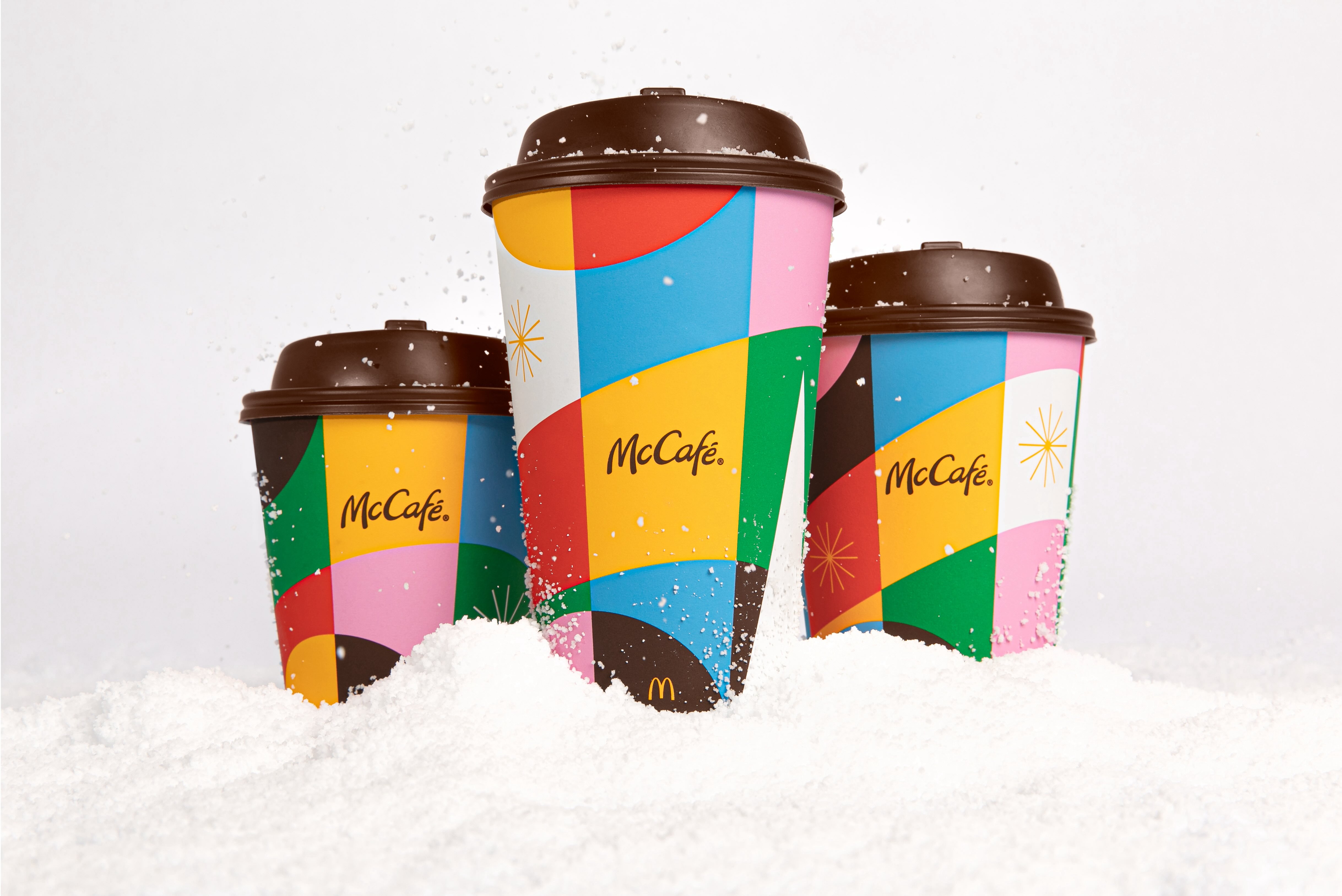For McCafé, holiday cups allow for a seasonal twist on the brand promise to create moments of real coffee satisfaction made simple. That’s why we wanted to celebrate the end of 2023 with a design that is bold like McCafé drinks, simple like the menu and colorful like everyone that visits McDonald’s every day. The designs are celebratory, vivid, and modern, staying true to our design language for all McCafé packaging we create.
