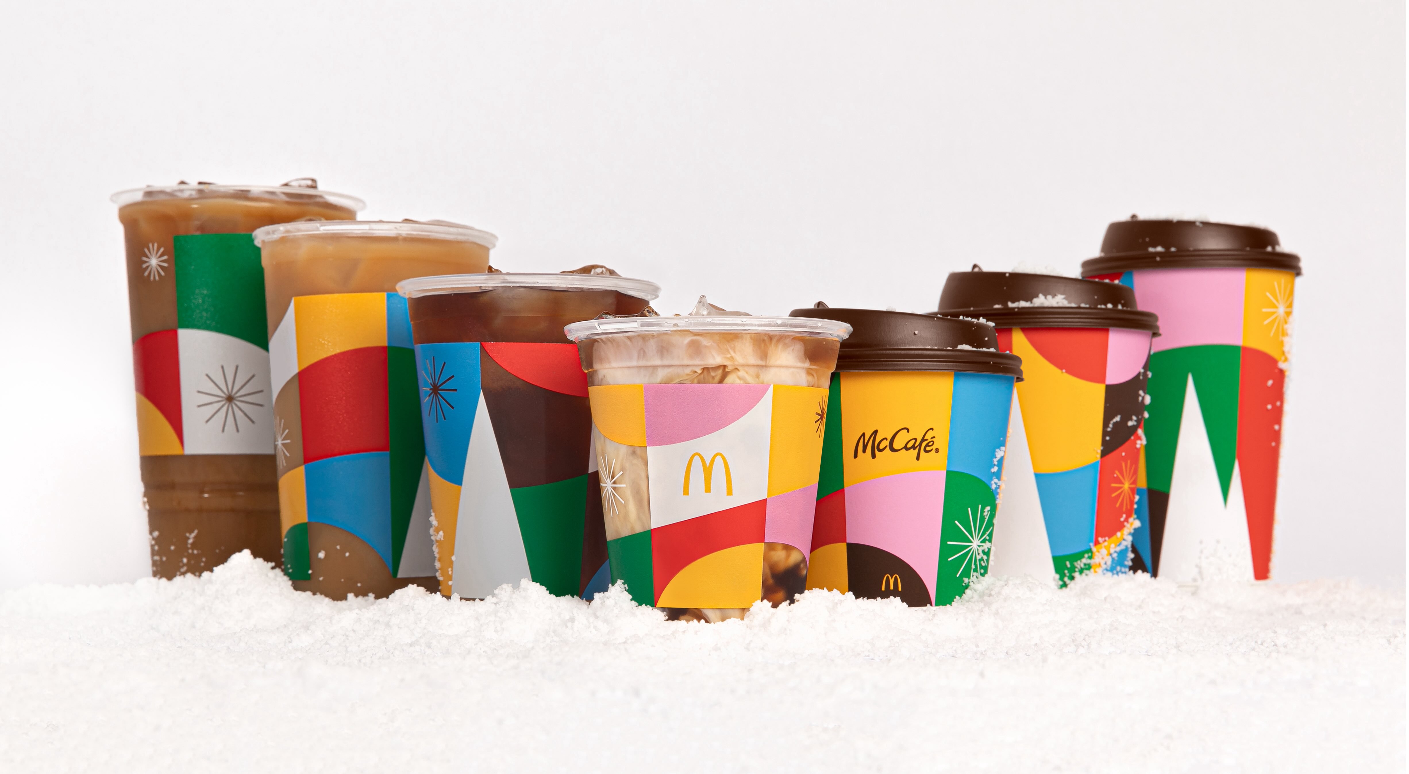 The design wasn’t limited to hot cups, as the clear cups, which serve cold and blended McCafé beverages, joined the festive fun. Plus, the design was used to create limited edition wrapping paper and socks for employees at McDonald’s Corporate Headquarters in Chicago.