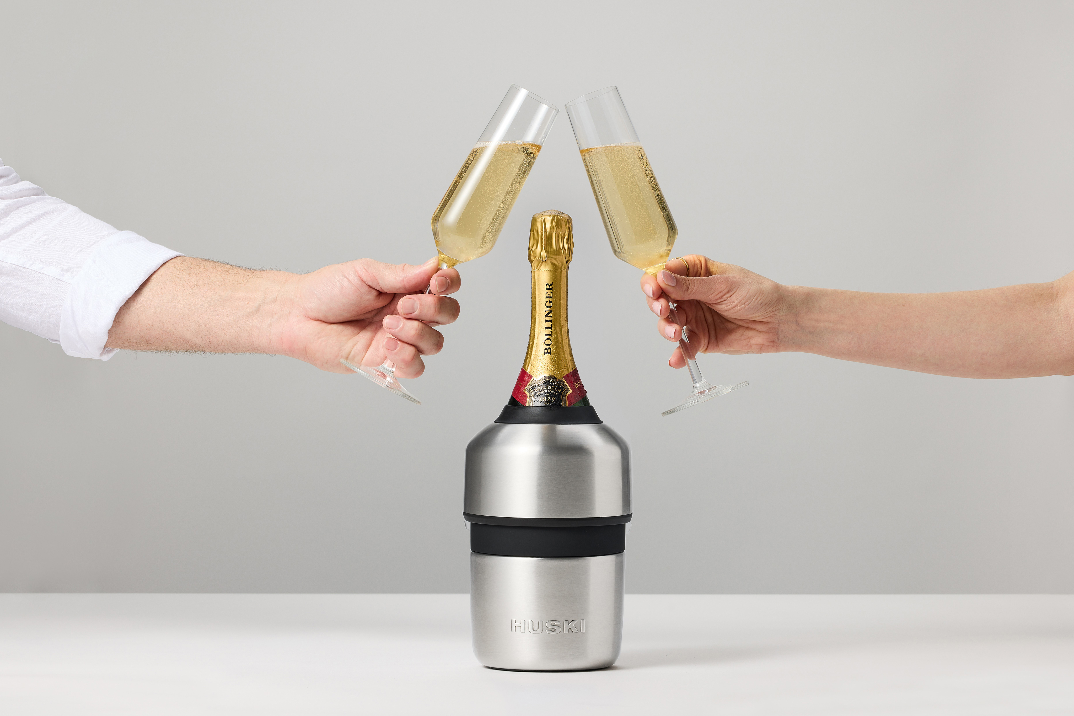 It works off the shelf, so all you need to do is select a cold bottle from the fridge, put it in your Huski, tighten the lid and you’re good to go. Perfect for anyone who enjoys bubbles.