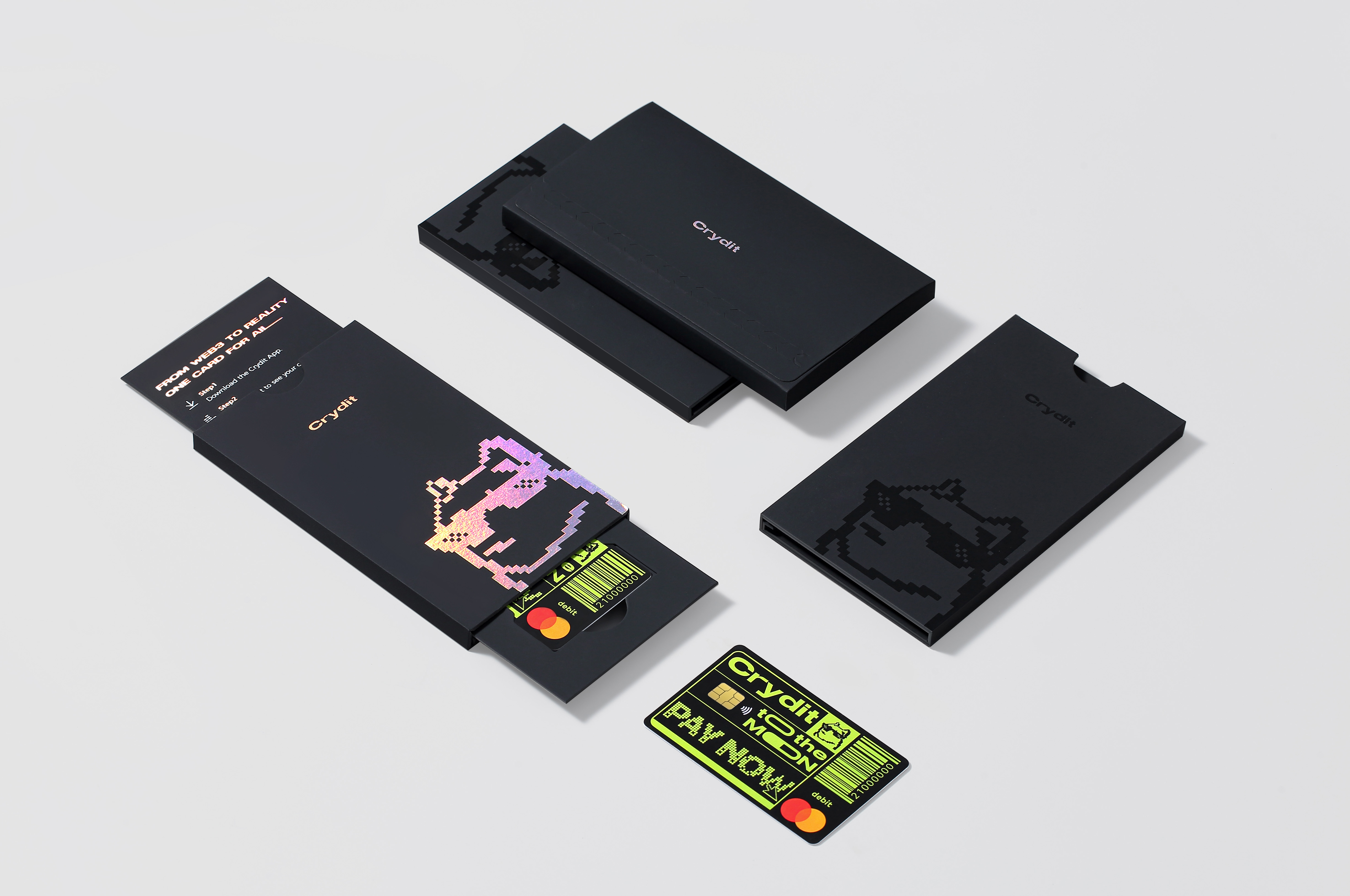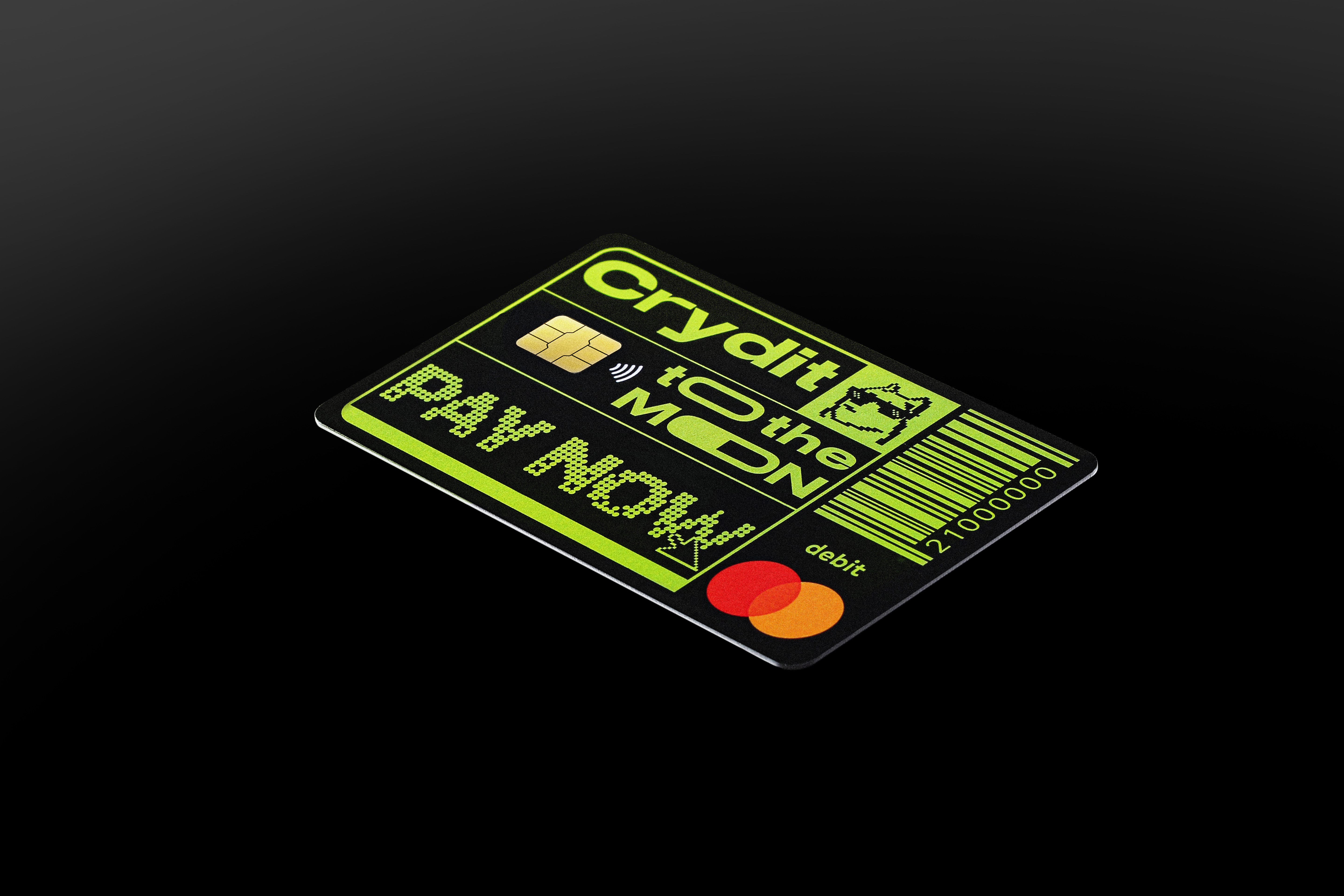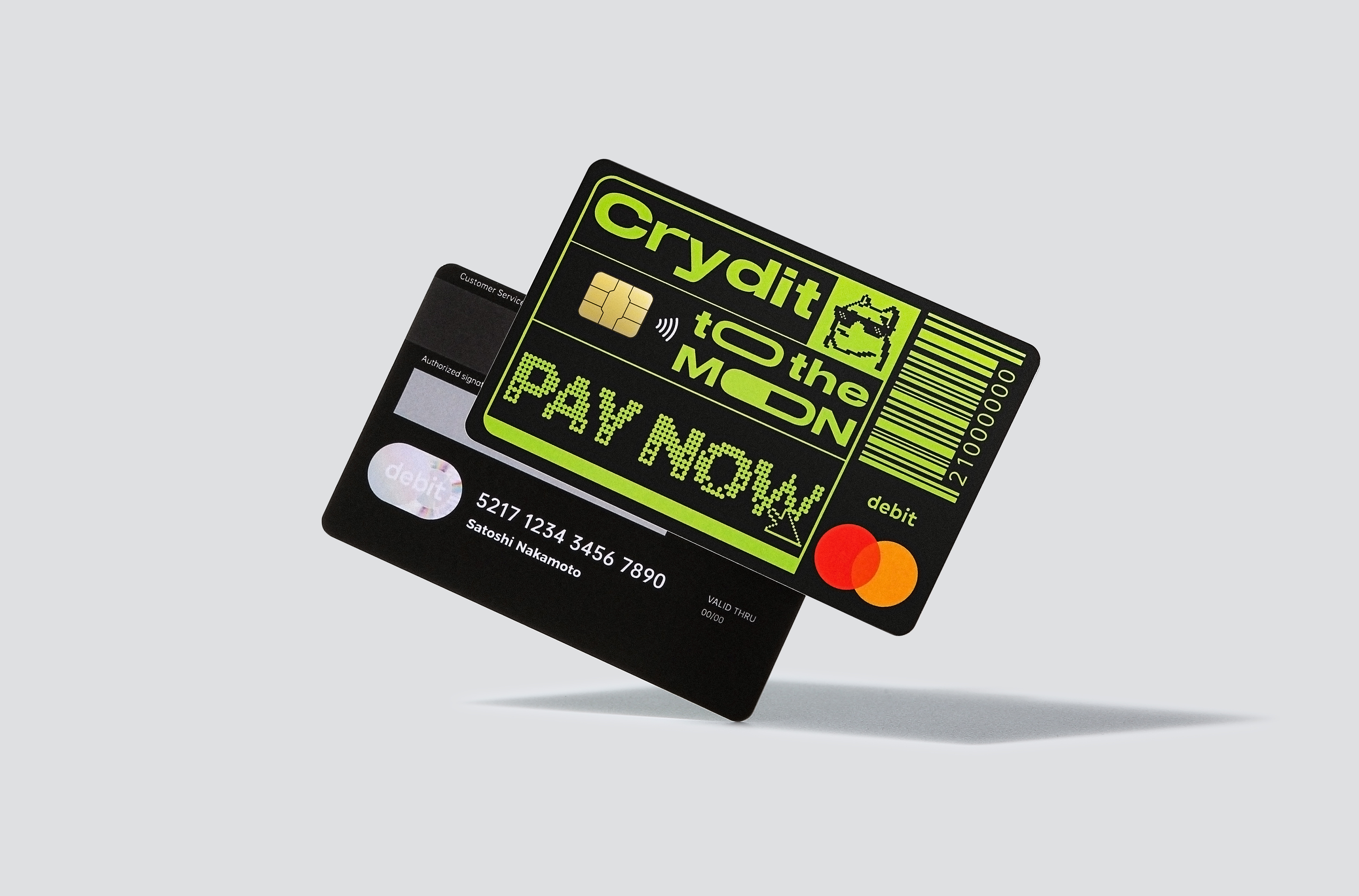 The card exudes a high-tech and futuristic aesthetic, epitomizing Crydit's very essence—unyielding exploration, relentless pursuit of freedom and dreams, and a bold challenge to conventional norms. The phrase "Pay Now" on the card is rendered in a pixel font popular within the Crypto community, conveying its rapid conversion capability and adaptability across various payment scenarios. The card is also adorned with iconic crypto elements, such as the "21,000,000" Bitcoin limit, a Doge icon, and the aspirational slogan "to the Moon". These playful and significant visual cues emphasize the seamless connection between Crydit Card and the crypto ecosystem, as well as its role in propelling users towards a brighter crypto future. Moreover, the predominant green hue serves two purposes: firstly, it capitalizes on the association of green with rising cryptocurrency values, leaving a secure and reliable impression on users. Secondly, it reflects the crypto industry's commitment to environmental sustainability through increased investments in renewable energy and the adoption of energy-efficient consensus algorithms. These design elements highlight that Crydit Card is more than just a convenient and secure tool for crypto-to-fiat currency conversion and daily payments; it resonates with the progressive values and lifestyles of crypto holders.