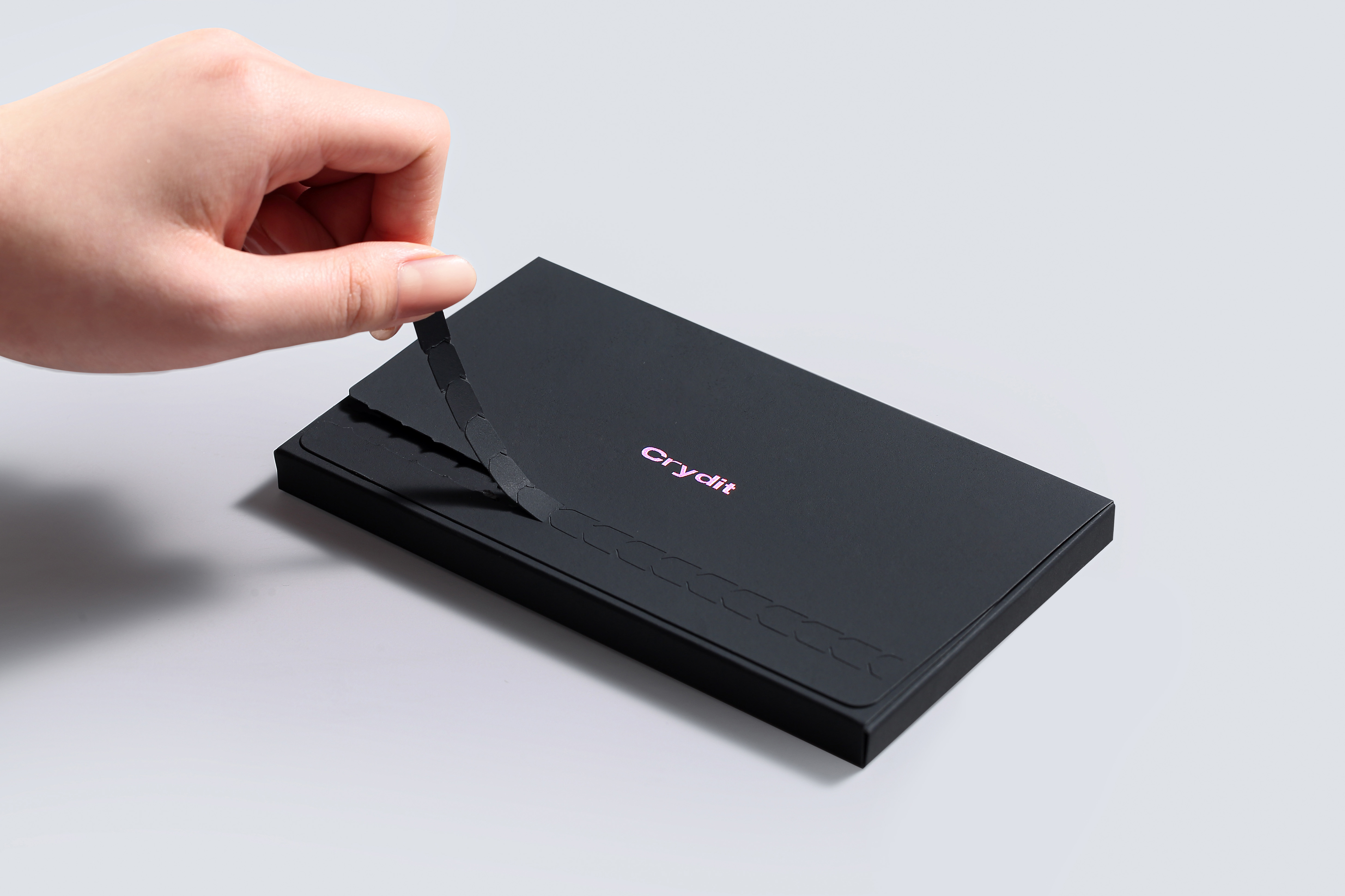 Design ingenuity extends to its packaging. The tear strip on the outer packaging and the pull-out design inside create an interactive unboxing experience, enhancing the anticipation as users reveal the stylish Crydit Card within.