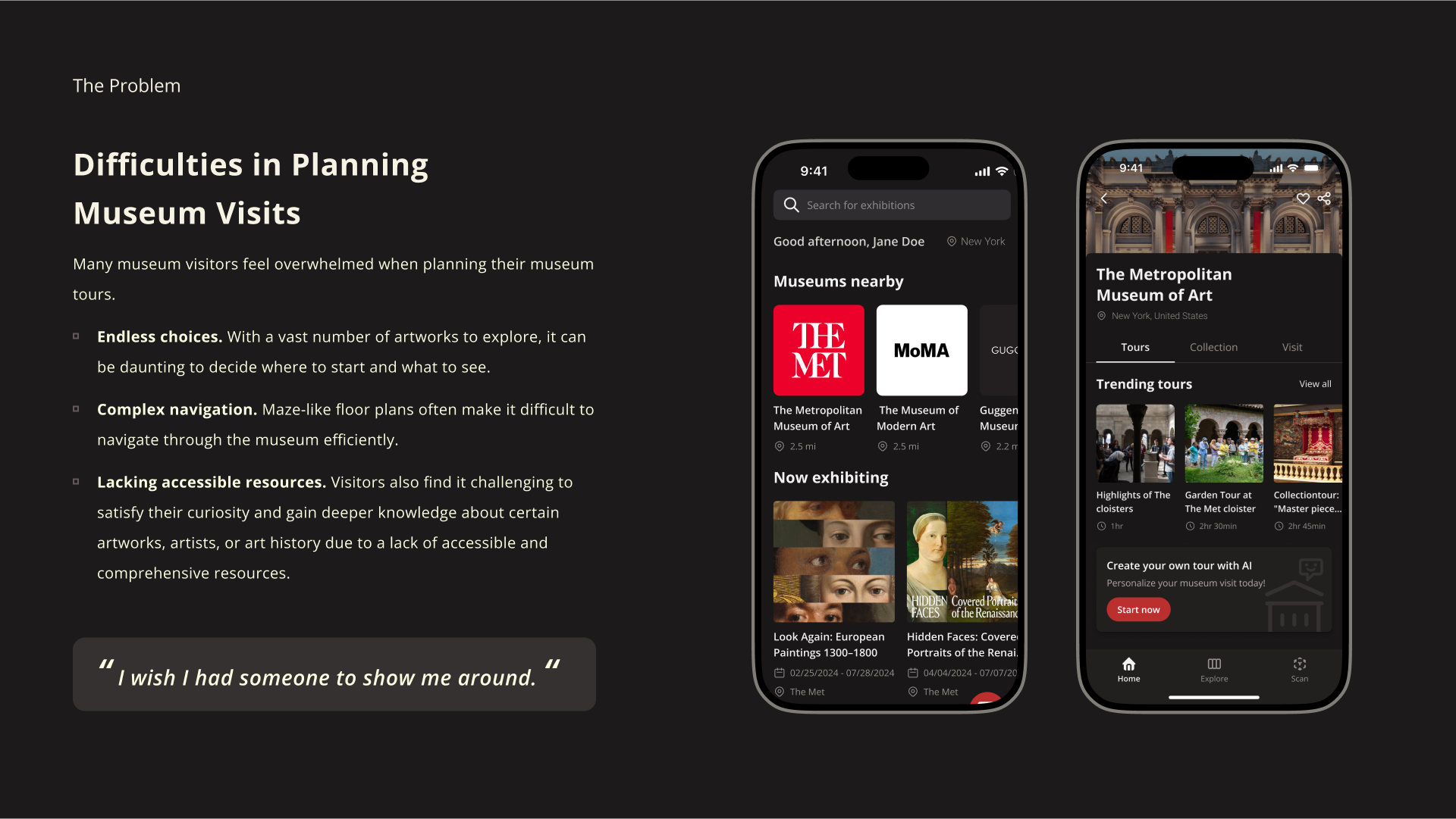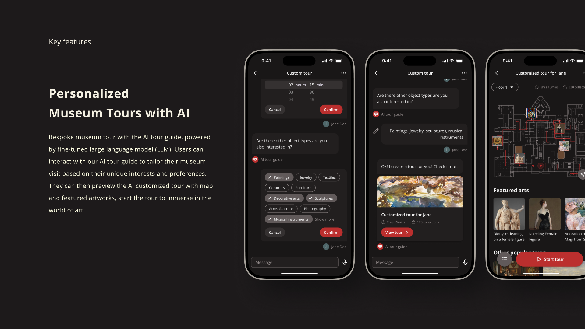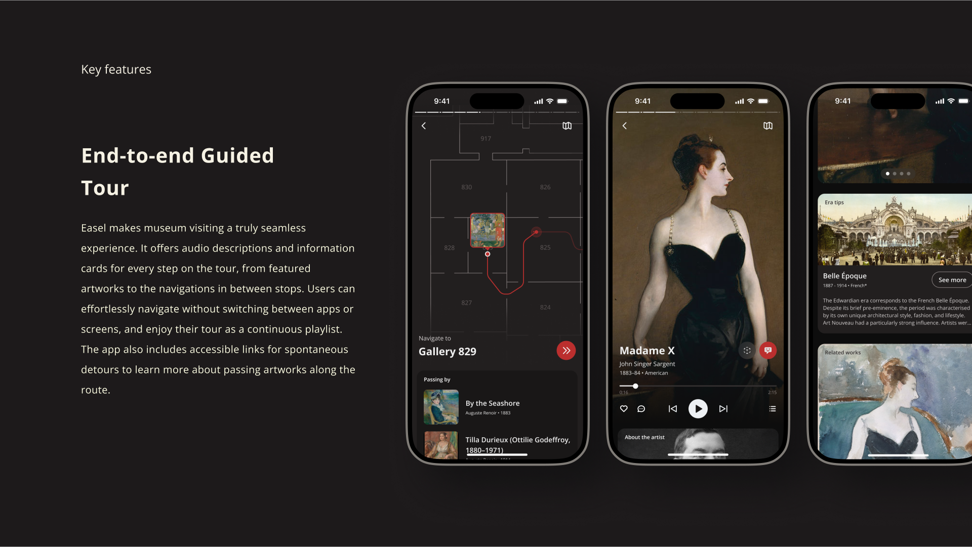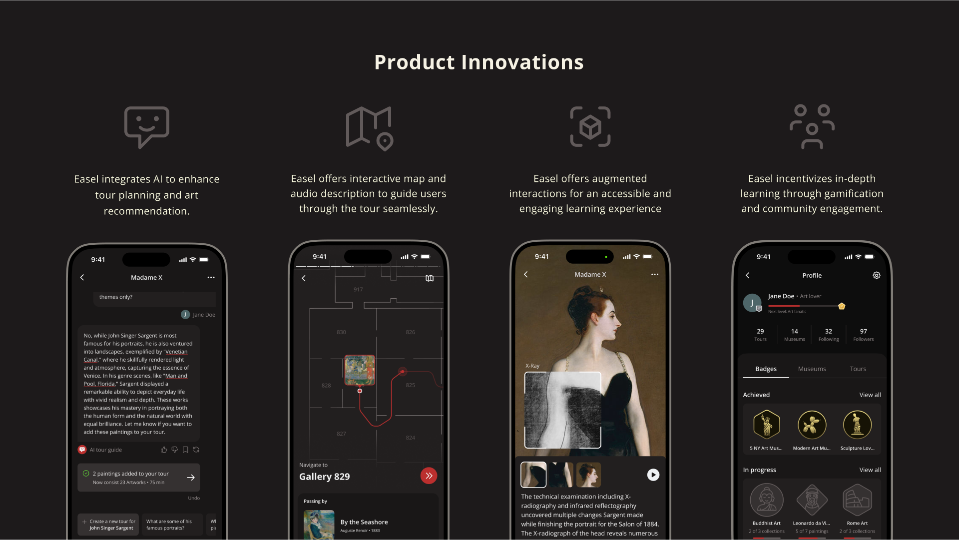 Easel, an AI-powered museum app, offers customized tours tailored to visitor's preferences, immersive AR experiences, and an interactive chatbot for in-depth exploration of each artwork. In an era where traditional museum visits can feel restrictive, constrained by static displays and generic guided tours, Easel emerges as a transformative solution. It addresses these limitations by revolutionizing how visitors interact with art. By offering personalized, AI-driven tours that cater specifically to individual preferences and interests, Easel fundamentally enhances the museum experience.