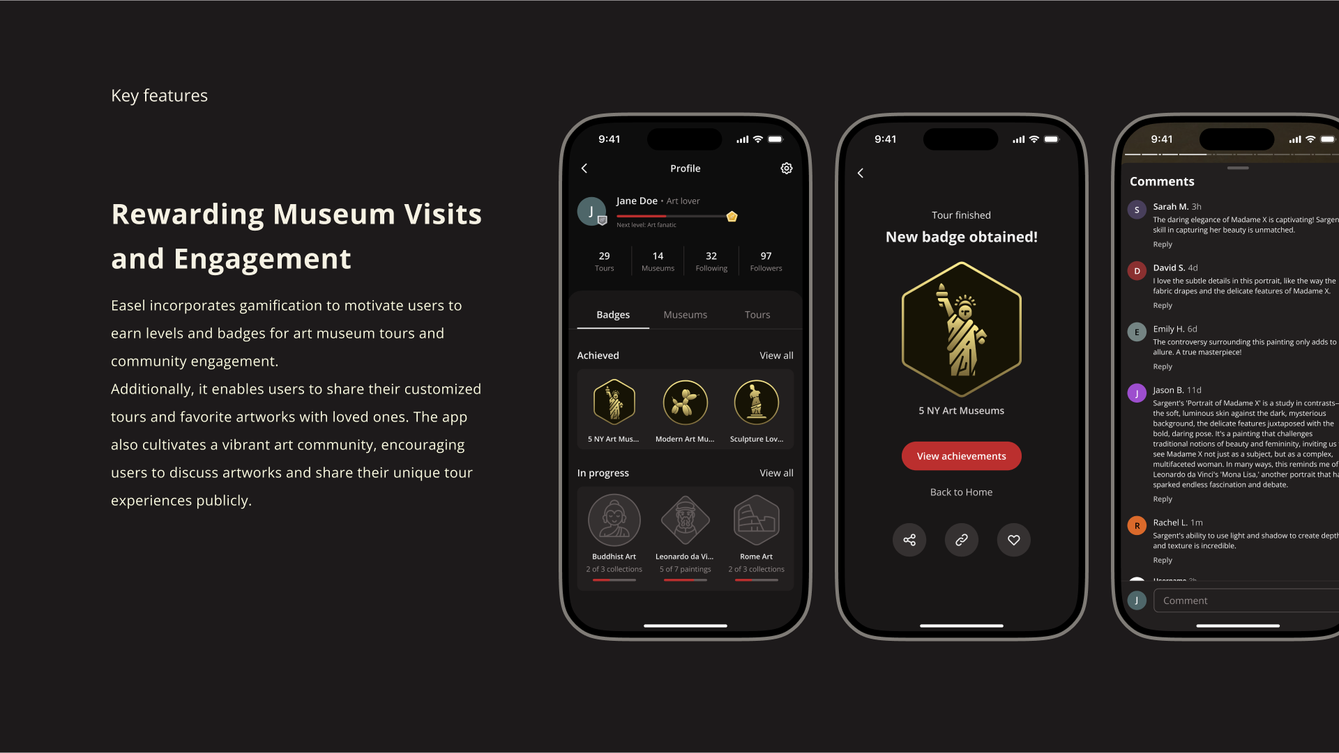 By integrating these features, Easel not only makes museum visits more engaging and informative but also more rewarding and social. Step into the museum of the future with Easel, where technology, personalization, and community transform your experience into an unforgettable journey of art appreciation.