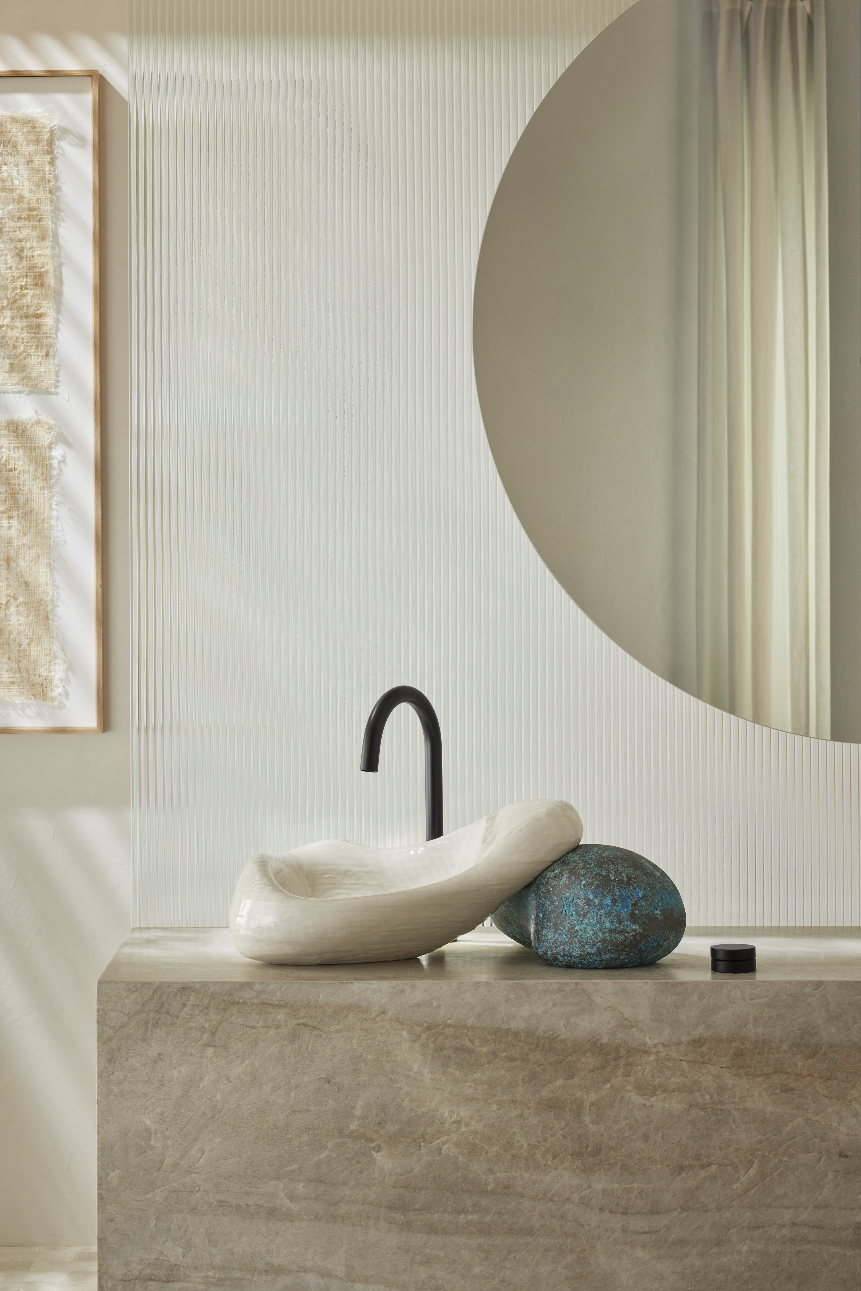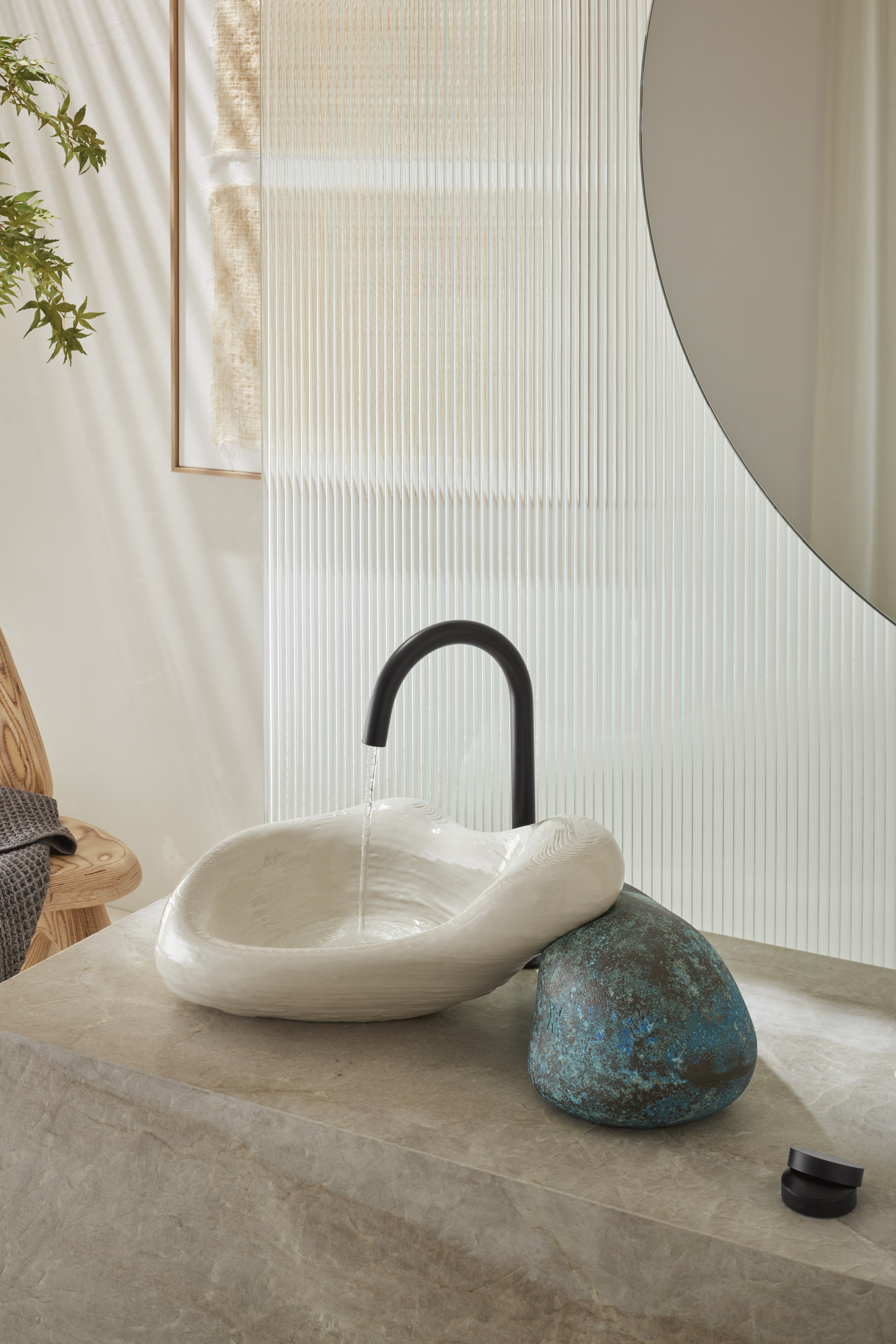 Kohler and Daniel Arsham, in an alchemy of heritage and innovation, present a sink that transcends its mere function to become a piece of interactive art. Rock.01, born from this unique collaboration, is a testament to the power of 3D-printed ceramics, a medium that allows for the realization of shapes once deemed too complex for traditional creation. This sink is not only a functional object but also a piece of Arsham's narrative, inviting a dialogue with time and form, shaped by the elements and inspired by the natural erosion that crafts the stones along the shores of our collective memories.