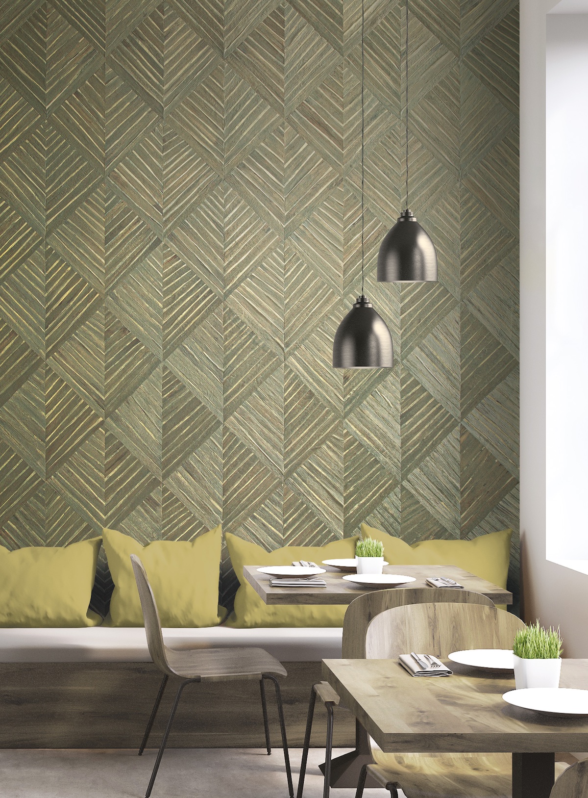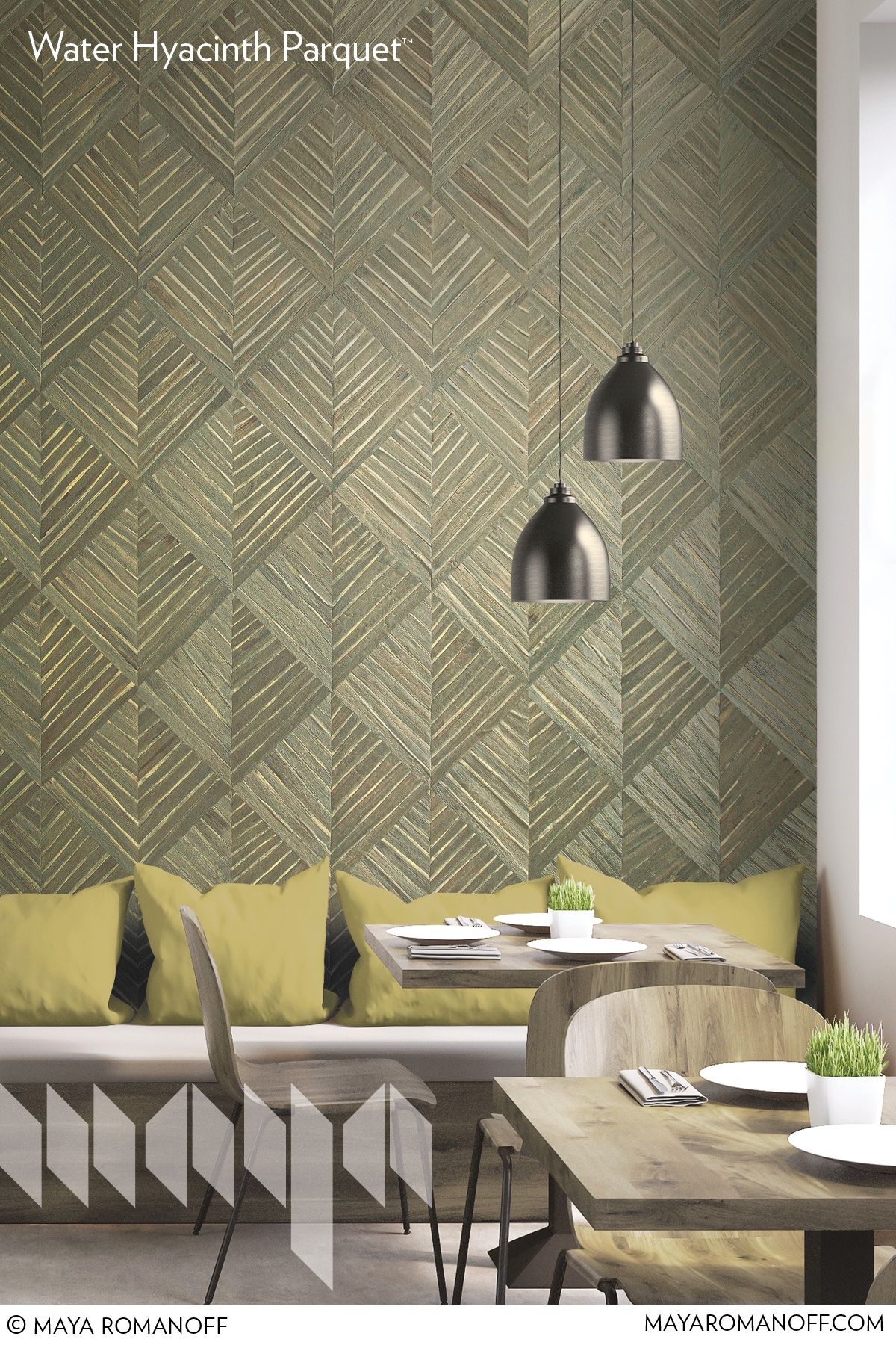 Natural Water Hyacinth is responsibly harvested and hand-inlaid onto a non-woven substrate, resulting in a wallcovering with exceptional depth and richness. This aquatic plant is responsibly harvested and meticulously hand-inlaid to achieve a geometrical yet organic design. The natural variation of color and texture within and between the leaves creates exceptional depth and richness. Available in 8 soothing colorways.
