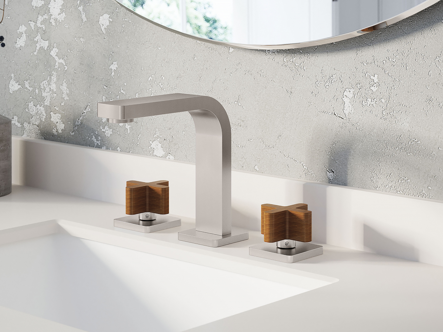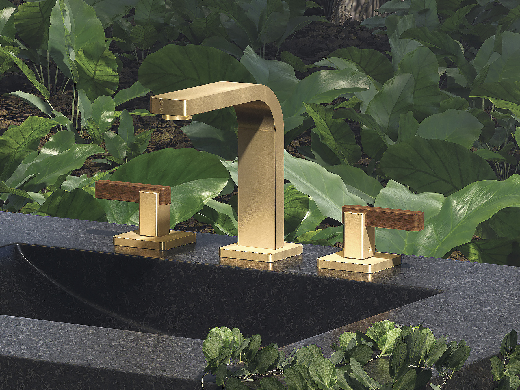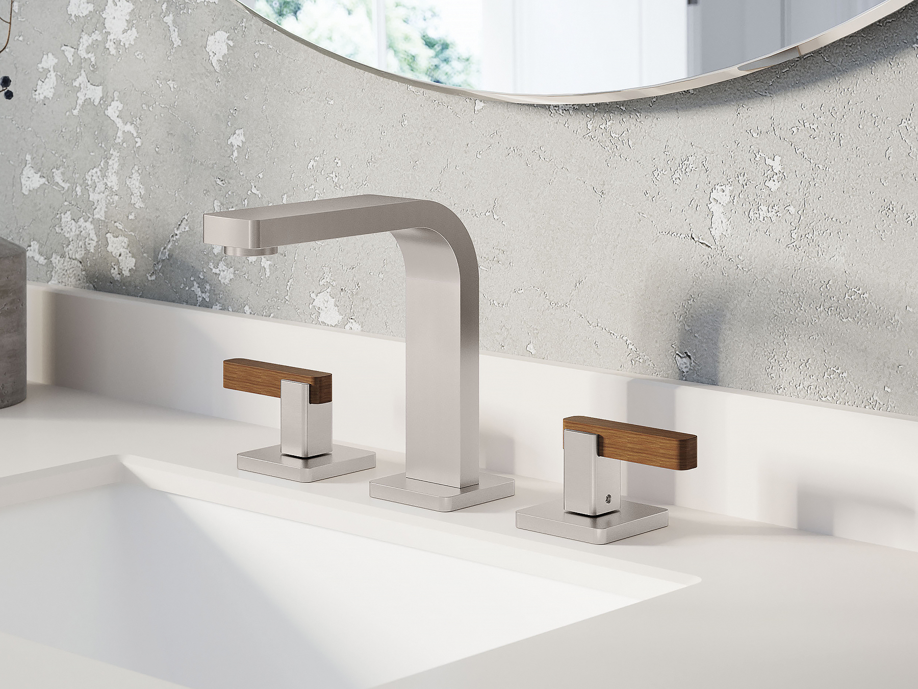 California Faucets presents the San Elijo™ Series—a new bath faucet that blends modern design with the natural warmth of teak wood. With a softened contemporary look, San Elijo features a gently rounded spout and optional teak wood lever or cross handles. Even the wooden handles are lightly rounded for an overall more graceful look and feel. Recognized for its durability and resistance to moisture, teak wood features an exquisite grain pattern which infuses texture and a touch of organic beauty into the bath. Homeowners and designers can pair any of California Faucets 25-plus artisan finishes with the teak wood handles or even create a unique split-finish look to make a personalized statement in the bath.