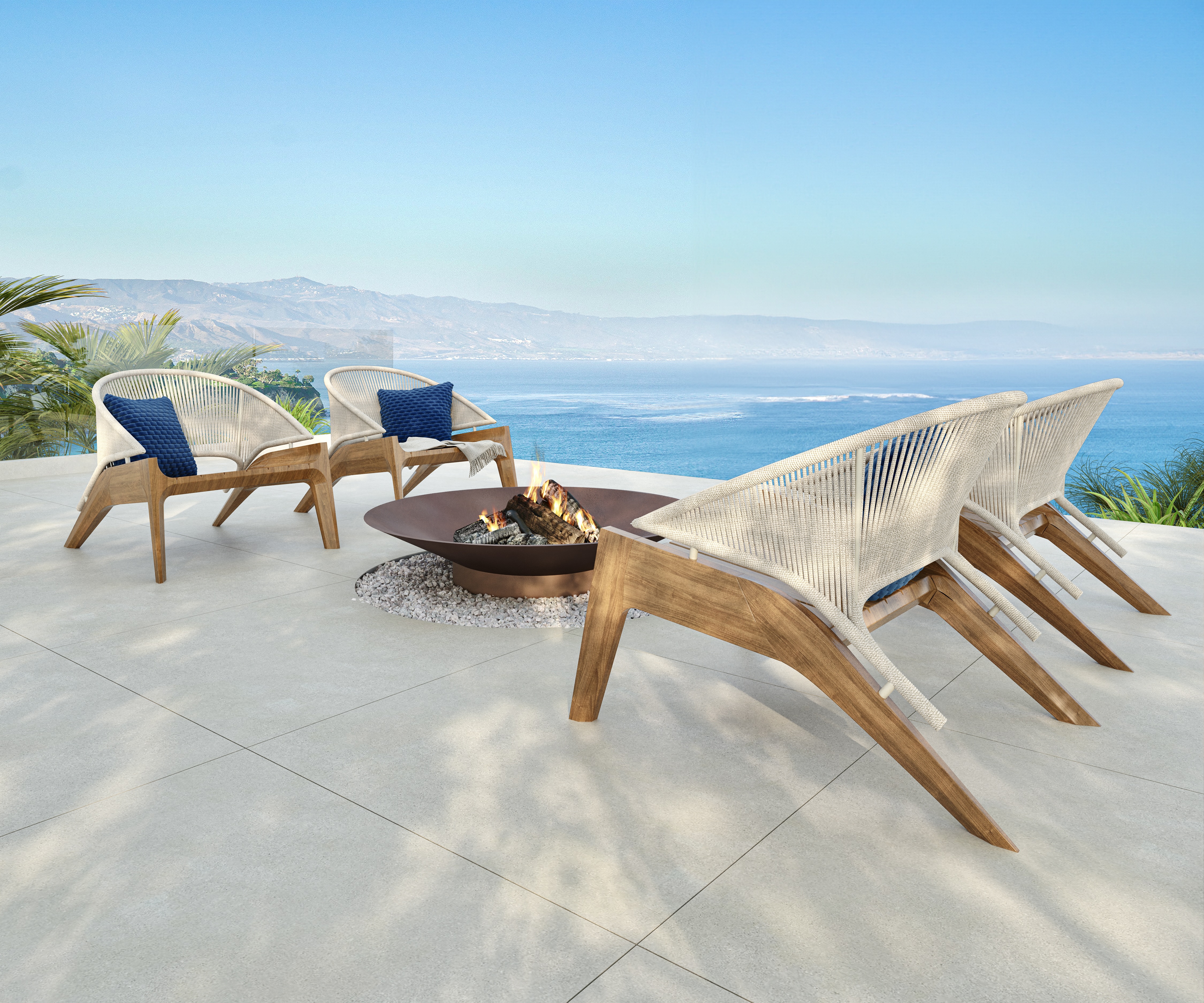 The Velê line alludes to the sailboat, more precisely to the jangada, a typical vessel on the Brazilian coast. Inspired by the characteristics of rafts, the design seeks to capture the essence of simplicity and functionality, reflecting the ability of these vessels to move around the surfaces of natural pools.