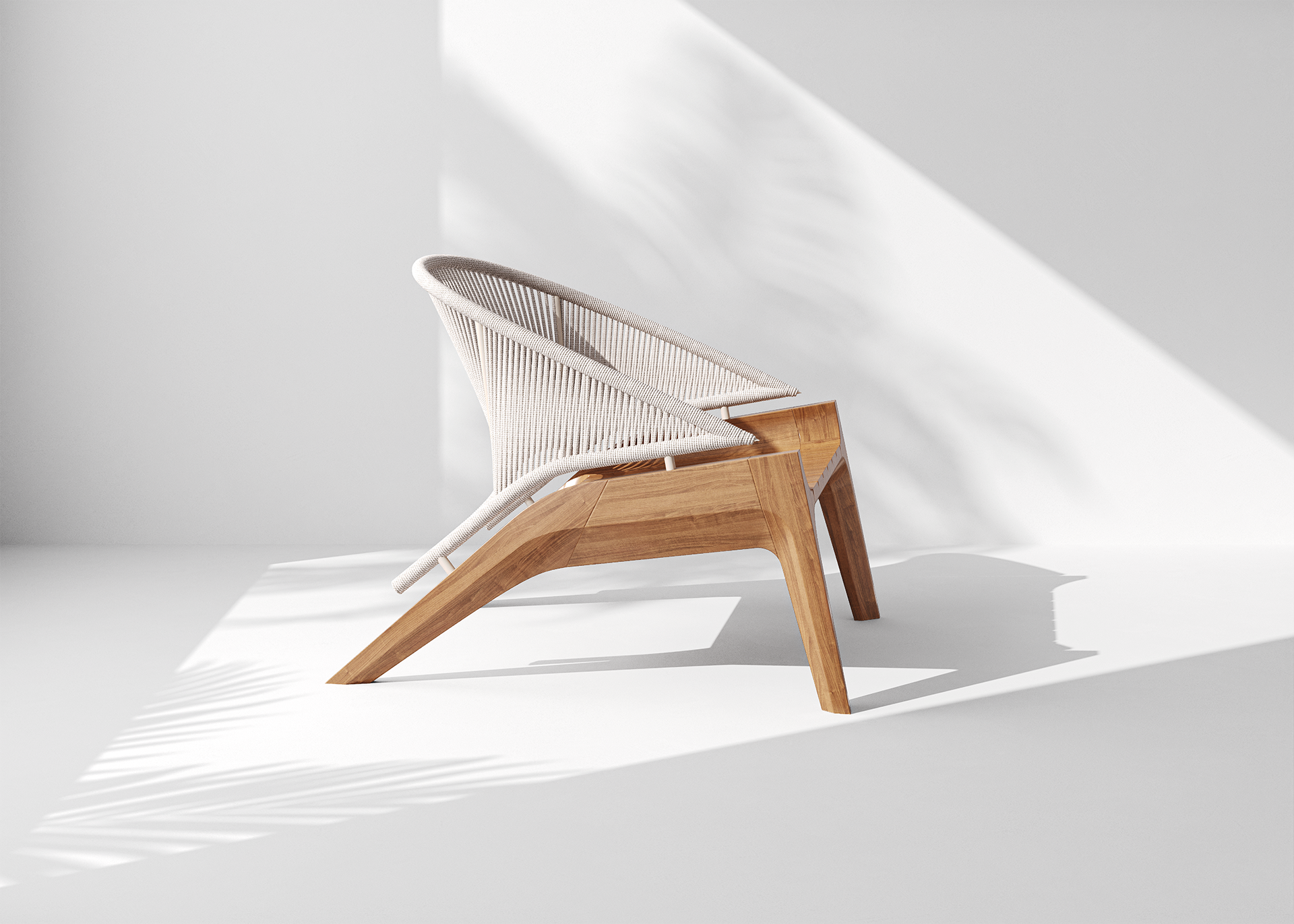 Its design pays homage to the rich craft tradition of Brazil's coastal communities, who have mastered the art of raft building and sailing for centuries. The hand-woven backrest alludes to the wind bending the boat's sail, while its wooden base represents the slatted construction of the entire base of the boat.