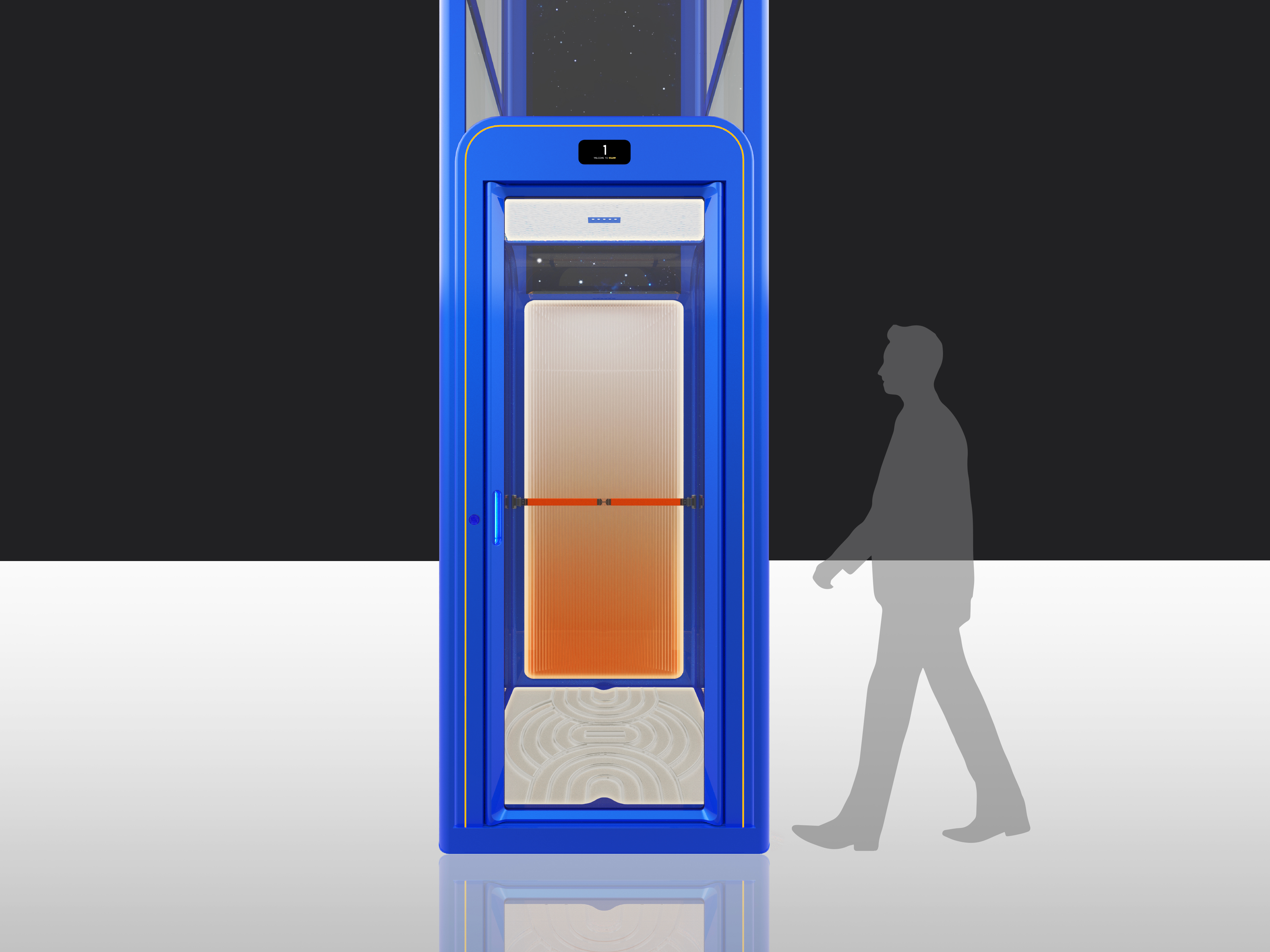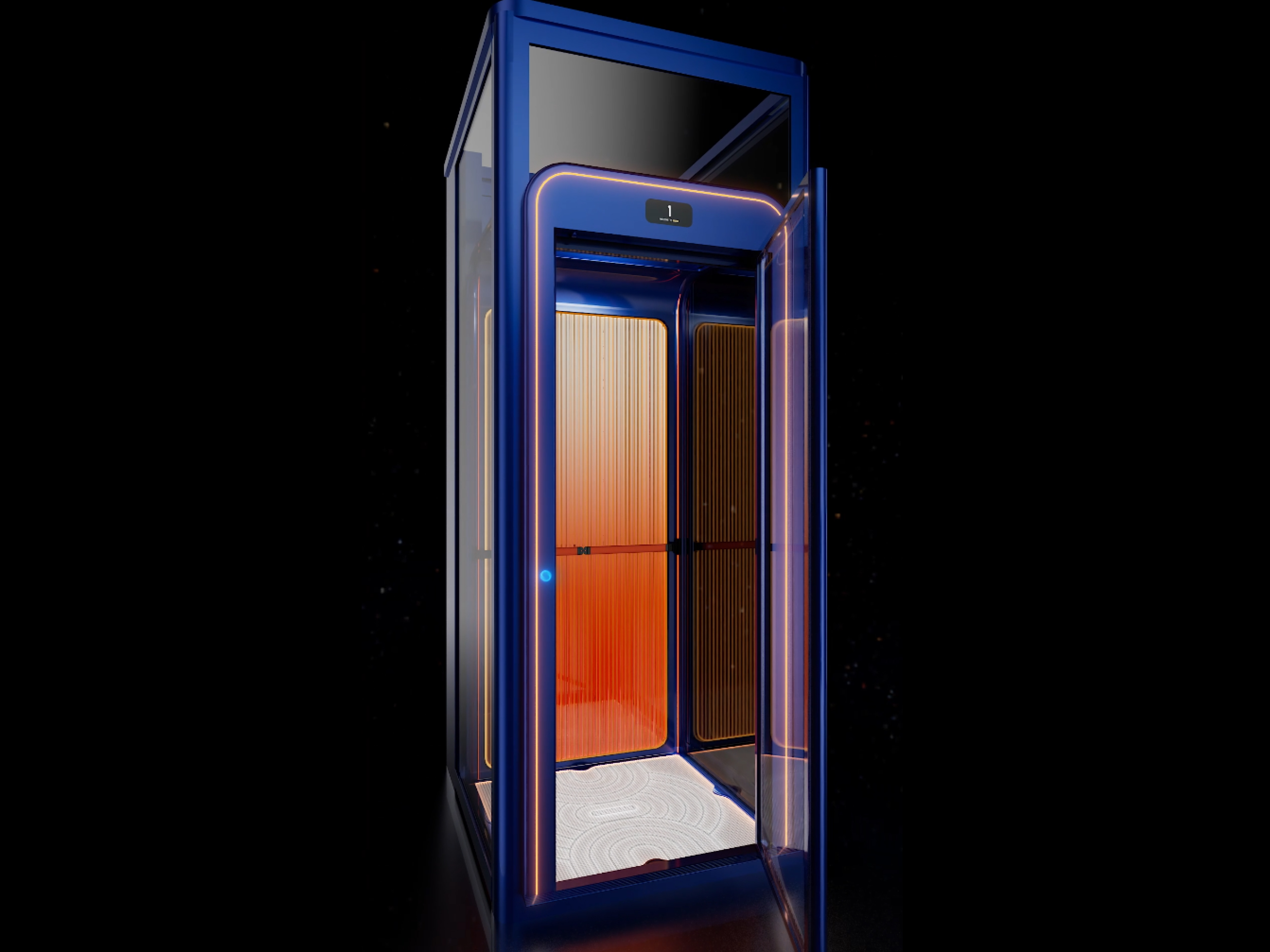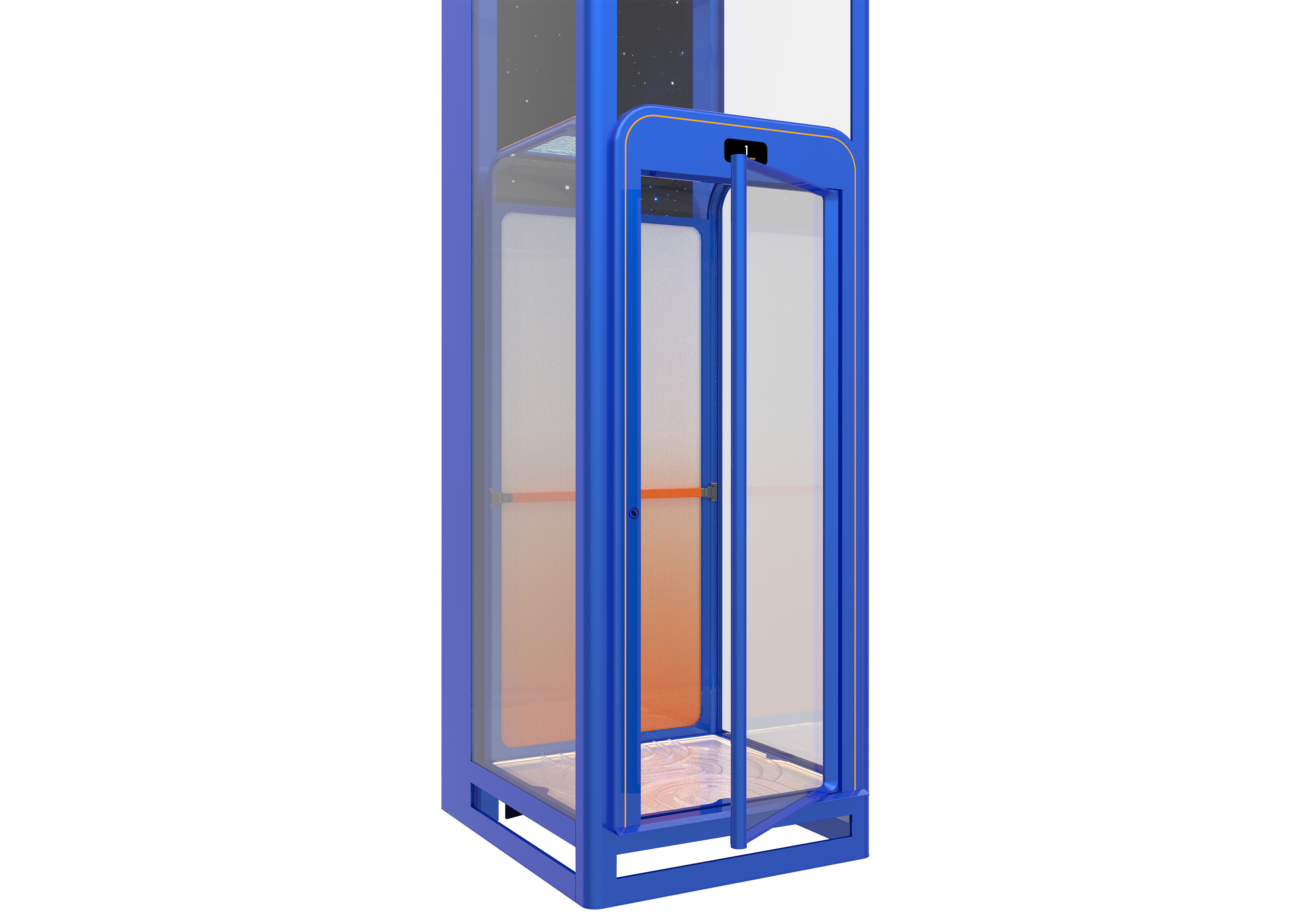 This cabin home lift is a masterpiece that seamlessly integrates into living aesthetics. It combines cutting-edge technology, sophisticated design, and a user-friendly operating system, making it a perfect addition to the home. The design team meticulously chose a profound Klein Blue and Hermes Orange colour scheme to create a striking colour contrast that injects vitality into the interior while showcasing the lift's modernity and artistry.