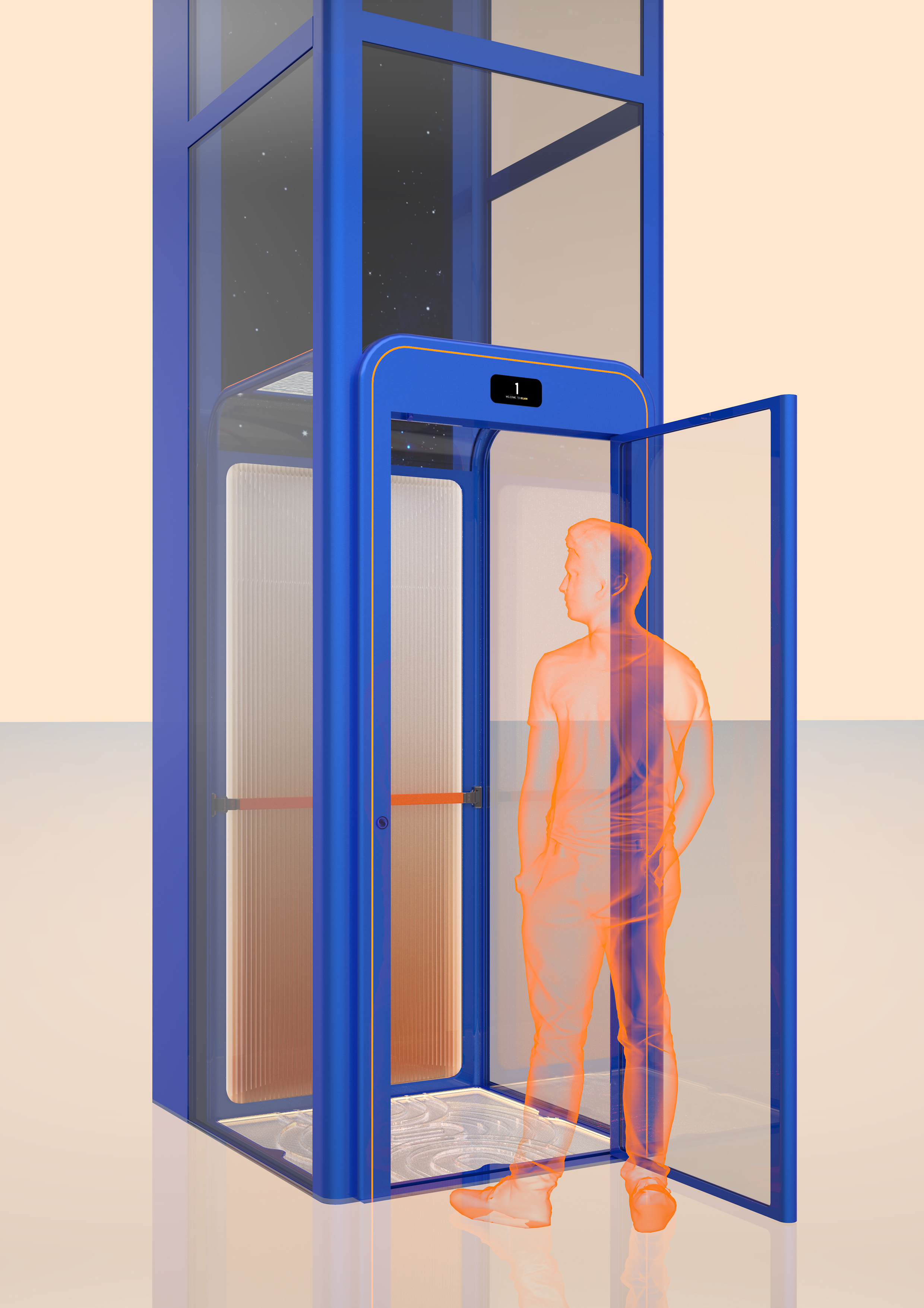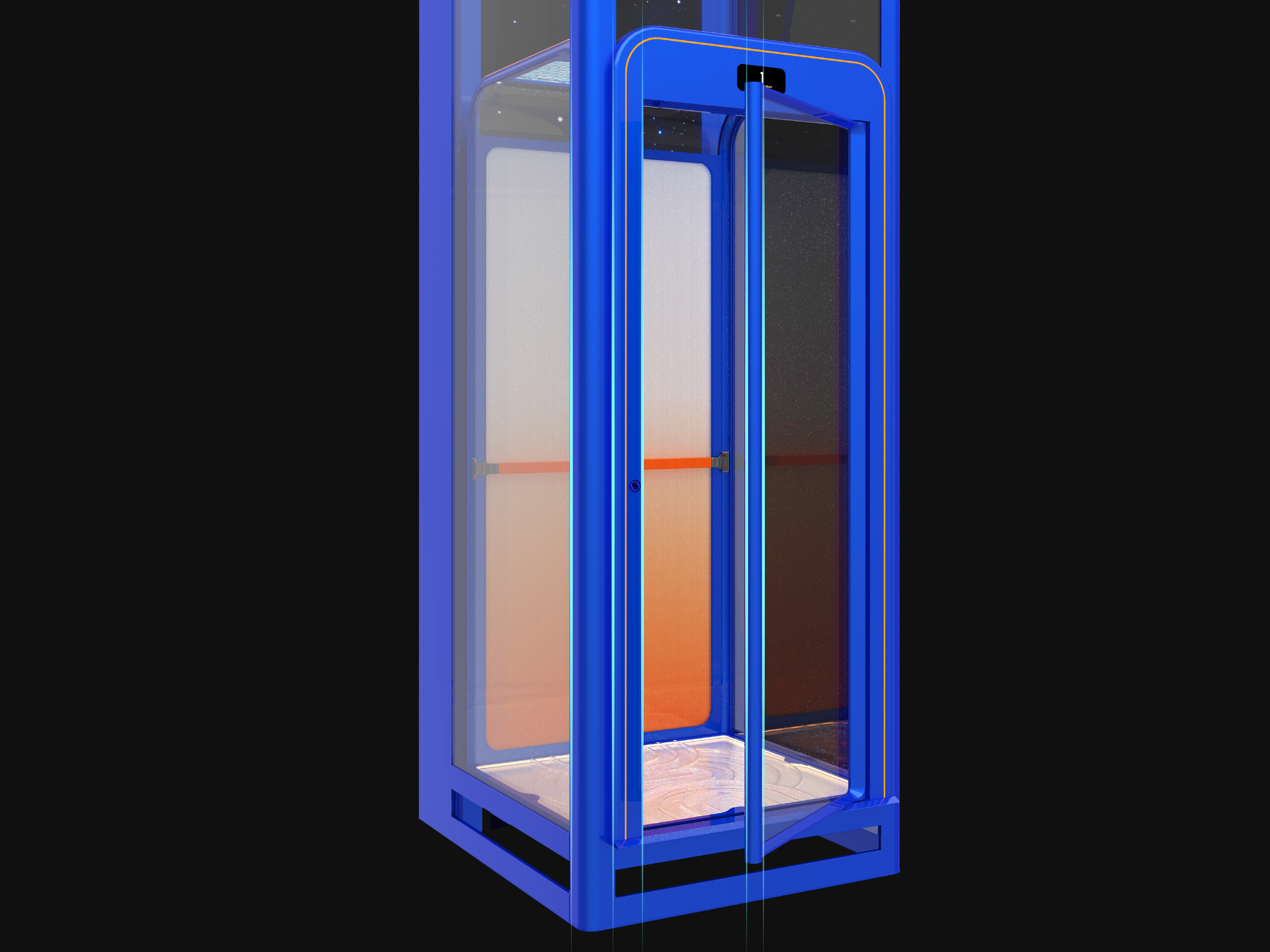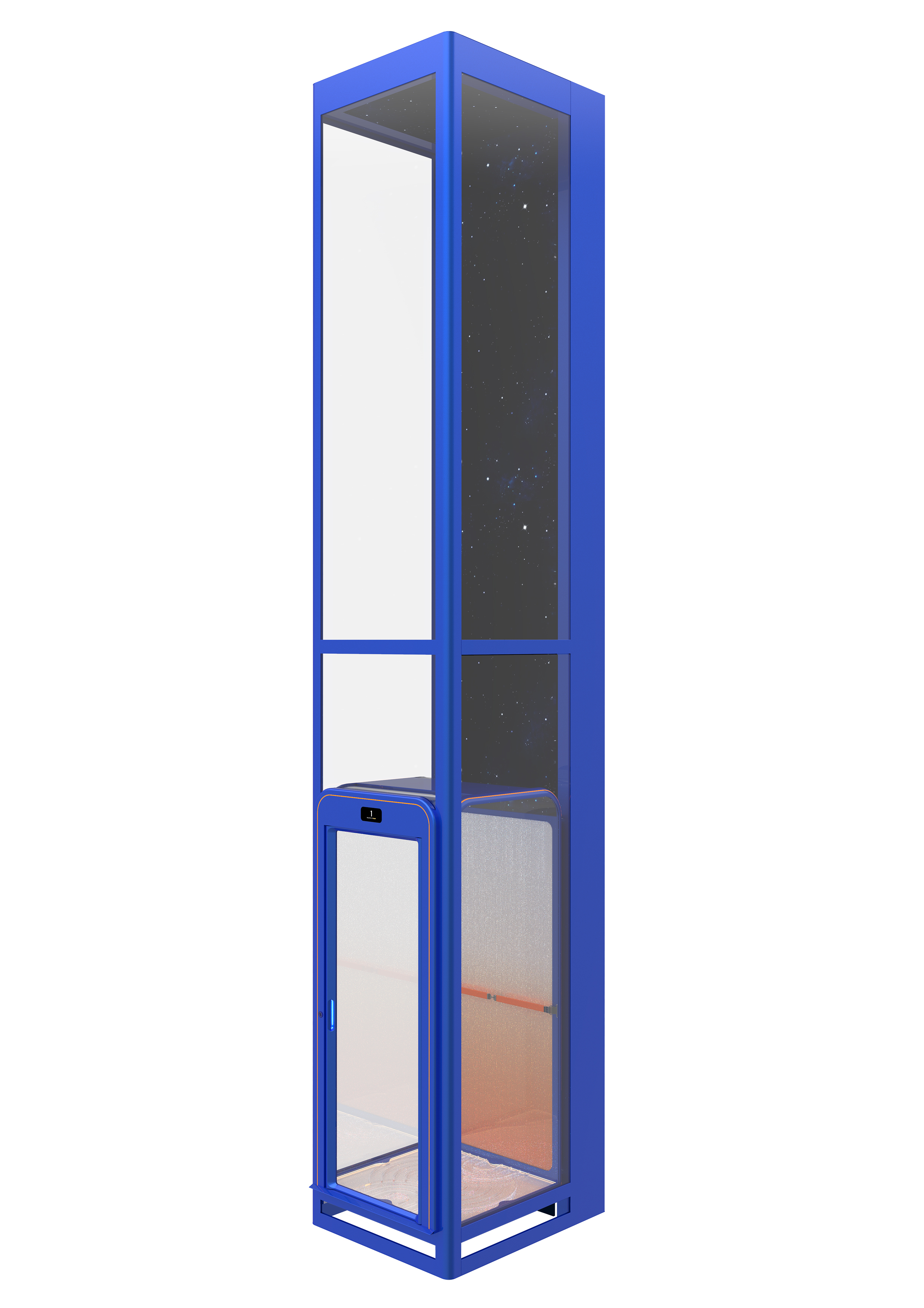 This cabin home lift is a masterpiece that seamlessly integrates into living aesthetics. It combines cutting-edge technology, sophisticated design, and a user-friendly operating system, making it a perfect addition to the home. The design team meticulously chose a profound Klein Blue and Hermes Orange colour scheme to create a striking colour contrast that injects vitality into the interior while showcasing the lift's modernity and artistry.