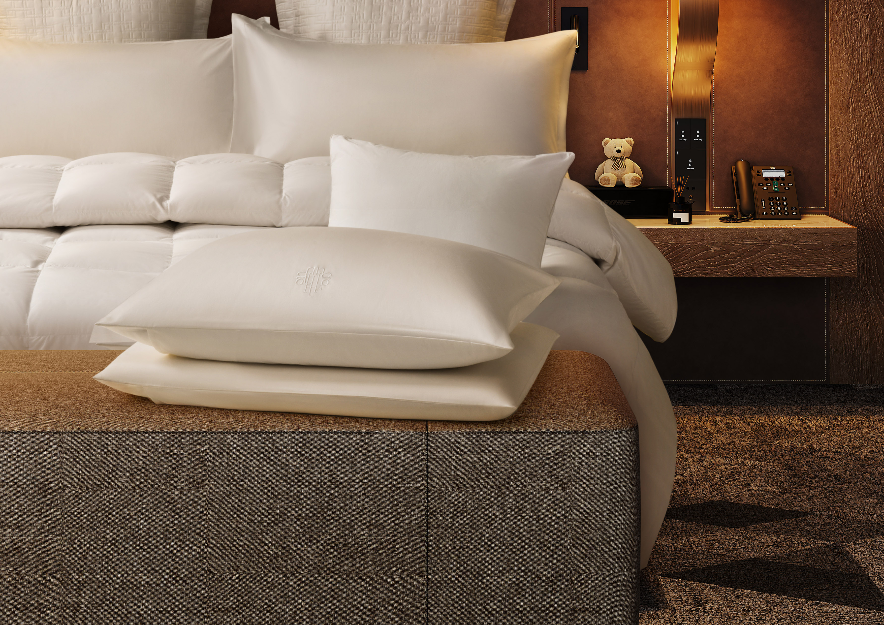 Meet "HUG"—a pillow that lives up to its name by providing a supremely soft embrace that wraps users in unparalleled warmth and comfort. It is generously stuffed with ultra-premium 920+ fill power Canadian goose down for a plush, soft feel. The large, fluffy down clusters ensure that the pillow conform seamlessly to the natural contours of the head and neck, providing an ergonomic fit tailored to each user.