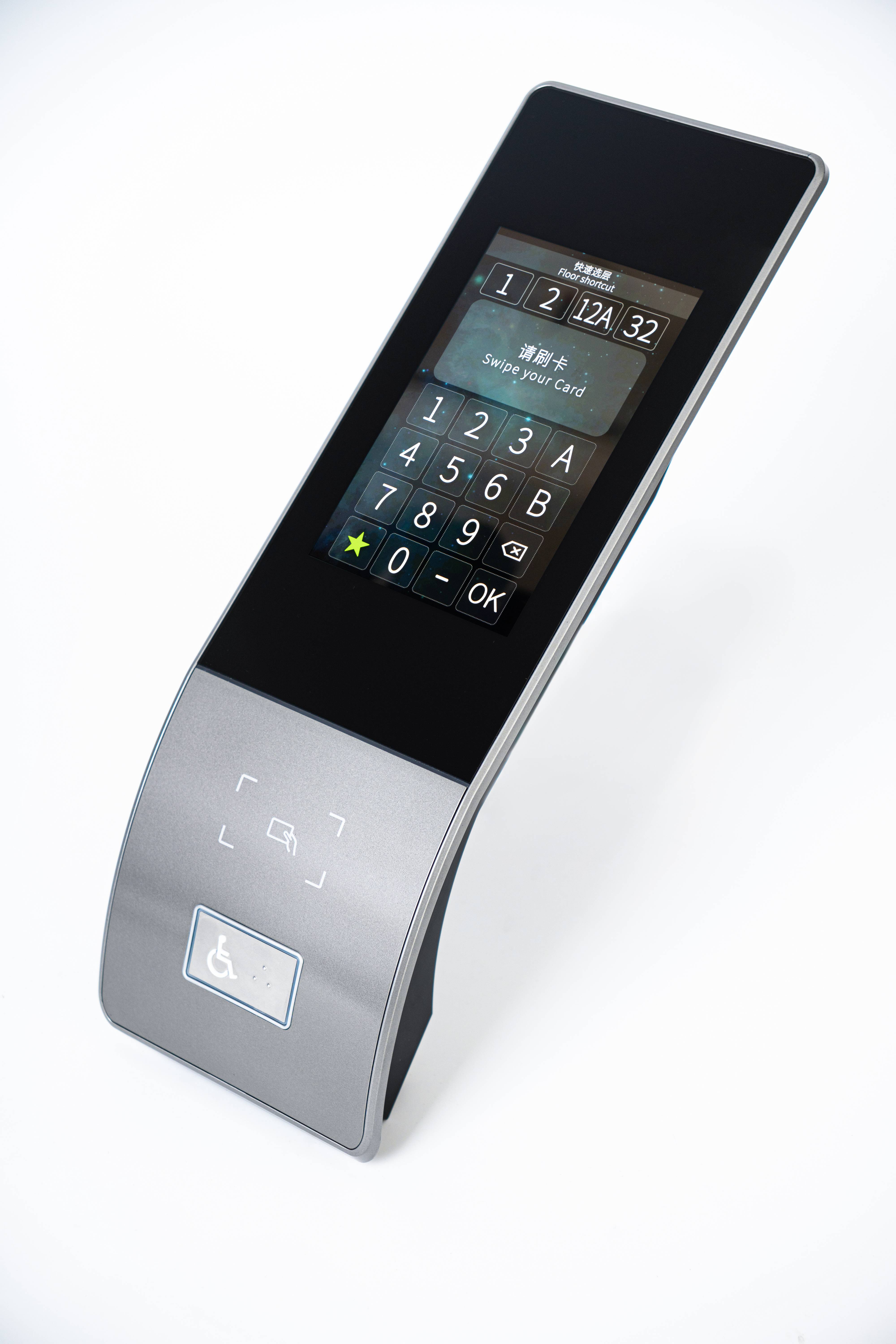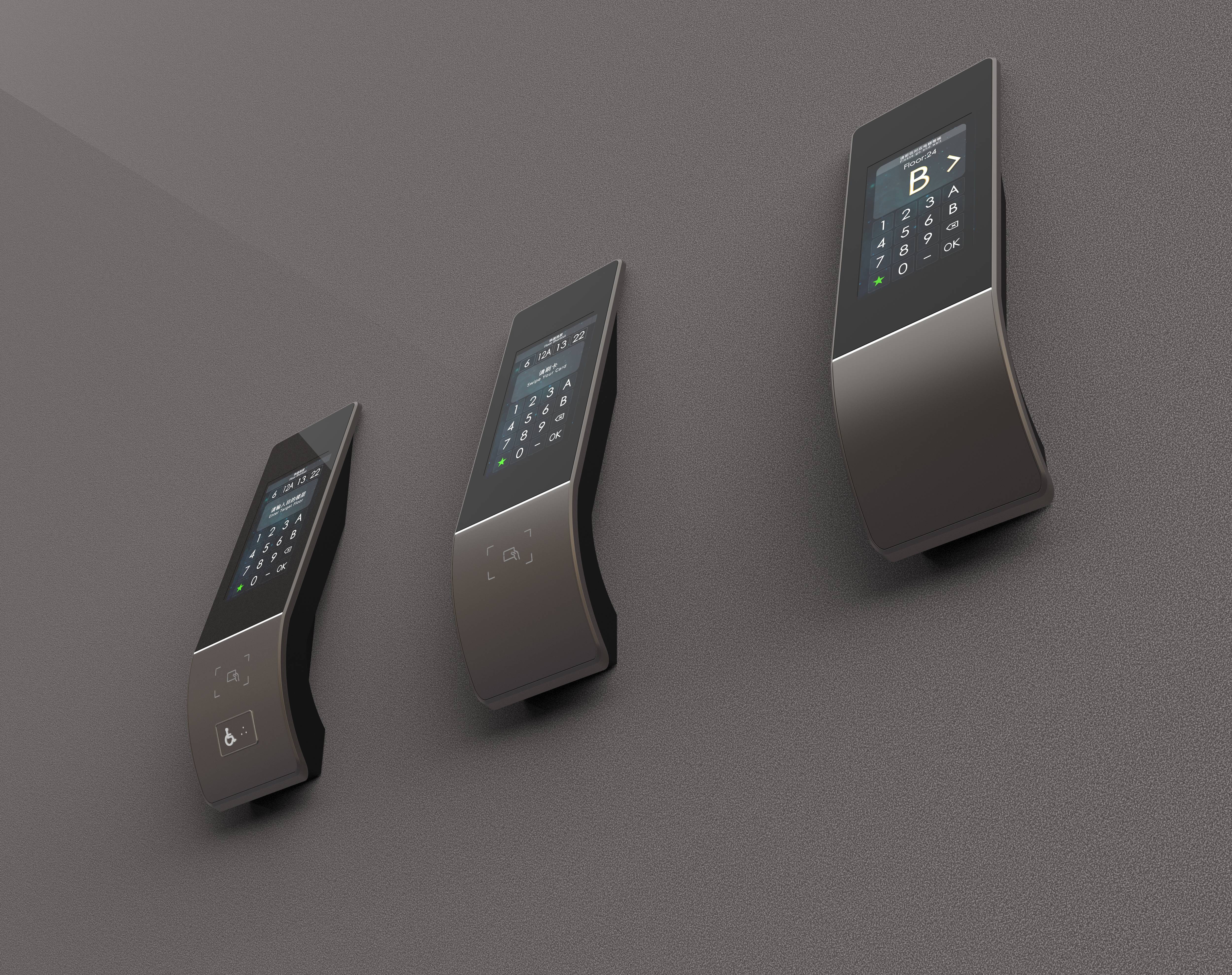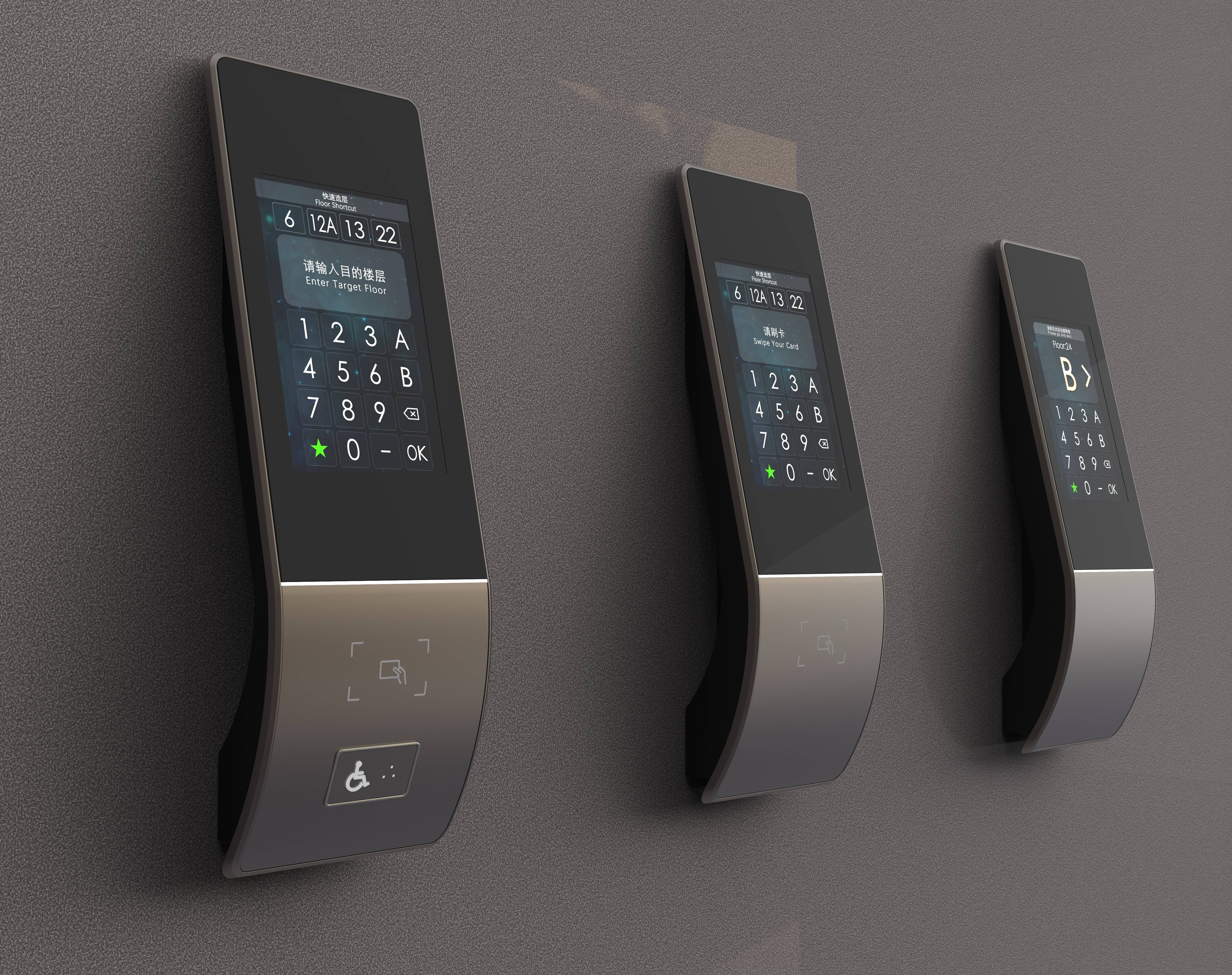 DF-f is a full set of elevator cluster control system designed to tailor a reasonably designed, effective passenger shunting solution for elevator clusters. It comprises two critical components, elevator operator panel and centralized control system. The uncluttered curve shape reconciles with the interior decoration of most buildings. The accessible buttons and card sensing area are disposed in the lower portion of the curve, compared to the touch button area and information indicating area in the upper portion. This sloping design makes information reading and button operation easier. The bottom of the control panel is hollowed out to weaken the perceived heaviness. In contrast, the centralized control system operates scientific scheduling algorithms to enable rational scheduling of multiple elevators during heavy traffic. A staff member or a visitor holding IC card can have their identity recognized and enter the desired floor before taking this elevator. Then the scheduling algorithms reasonably allocate a car. Passengers will be guided to the designated elevator, wait until the door opens. This helps them reduce the waiting time. A passenger without IC card can directly press the quick button to take elevator, or the numeric buttons on the touch screen. A passenger with mobility disabilities, like wheelchair-bound passenger, presses the accessibility button and speaks the desired floor, moves to the designated elevator as suggested in the display, waits until the door opens. Backed by the modified control panel design and scheduling algorithms, DF-f not only provides more efficient services, but also reduces the input cost compared to the centralized control system in traditional elevators. This gives a more affordable and effective alternative for old buildings where reinstalling elevators seem to be infeasible. DF-f is the best fit to an array of scenarios in buildings whether there is any access gate or not, or the face or fingerprint recognition should be added.
