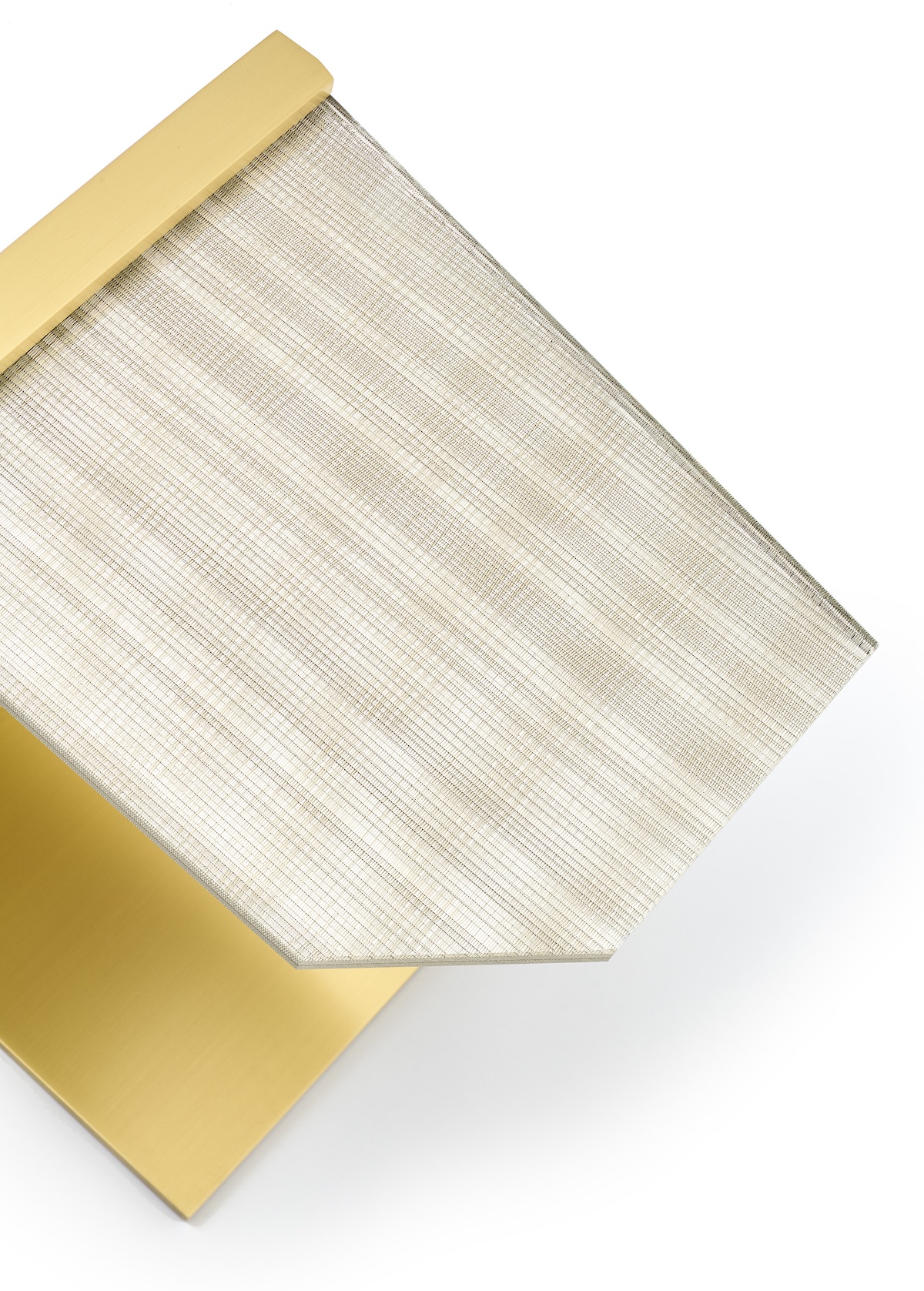 Brushed brass and elegant hand-crafted metal mesh are what define the Float C Table. It features a custom-shaped laminated glass top and is built for cantilevering over any chair or sofa. 15.5"L x 13"W x 19"H.