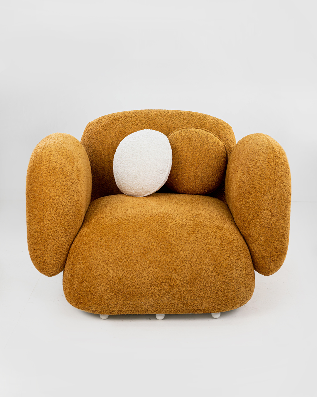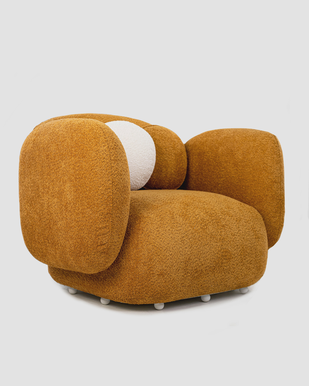 The armchair from the ‘Biscuit’ collection is a vivid example of modern design that harmoniously combines aesthetic appeal and functionality. Its voluminous, rounded forms, inspired by sweet pastries, create a visually attractive appearance that offers a sense of coziness and comfort, typical of modern living. Soft cushions, resembling fluffy clouds, provide a feeling of tenderness and relaxation, as if embracing you and inviting you to immerse yourself in a world of comfort.