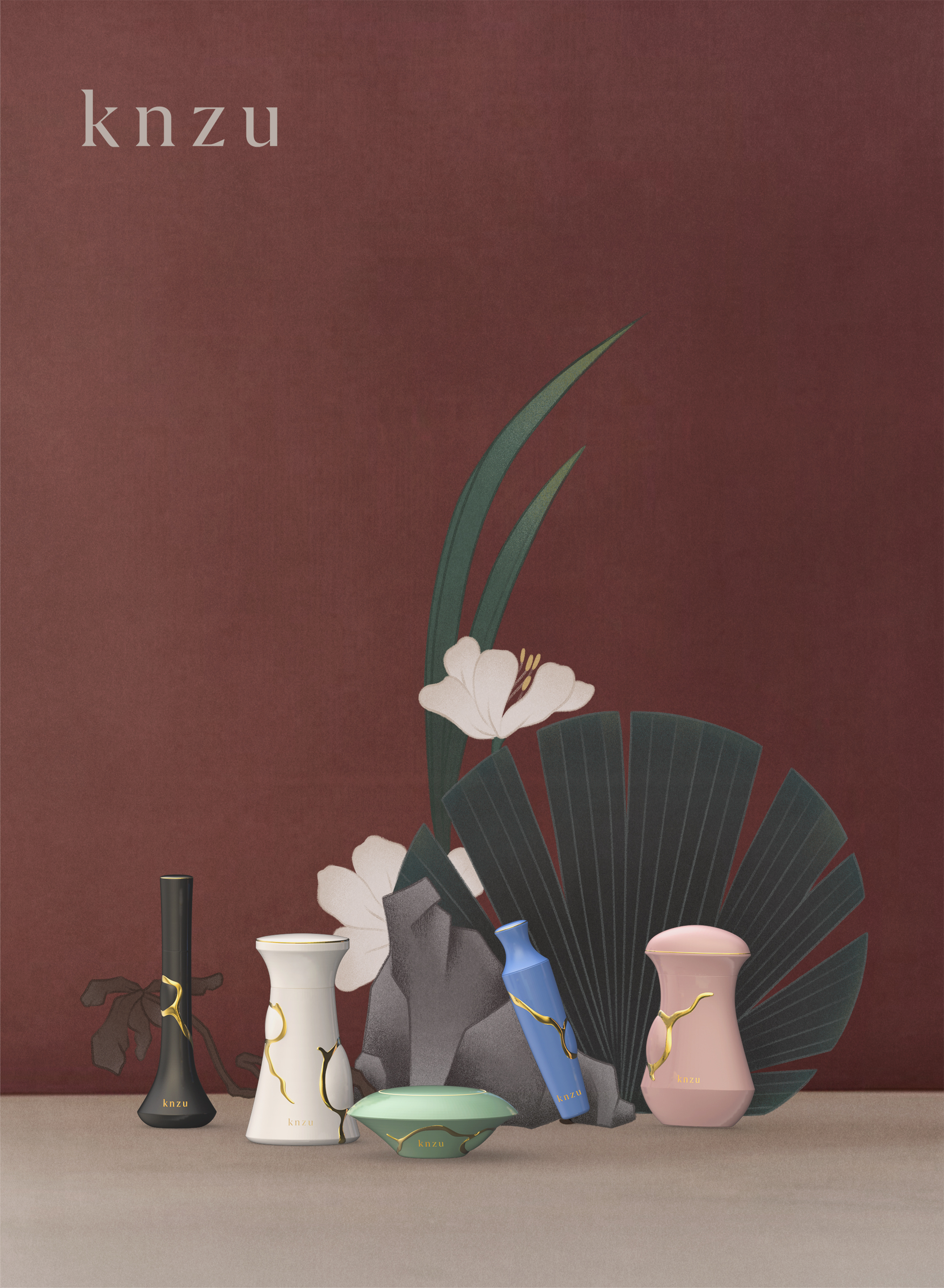Drawing inspiration from the Japanese art of Kintsugi, which involves repairing broken pottery with gold, knzu embraces the philosophy of celebrating imperfections. The packaging design aims to convey the message that you are beautiful just as the unique individual you are. Each product is housed in ergonomically designed bottles, ensuring ease of use with a secure grip.