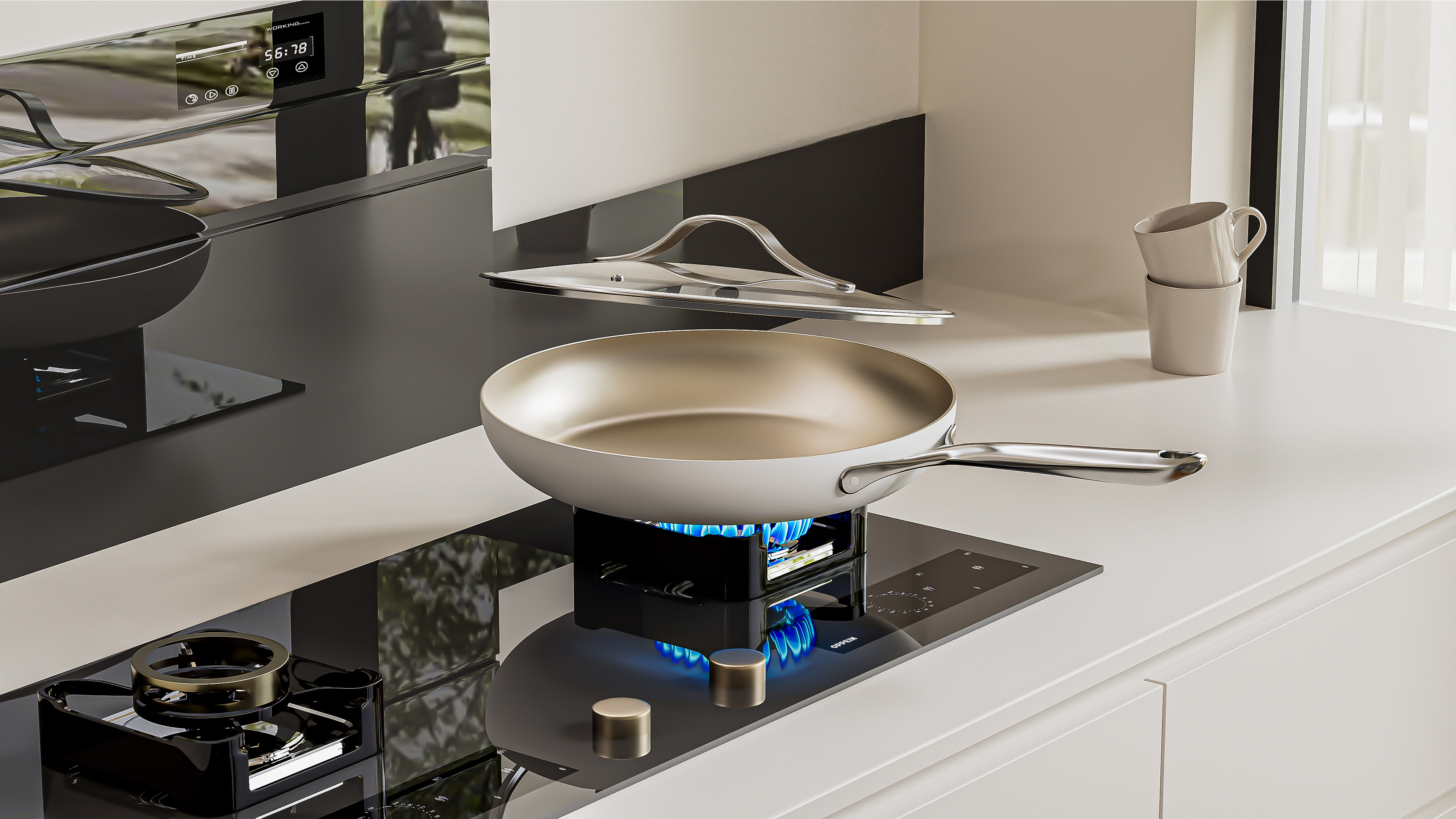 Innovative three-layer steel structure combines inner titanium, middle aluminum, and outer 430 stainless steel, achieving a perfect blend of efficient heat conduction and long-lasting durability. Titanium’s high melting point makes it resistant to dry burning and perforation. The unique titanium coating process significantly enhances wear resistance, ensuring the non-stick layer remains intact and effective even when using metal utensils.