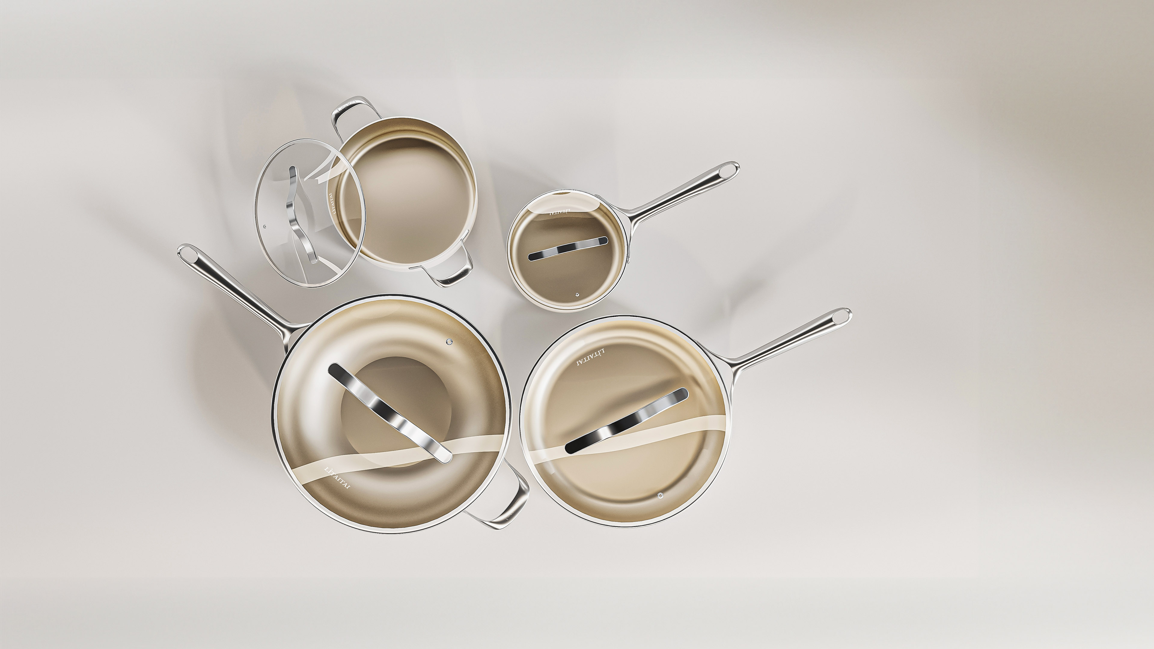 Ultra-light Antibacterial Titanium Non-stick Pan Set, unlike products on the market that claim to be “titanium cookware” but vary in quality, truly uses high-standard titanium, without any coatings or heavy metals, which ensures no harmful substances or heavy metals leach into food. The introduction of titanium significantly enhances the non-stick properties and heat conductivity of the cookware, ensuring efficient cooking while preventing food from burning and sticking, thus avoiding the production of harmful burnt residues and preserving the pure taste of your dishes. The unique antibacterial technology effectively inhibits 16 types of bacteria, including heat-resistant strains, which ensures comprehensive food safety. And together with the rust-resistant and anti-corrosive properties, the cleaning and maintenance are greatly simplified.