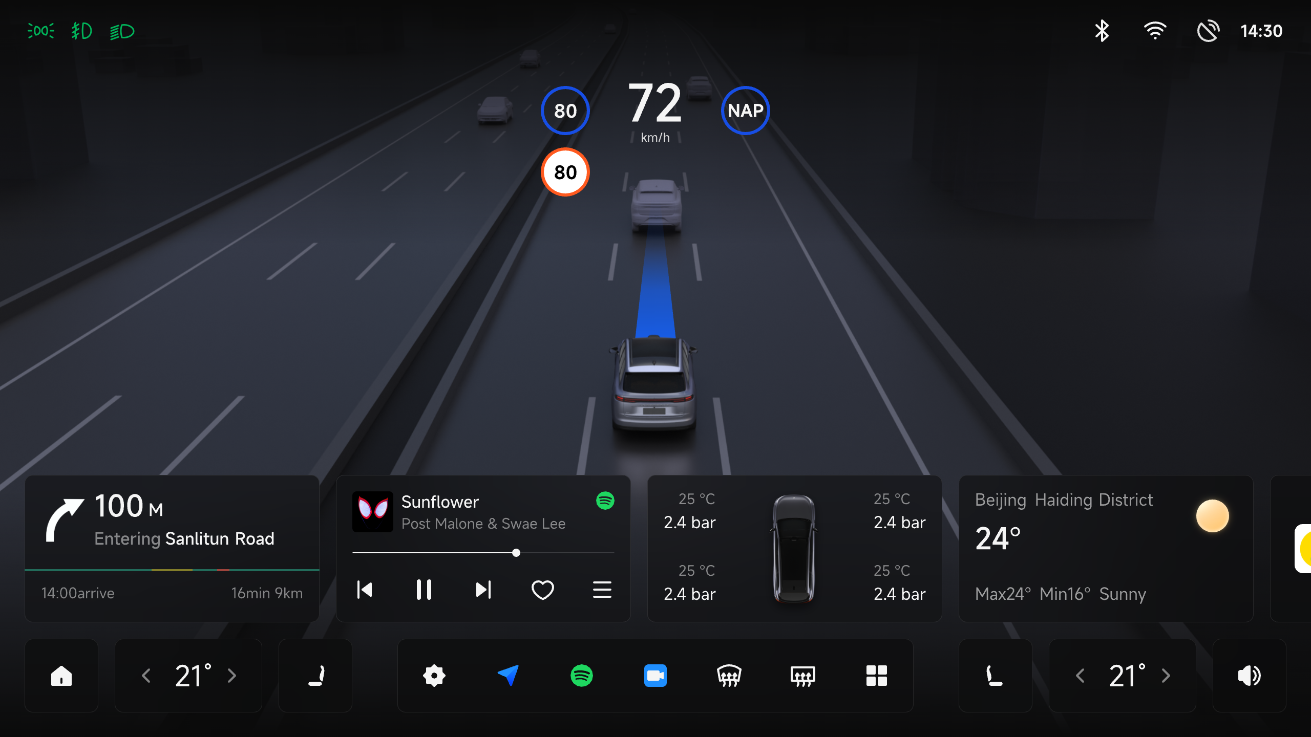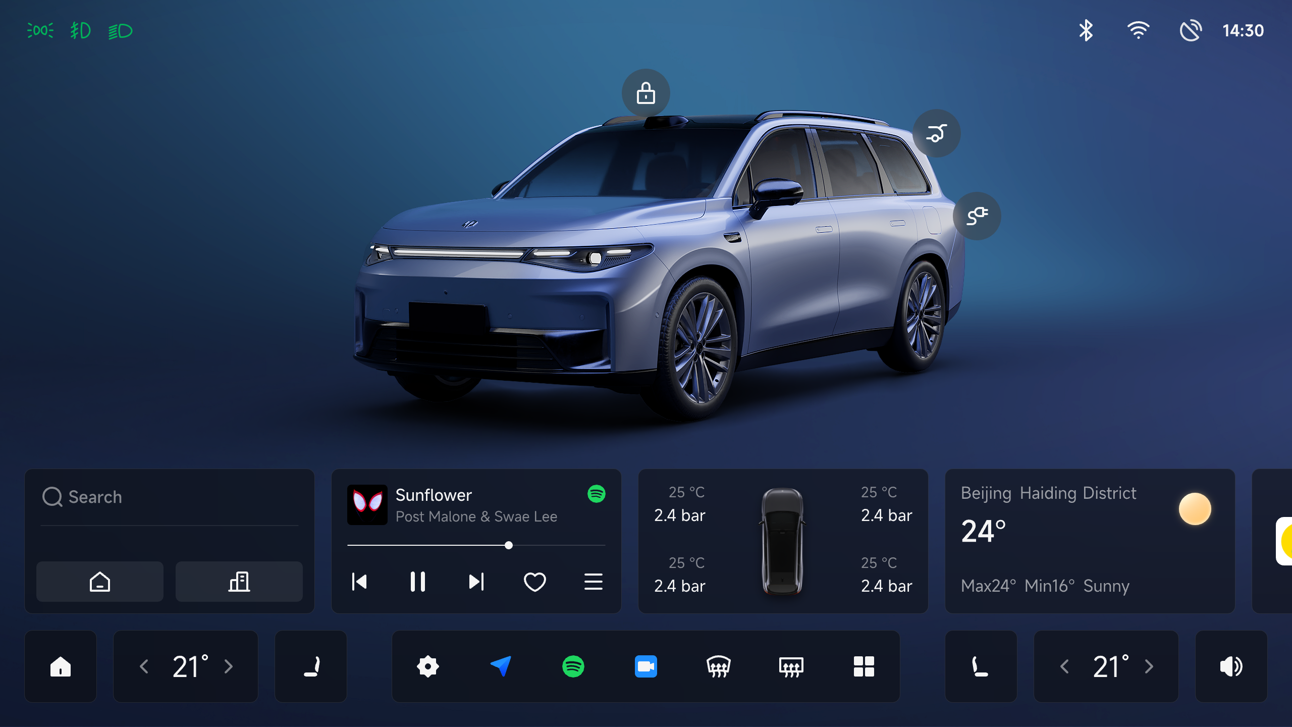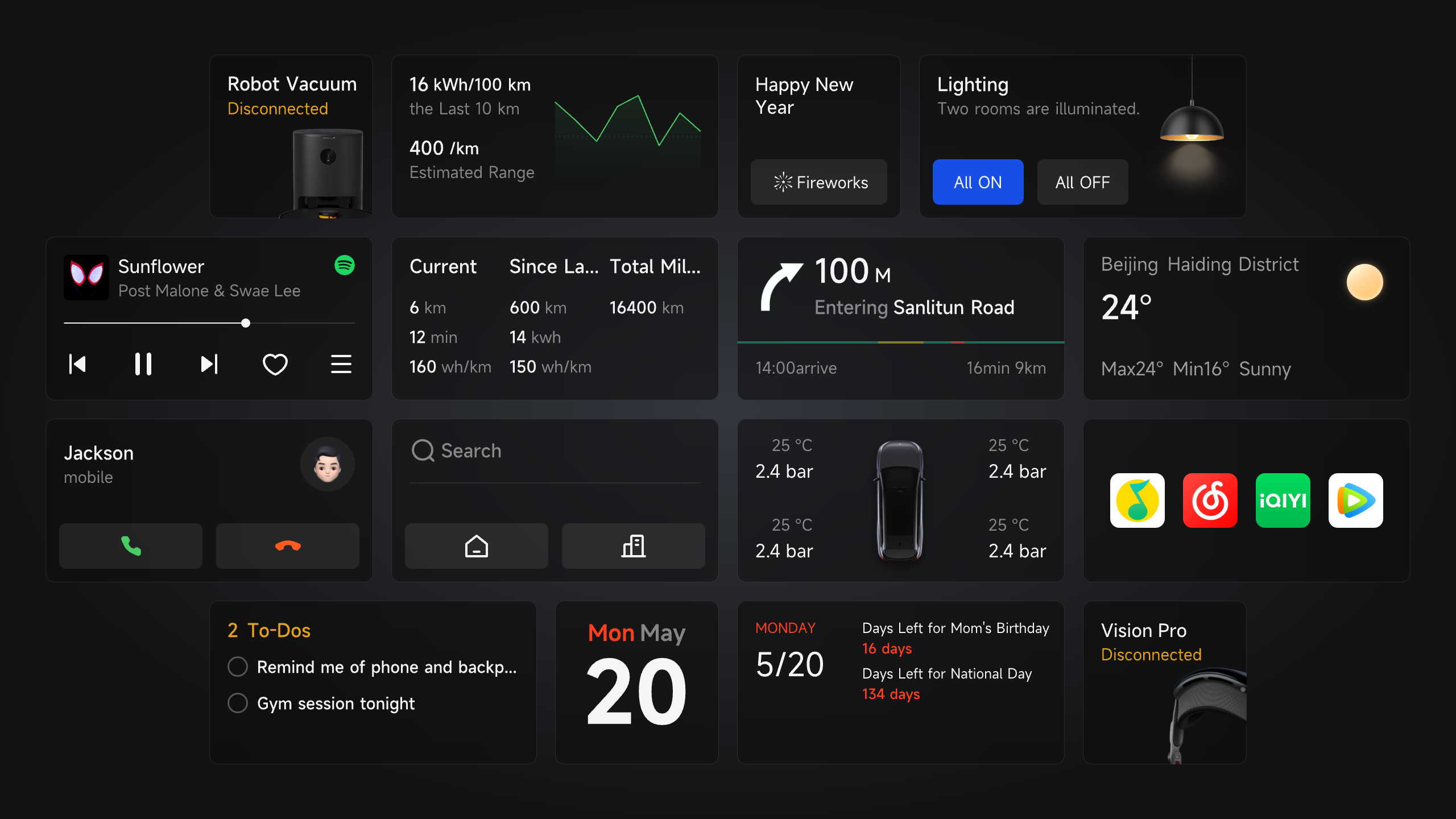 This is a sophisticated and customized in-car interactive system that incorporates state-of-the-art vehicle-to-home communication technology together with reshaping perception of the driving environment and information display features. Convenience and comfort are brought to every ride as it easily integrates the car into the smart home environment. Following the design tenet of "Smart Driving, Enjoyable Life," we seek to develop an in-car experience that not only satisfies driving needs but also corresponds with users' emotions and lifestyle patterns by integrating real-time environmental sensing with intelligent driver assistance. With just a single click, you can switch between several driving modes and enjoy 360-degree panoramic views. Our system also provides extensive environmental information and customized services. By easily establishing connections with smart home appliances to set up pre-programmed smart home scenes for the trip back, the vehicle-to-home connectivity feature turns the automobile into a life assistant. Moreover, a range of dynamic widgets provide instantaneous modifications of diverse features, including driving modes, ambient lighting, and music, so facilitating personalized control.
