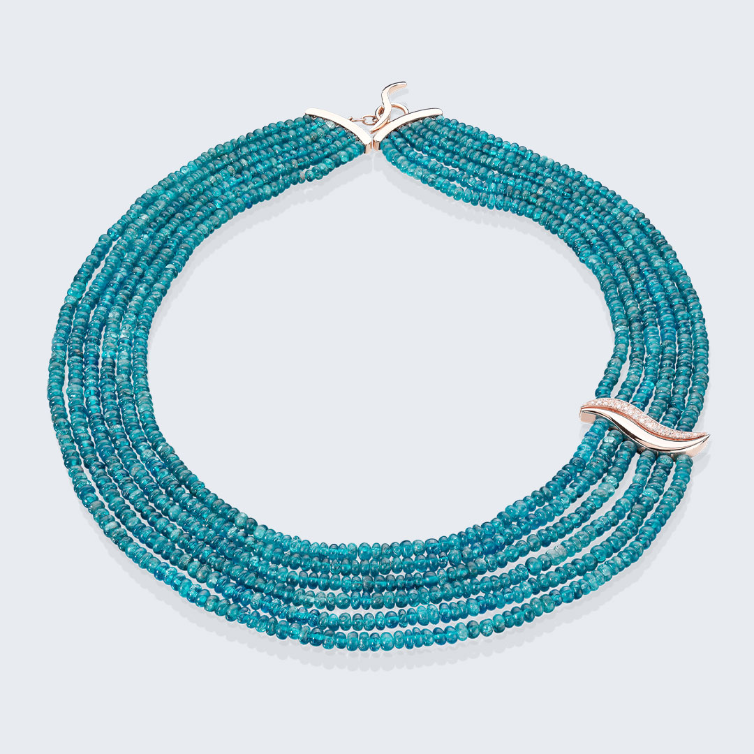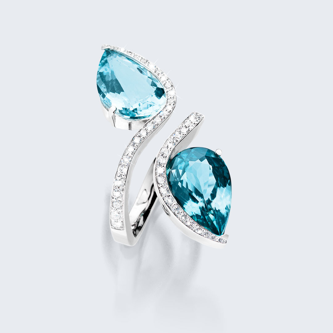 The “AQUA” collection by Schullin addresses water as a vital element and source of joy in life. They are hand-forged designs made of precious gemstones and 18 ct fair trade gold, sustainably produced in Austria. The diamonds are certified by the Kimberley process.