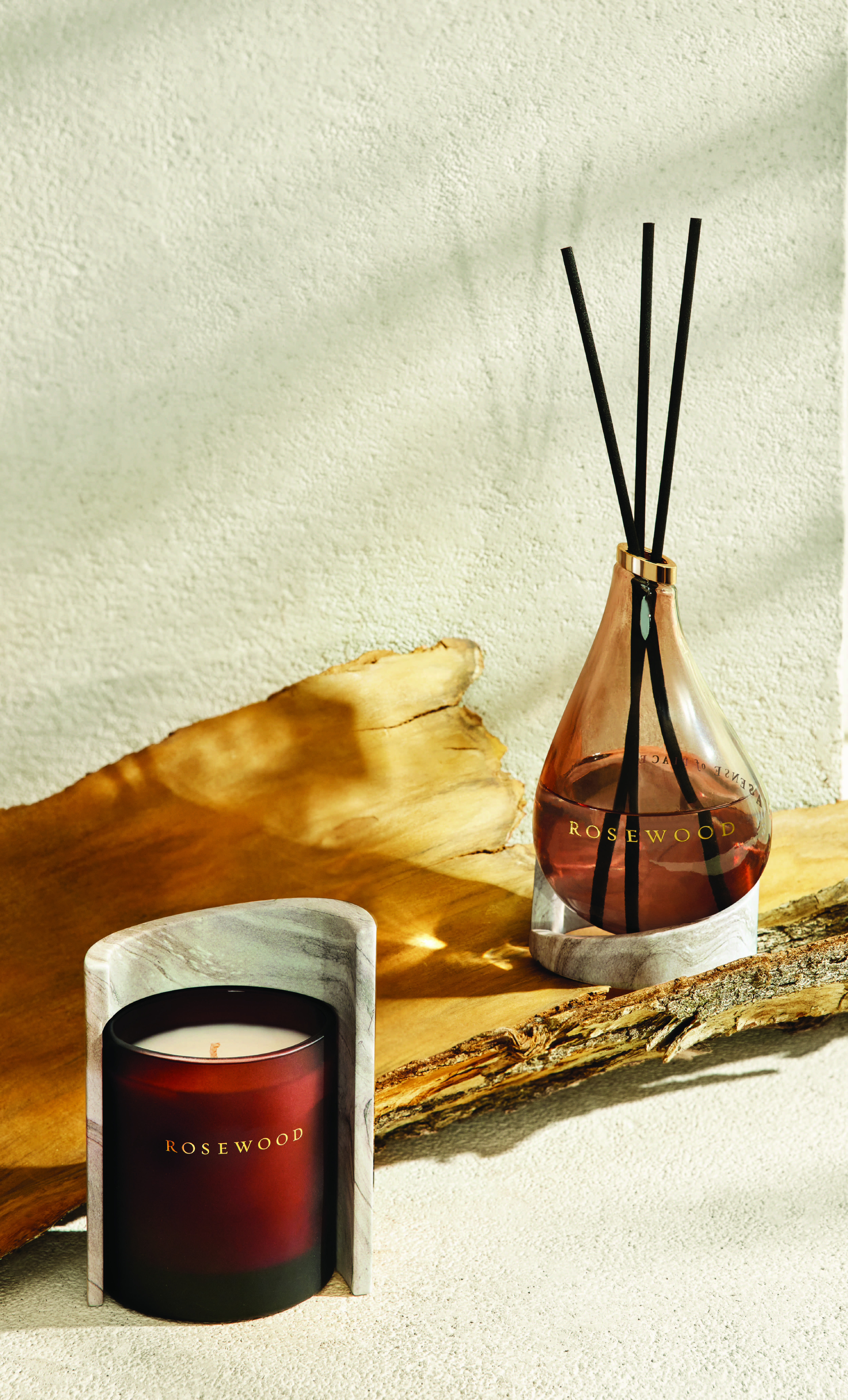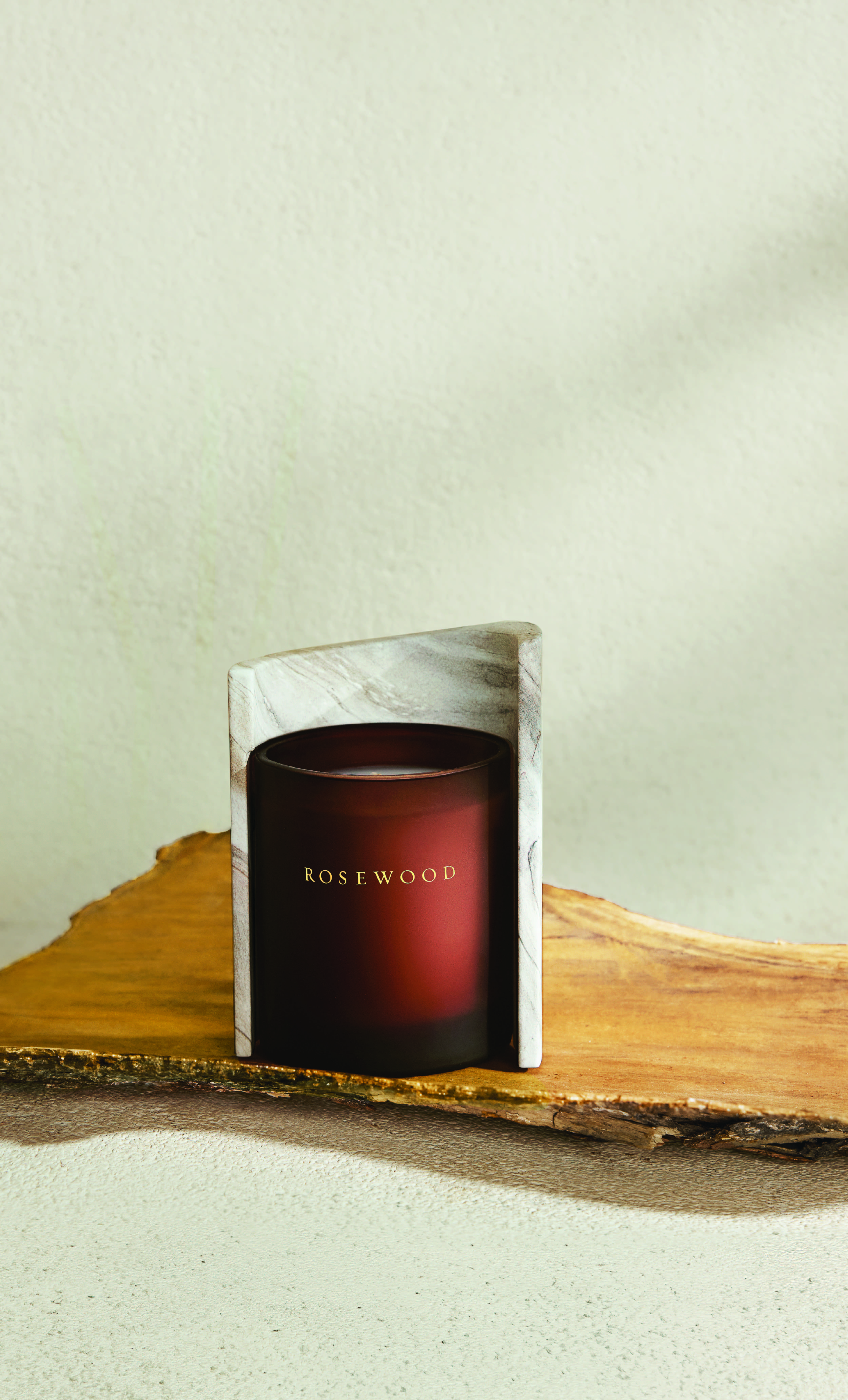 Centdegrés China, a Paris-based design agency designed a home fragrance series for Rosewood inspired by "the art of living," combining design aesthetics with sensory experiences. Our product includes reed diffusers and aromatic candles. The overarching design concept revolves around fluid curves as the primary design language, evident in both product and packaging design. For material choices, we utilize marble and glass to create a striking "collision effect," adding an element of surprise. The product's modeling language presents contemporary artistic expression through a blend of random and regular geometric elements.