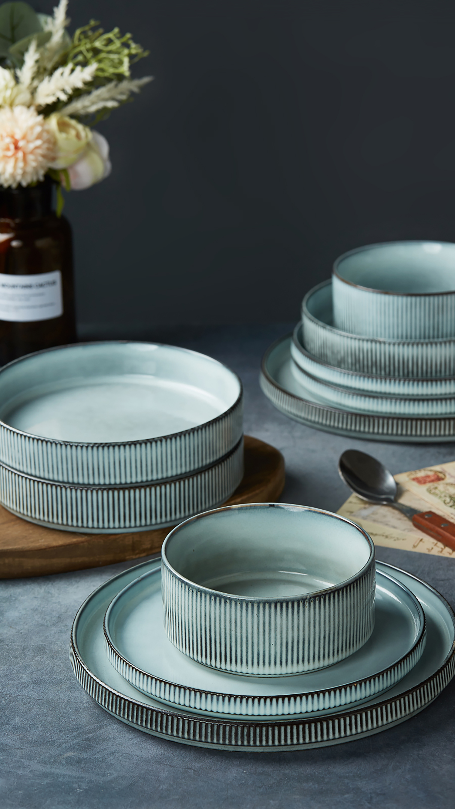 This series boasts a cylindrical body with modern ribbed stripes, making it simple but exquisite and suitable for various scenarios in daily life. Moreover, this series can be heated in the microwave or washed by the dishwasher. It has a scratch-resistant surface formed through 9-hour 2340-degree Fahrenheit high-temperature firing, securing practicality and beauty.