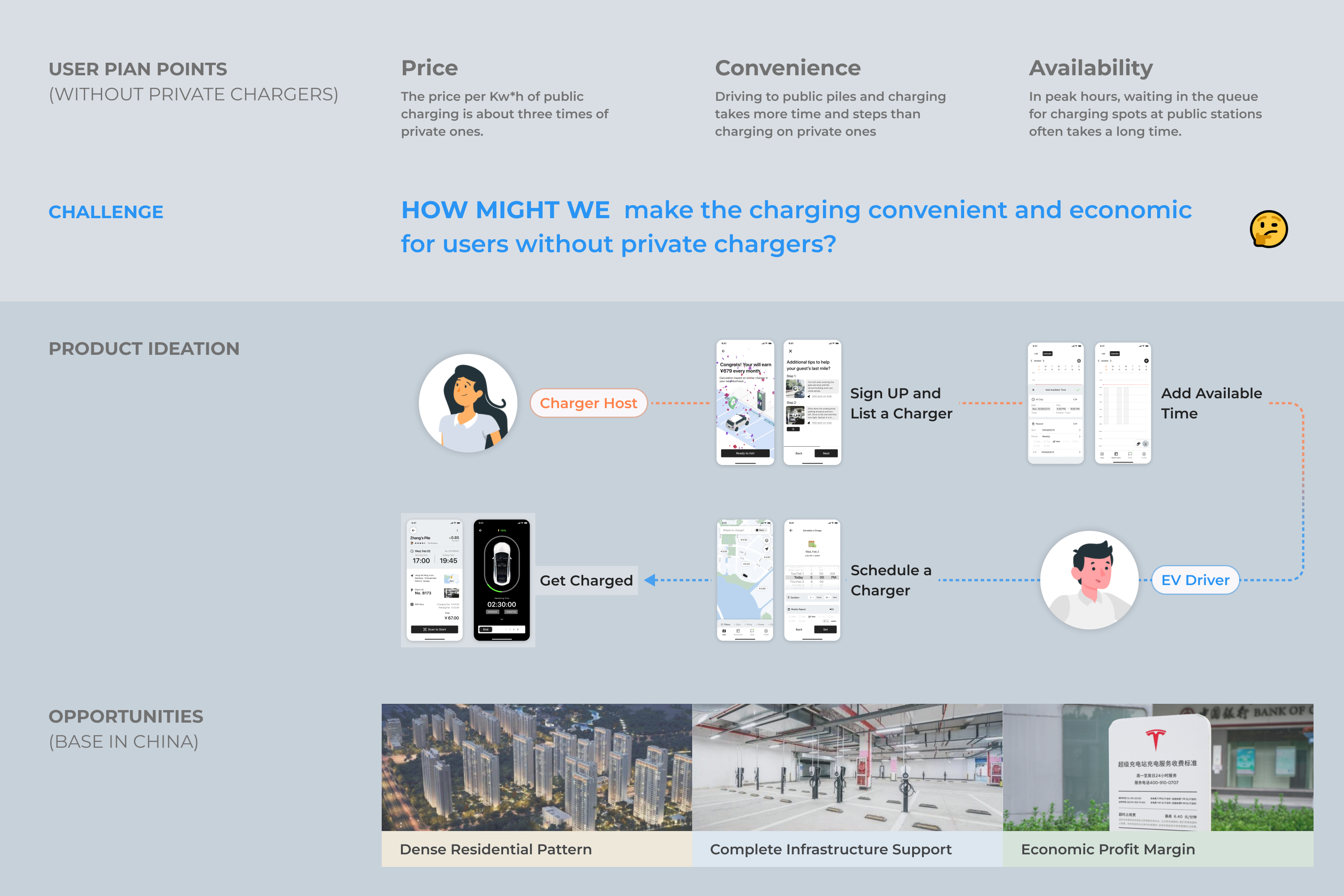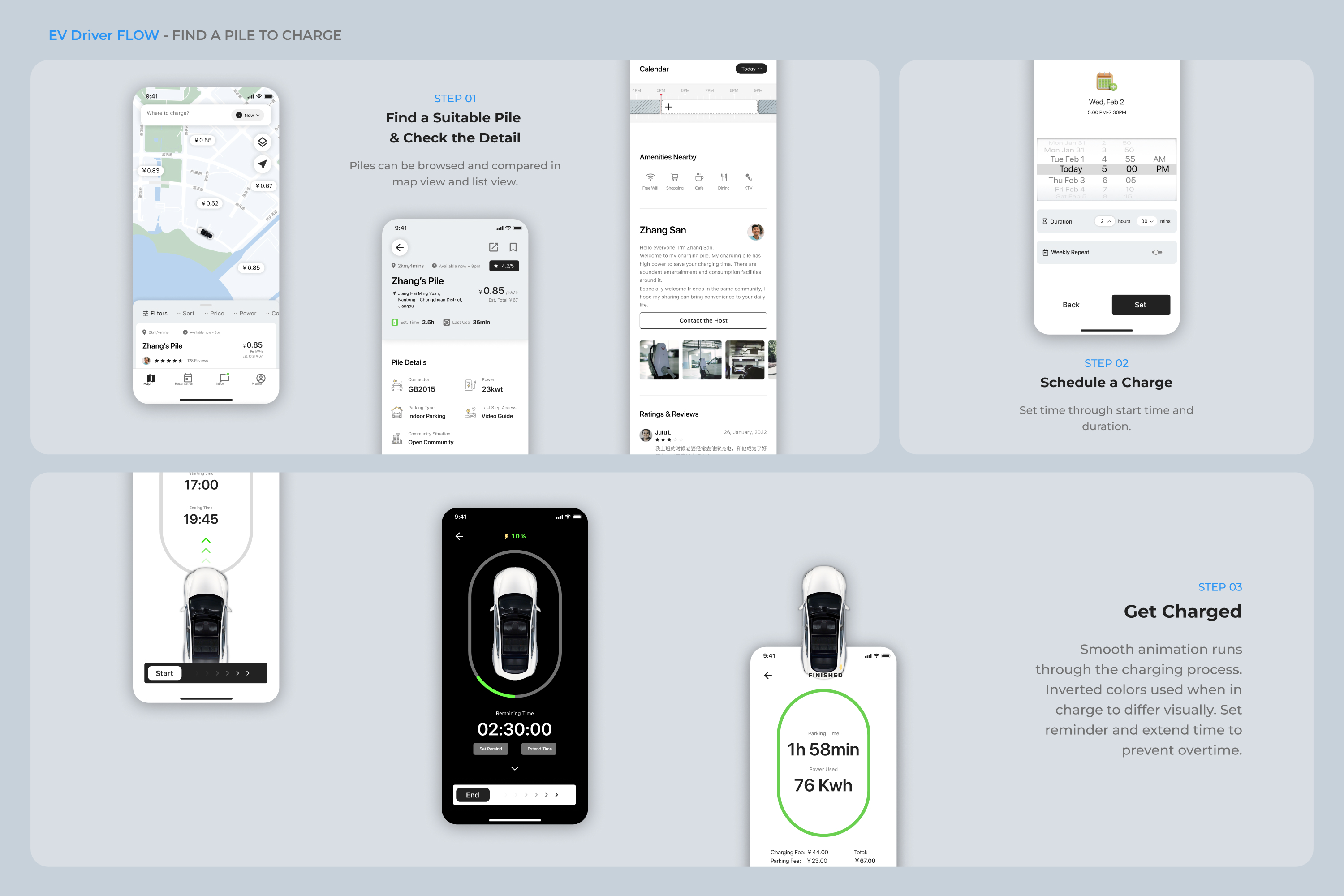 Sharge is a client project from China to transform the landscape of electric vehicle (EV) charging in densely populated urban areas. This innovative platform seamlessly connects EV owners with private charging pile owners, providing a solution that is both economical and convenient. By capitalizing on the existing infrastructure of residential parking lots, Sharge facilitates the sharing of private charging stations, utilizing cost-effective residential electricity rates.