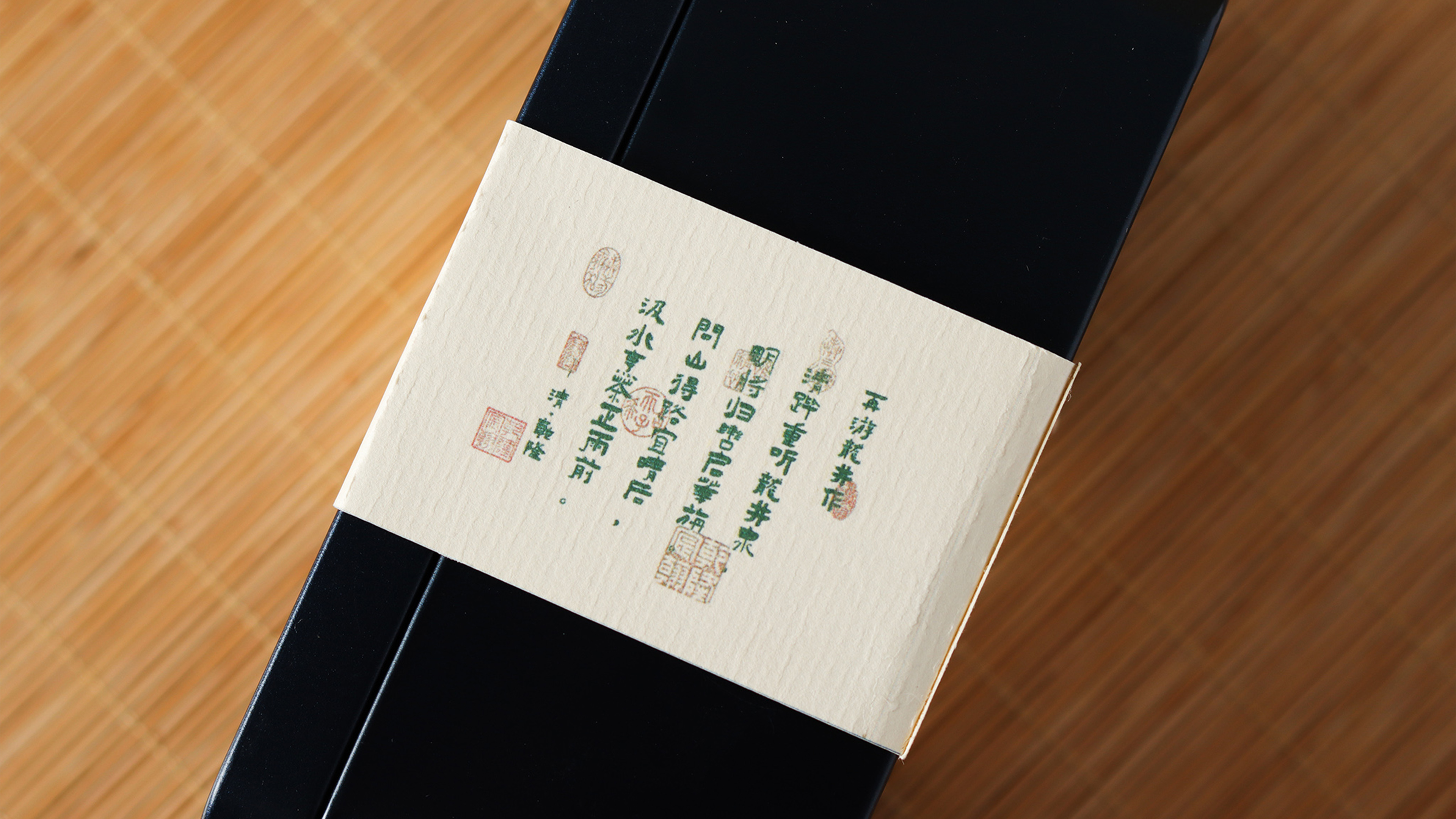 Lion Peak Longjing: Celebrating Emperor Qianlong's passion, the box features his poem "Revisiting Longjing," penned during his fourth southern tour, evoking nostalgia for West Lake scenery and Longjing tea. The scattering of seals, inspired by Wang Xizhi's "Letter After a Heavy Snow," adds an aura of imperial elegance.