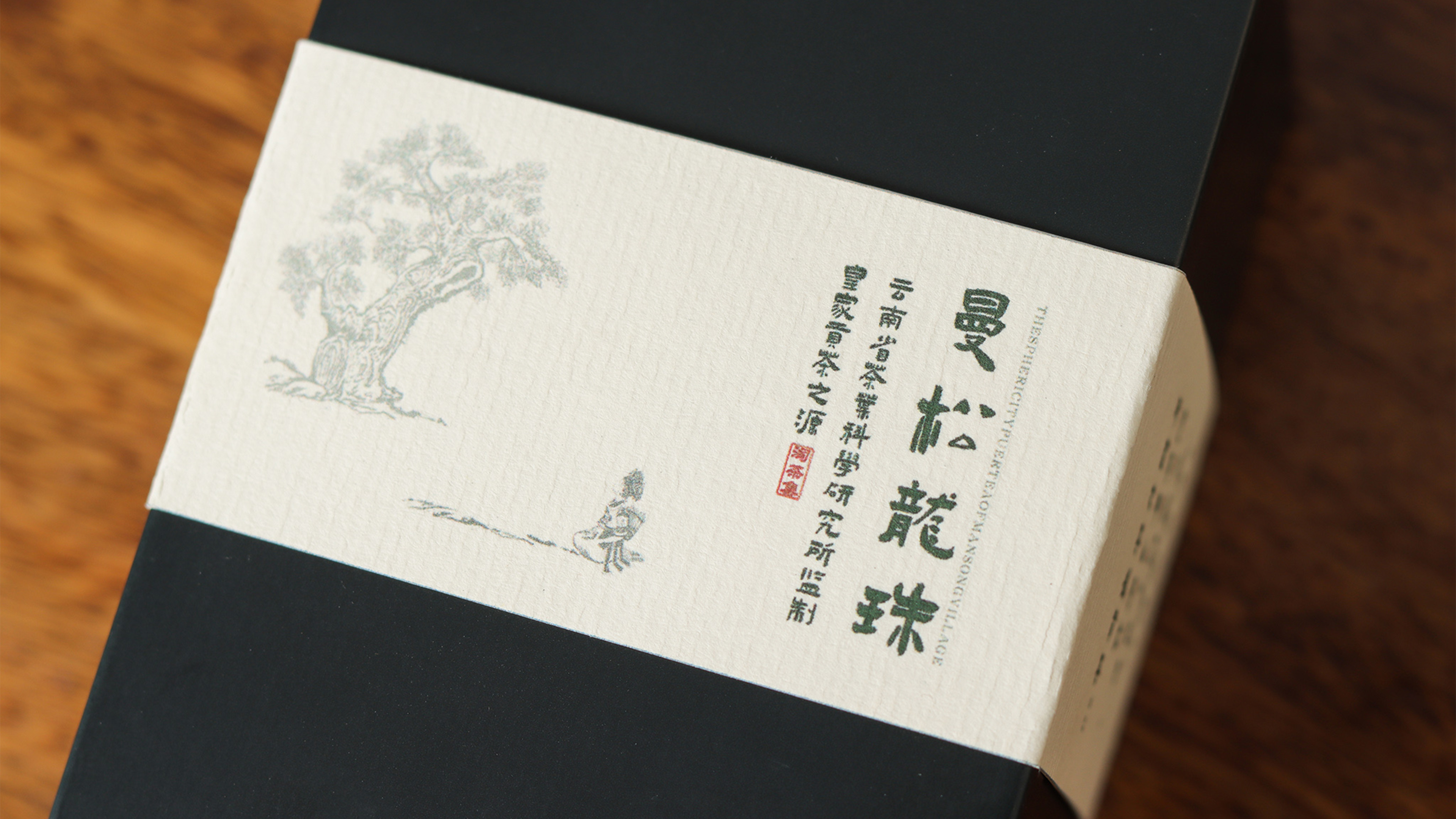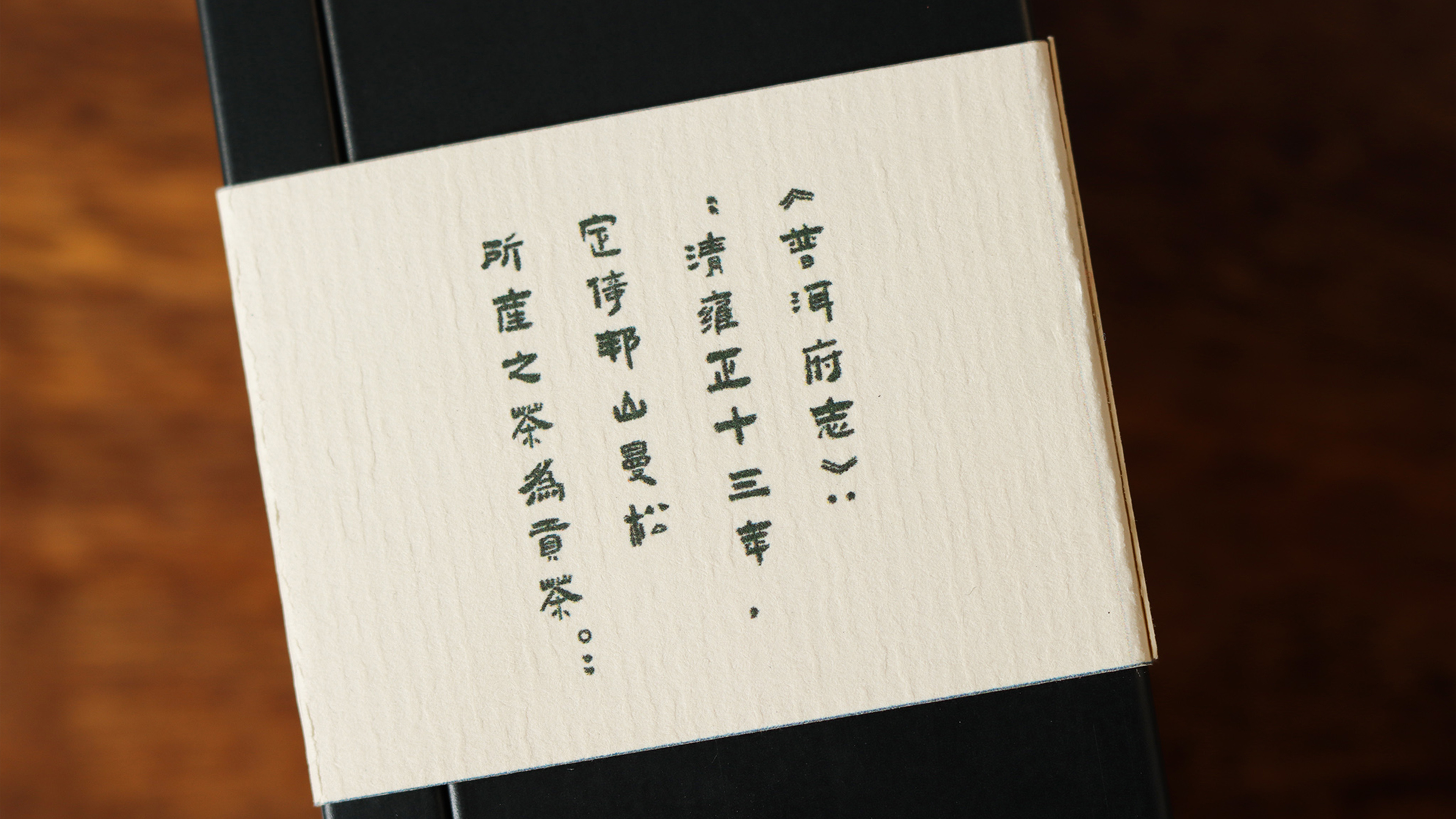 Mansong: Respecting nature, the illustration portrays Yi people venerating ancient tea trees, while the side features excerpts from Qing Dynasty's "Records of Pu'er Prefecture," highlighting Mansong's centuries-old glory as imperial tribute tea.