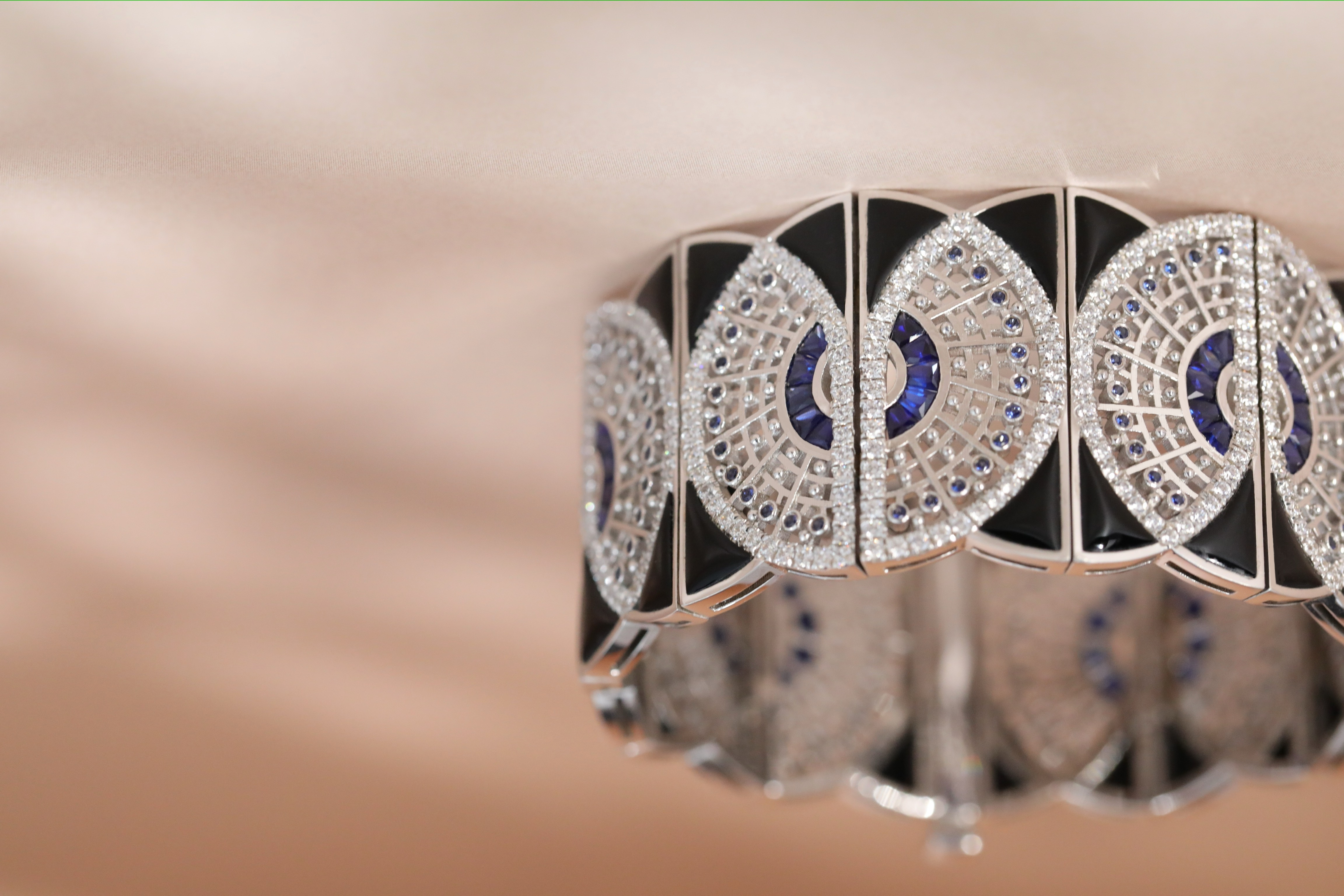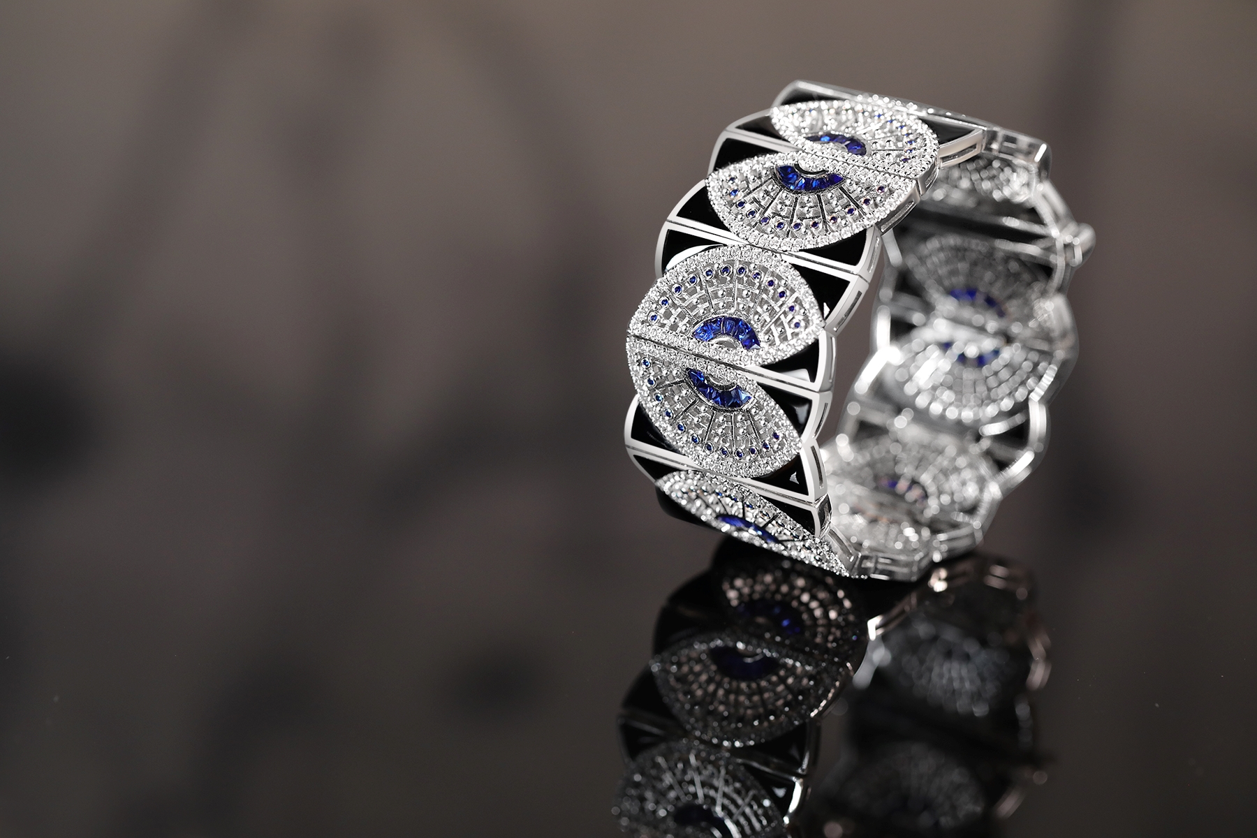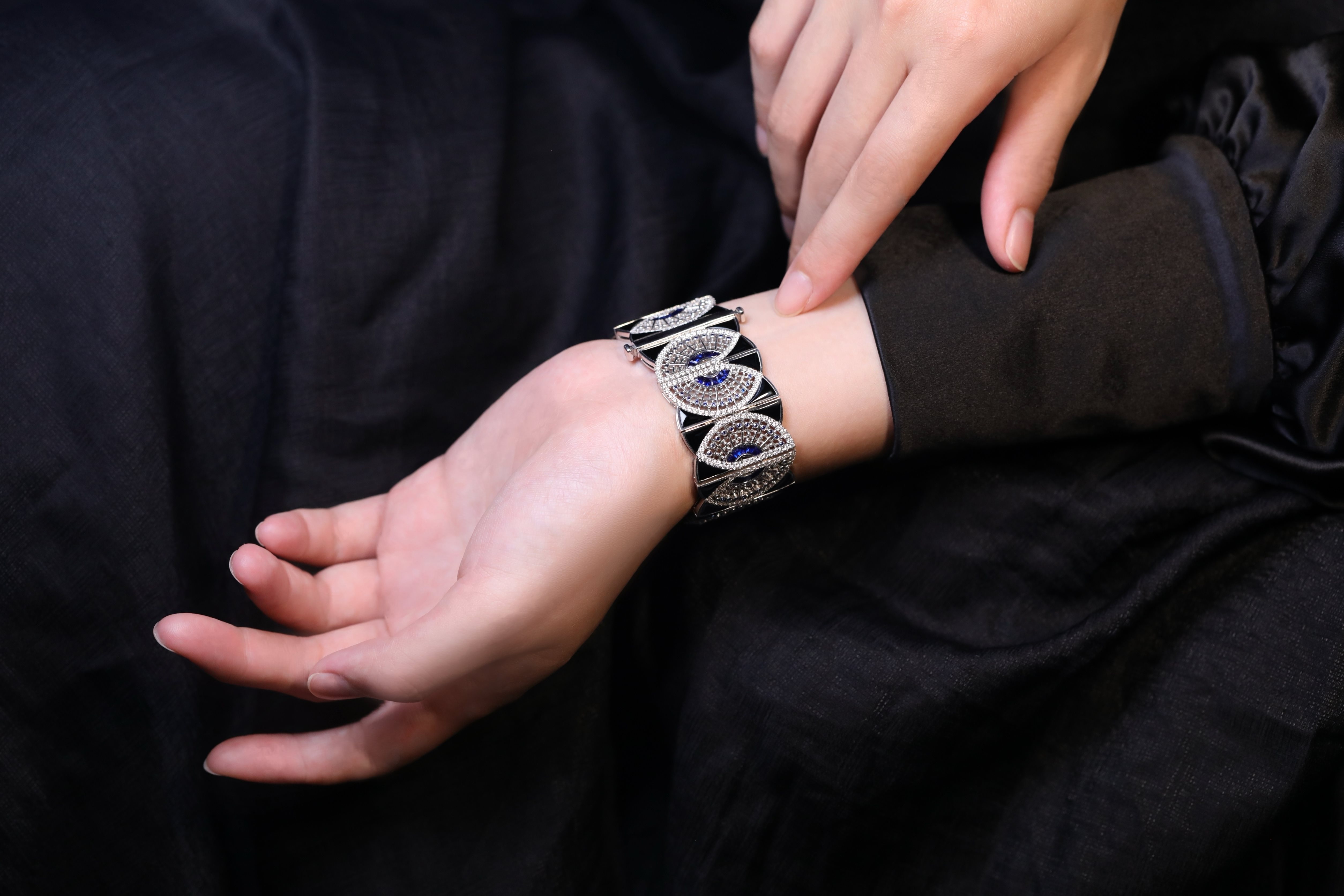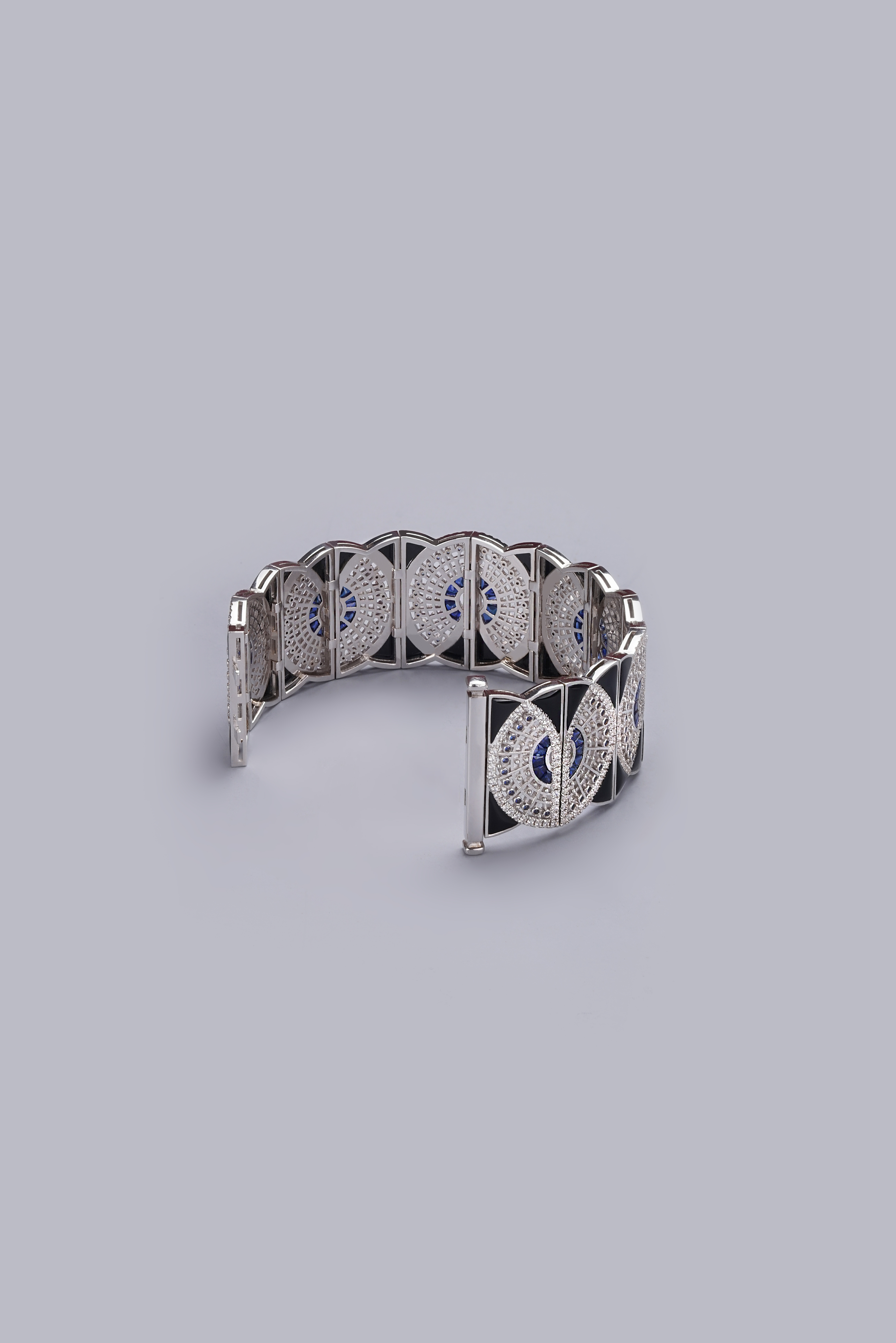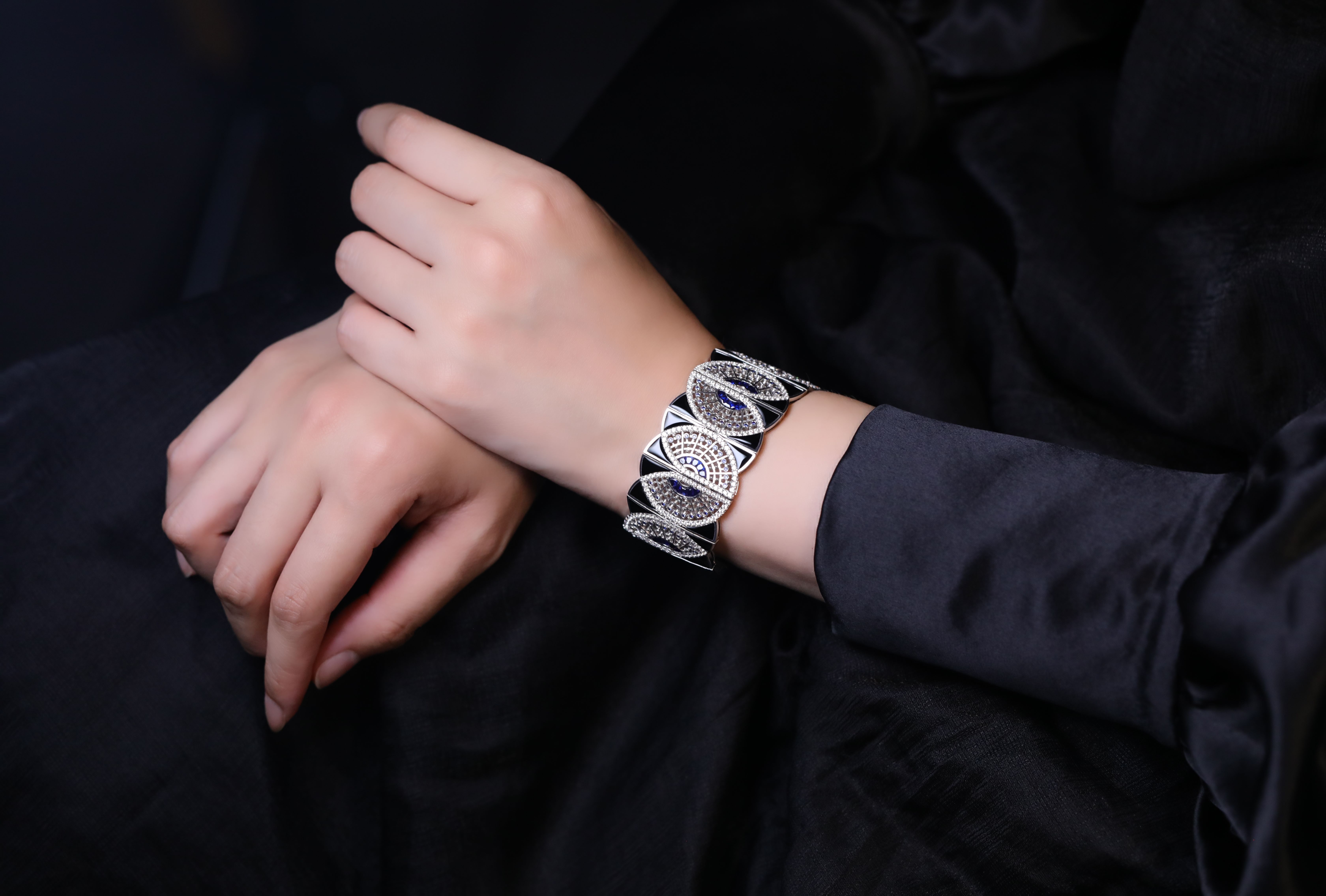 Material selection plays a crucial role in bringing the bracelet's design to life. High-quality black onyx, white diamonds, and sapphires are carefully chosen to symbolize different elements of the Bohemian world. The deep, mysterious black onyx represents the night sky, exuding a sense of calm and stability. The brilliant white diamonds, shining like the brightest stars, symbolize guidance and direction, while the cool, serene sapphires reflect the moonlit rivers of the Bohemian landscape, adding a touch of mystery and depth.