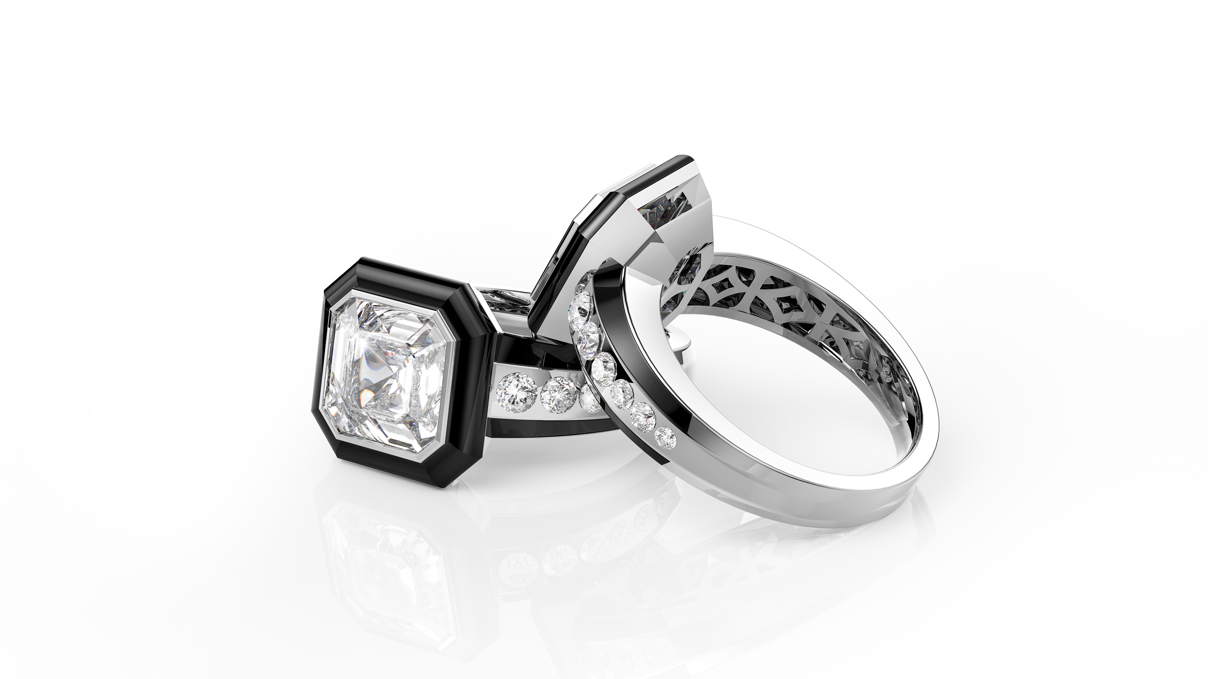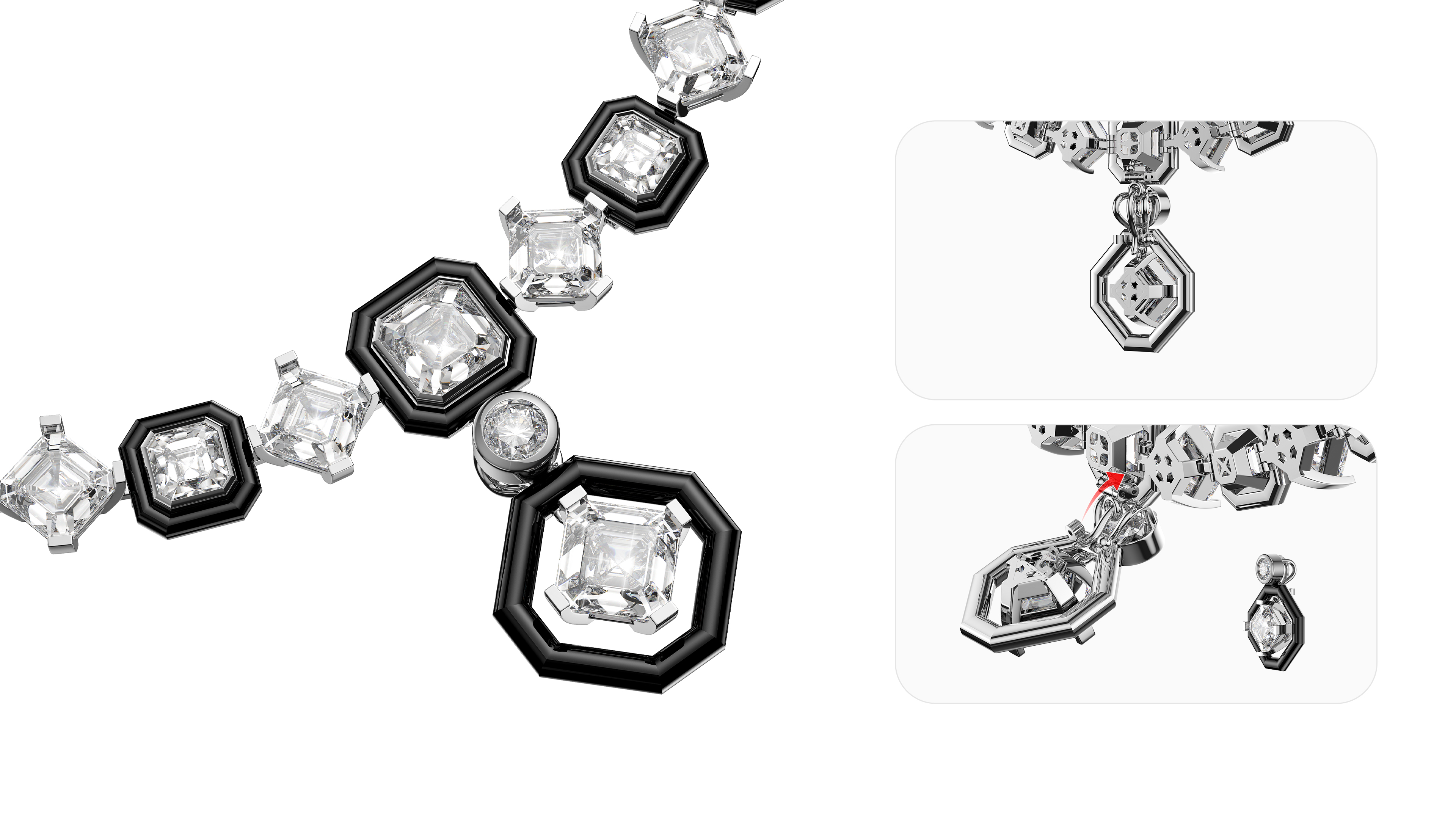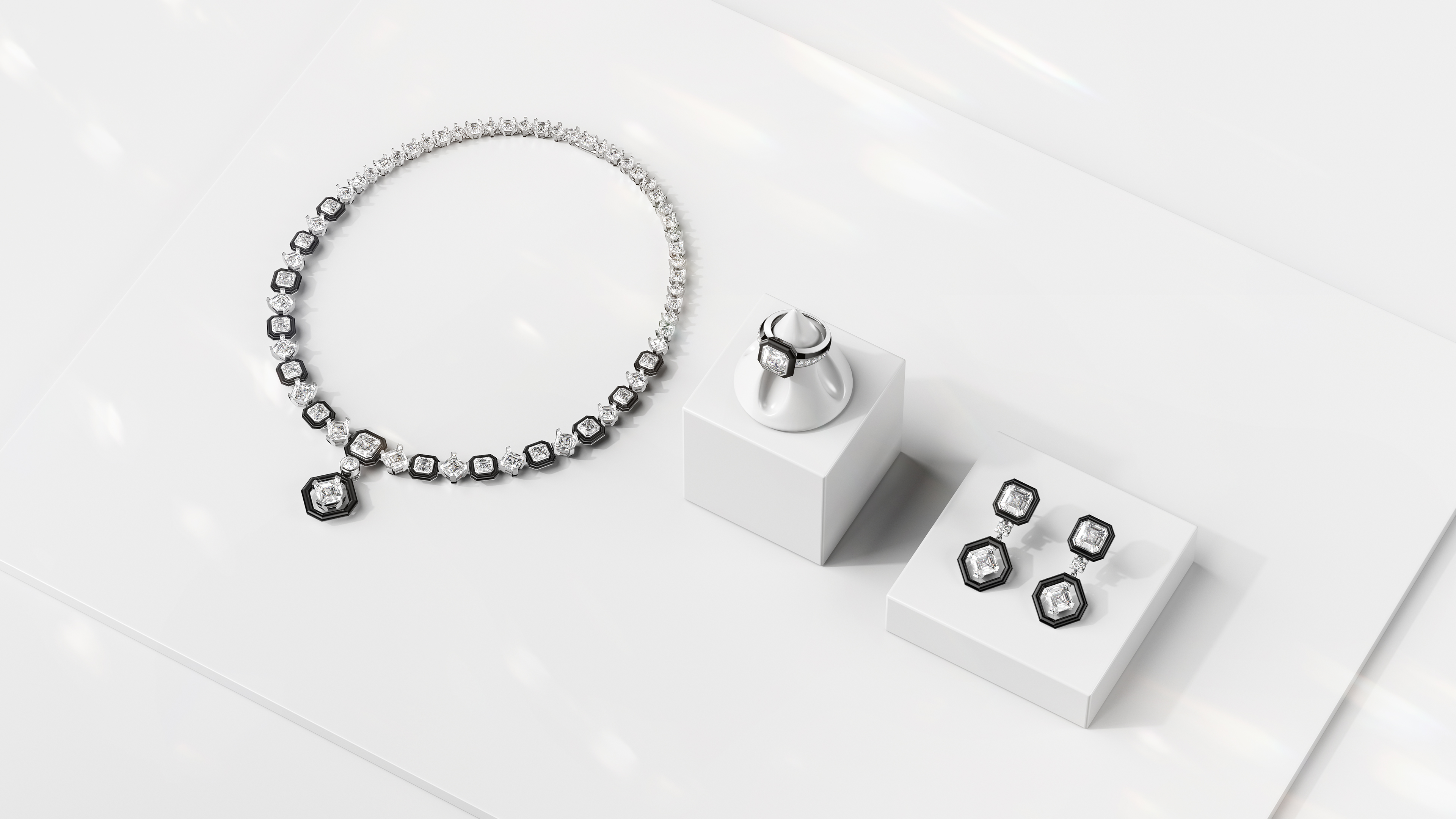The design of the Art Deco removable set collection highlights a unique visual tension through the stark contrast of black and white tones and the interplay between metal and enamel. The overall design is based on three-dimensional geometric forms, carefully refined through a blend of polishing, electroplating, and enamel firing techniques. This process enhances the metal edges, making the lines more distinct and dynamic.