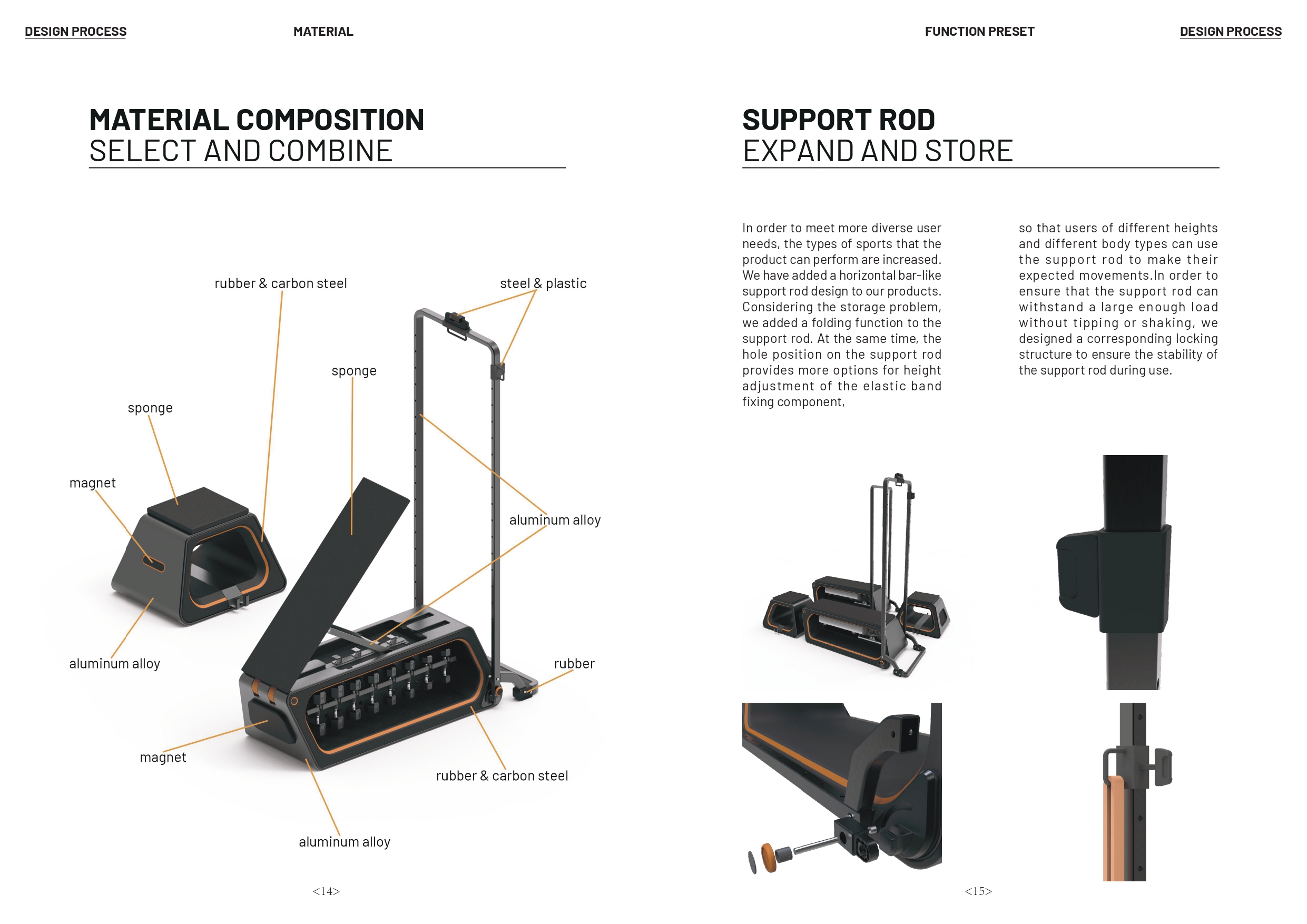 Force Max is a modular fitness equipment suitable for modern homes. It has a unique shape and visual impact. It has equipment storage and home fitness functions. It can also provide fitness assistance through camera monitoring and video feedback, taking into account different fitness levels. crowd. Force Max can become a part of the family, encourage people to be active, and provide more training possibilities to people who have fitness needs but do not have enough financial strength and time. Integrate multiple exercise methods into one device 2. Ensure user safety and structural stability during use 3. Research and implementation of motion correction algorithm 4. Structural strength inspection 5. Integrate fitness equipment into the home environment.