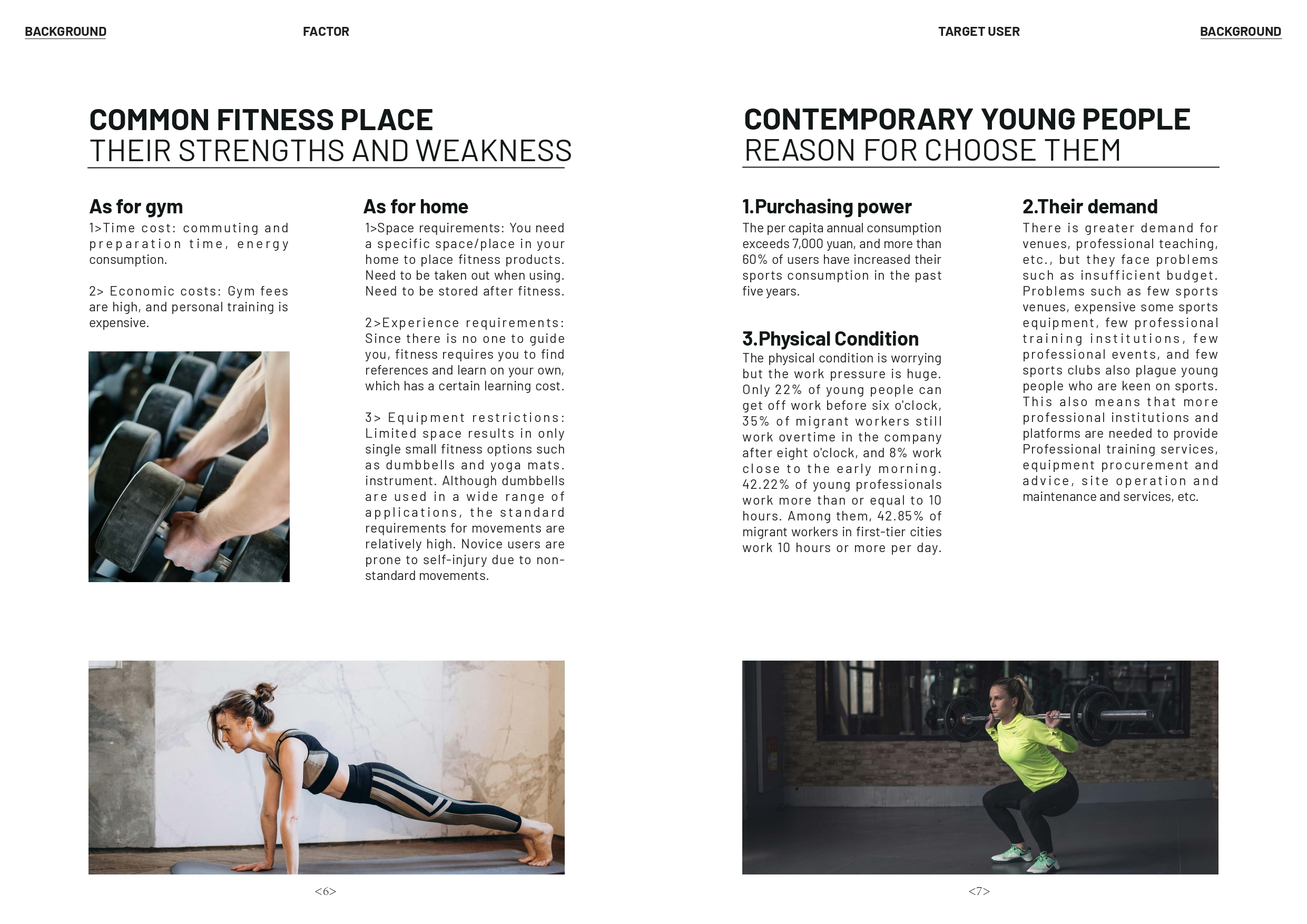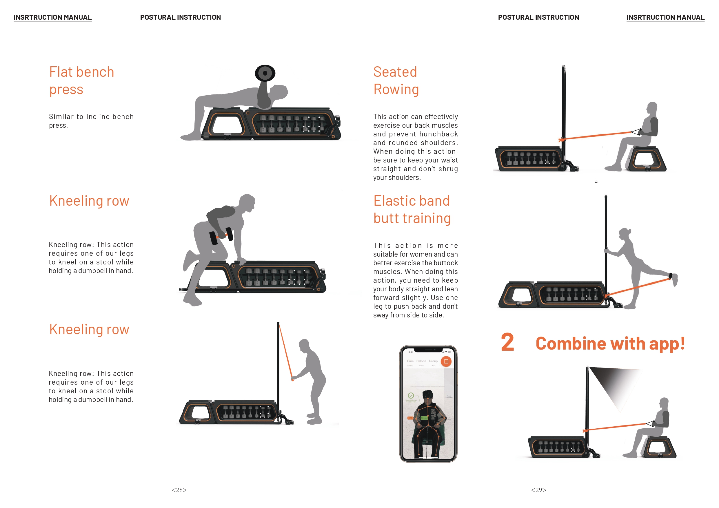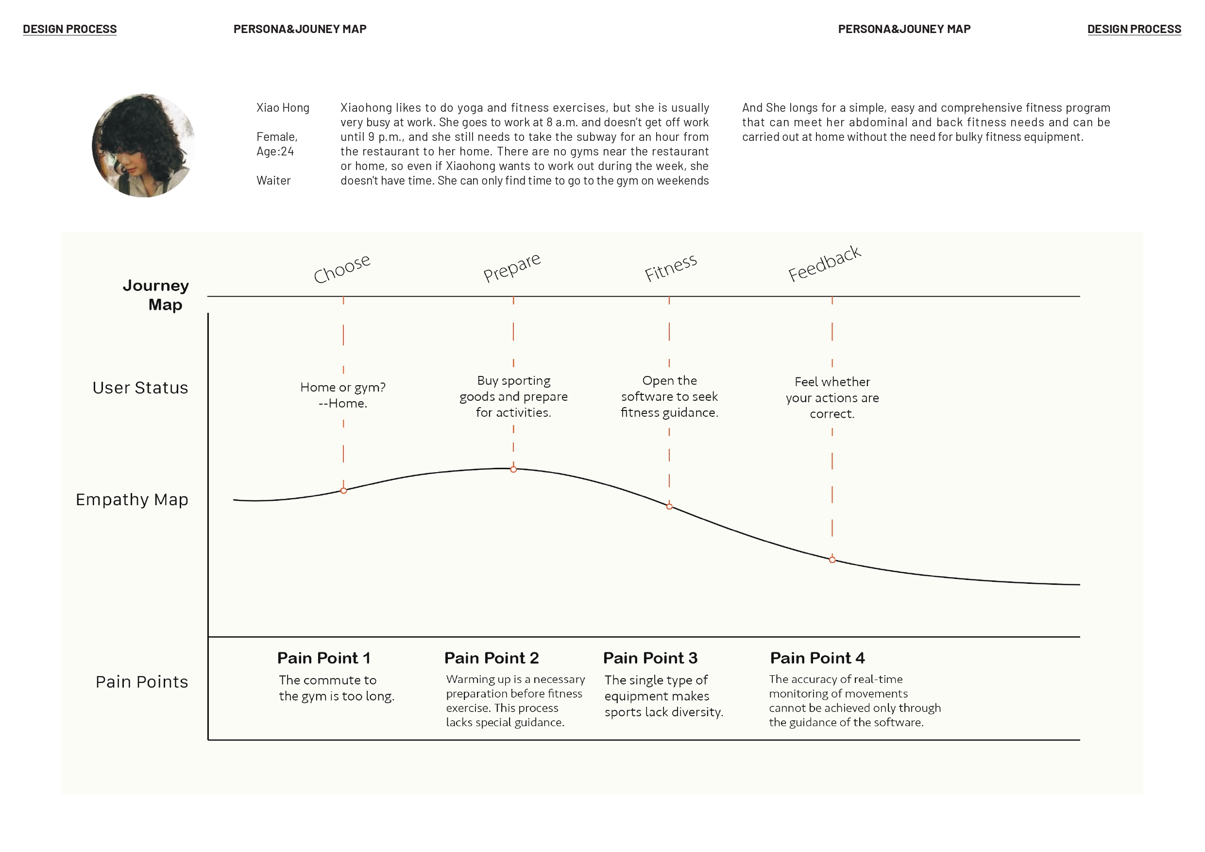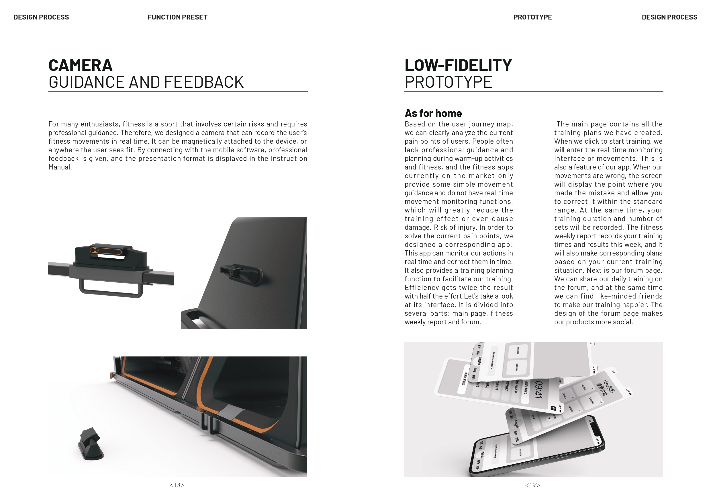 People's fitness needs is increasing, but personal fitness coaches and professional gyms consume a large part of the financial and time costs of young workers. We are searching for convenient and affordable fitness method, so that even fitness novices who are busy at work and short on funds can perform exercises with the right guidance. It is a kind of indoor furniture that can store things, integrated into the home, and capable of completing mainstream fitness movements and giving feedback.