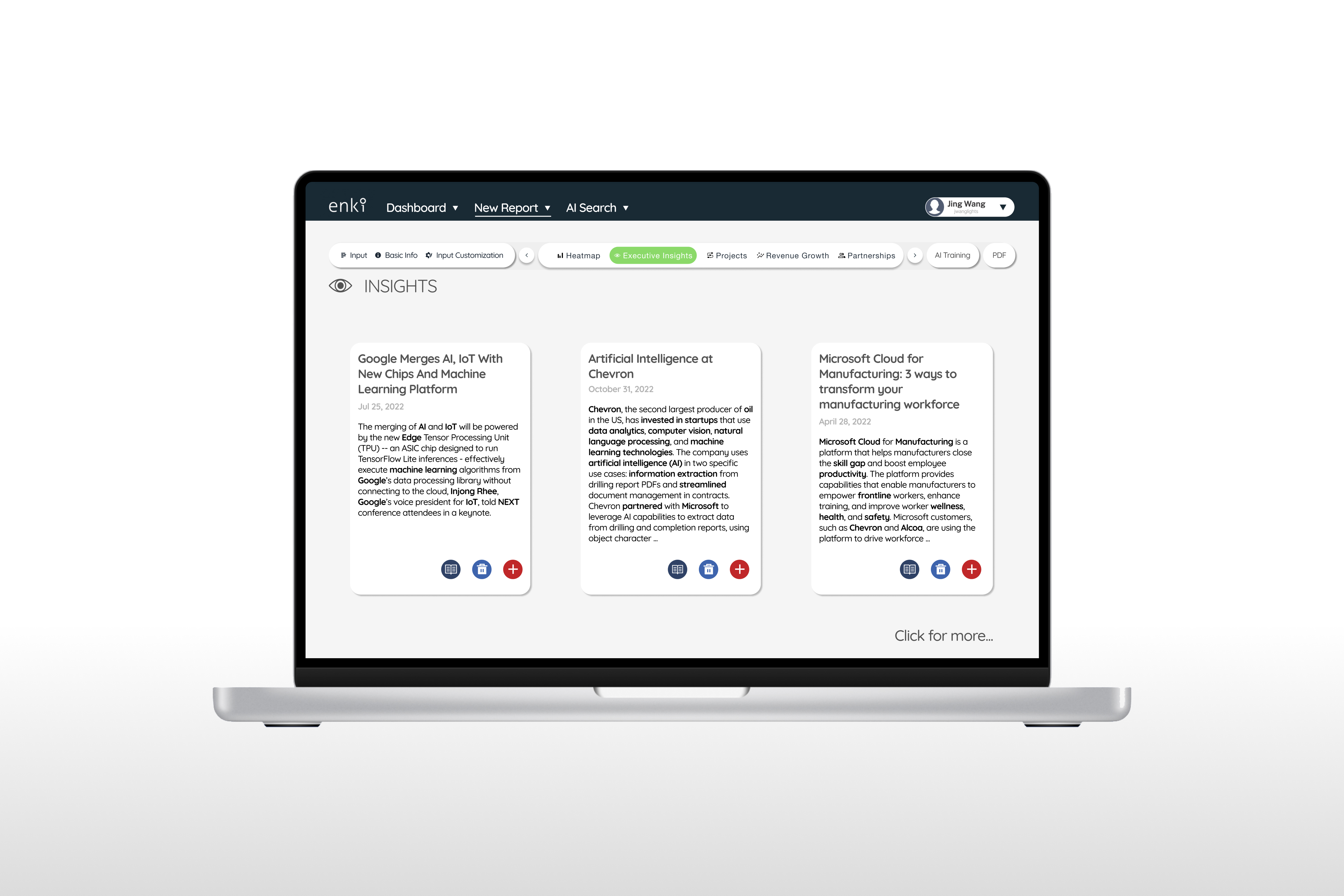 We understand the businesses' uniqueness and their pain points. So, we redefined the research process, incorporated AI Search to build basic, objective awareness, and introduced AI Training to optimize the insights pool with effective iterations. Keywords are a vital connection between users and their insights pool training, so we designed the training loops with keywords to facilitate users' reading and data training accuracy.