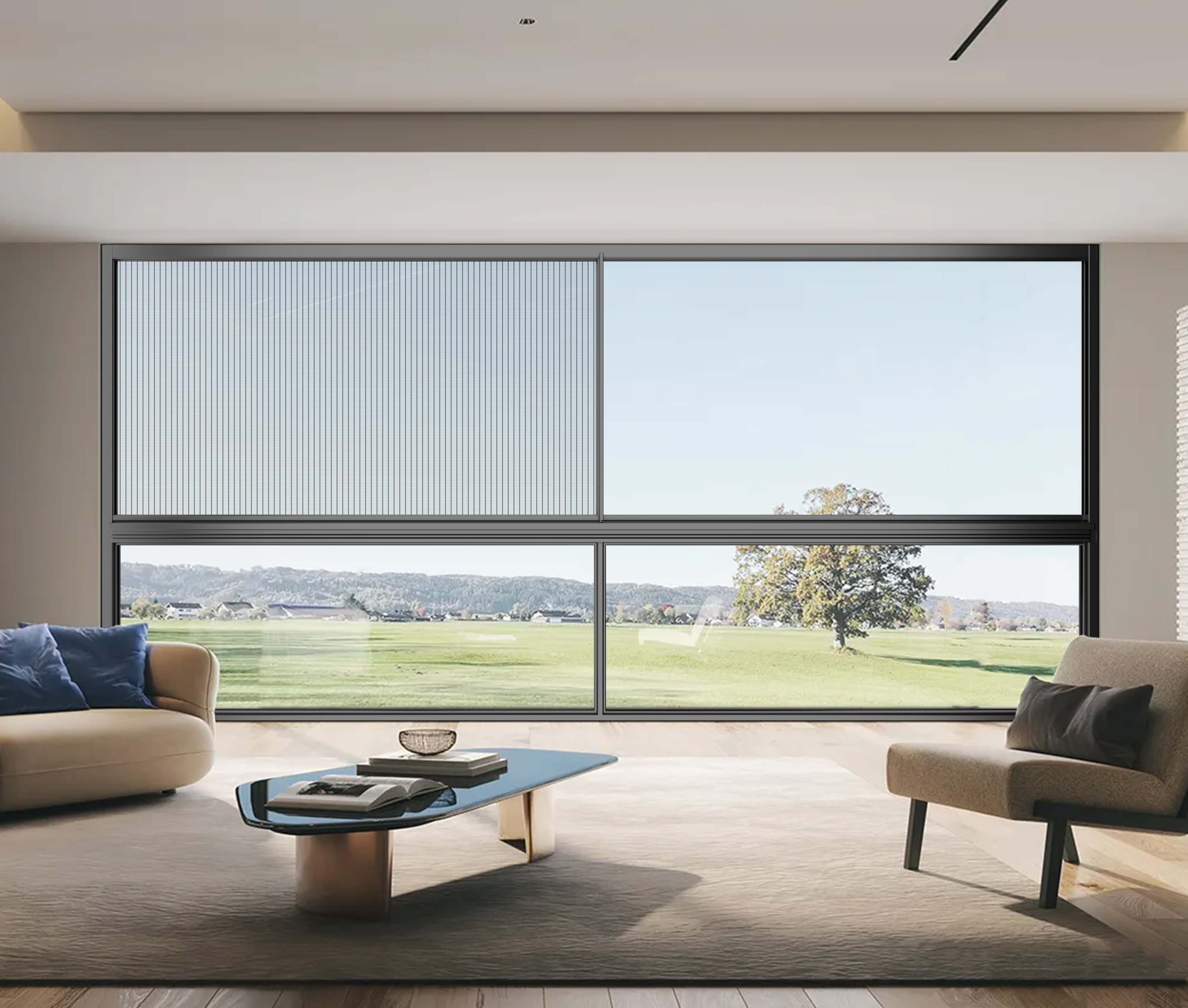 Six tracks, double rows of wheels, remain stable in wind and rain, and give a sense of security. Super large opening changes the boundaries of traditional indoor windows,Under the closed state of the window, the sense of transparency is abundant. The ventilation area is up to 50% and the lighting area is up to 90%, making the beauty boundless and endowing the space with a better lighting advantage.Extremely narrow visible surface gives a stronger visual sense,Matched with a super-large landscape handrail, in your leisure time, you can enjoy flowers and the moon while sipping tea and living a peaceful life. It fulfills all your imaginations. The scenery and performance are both well balanced.