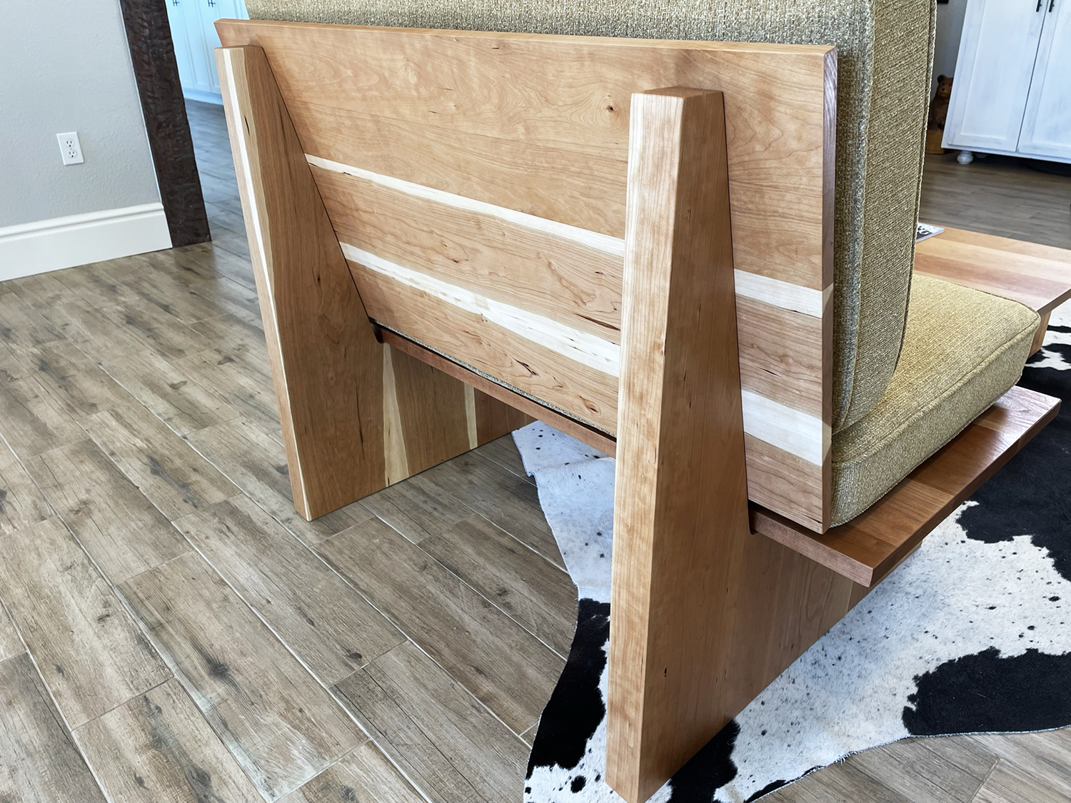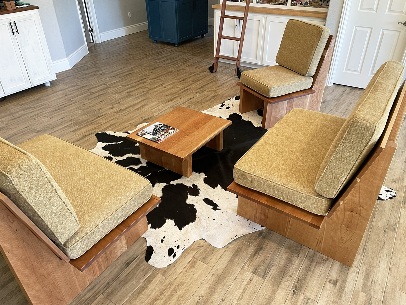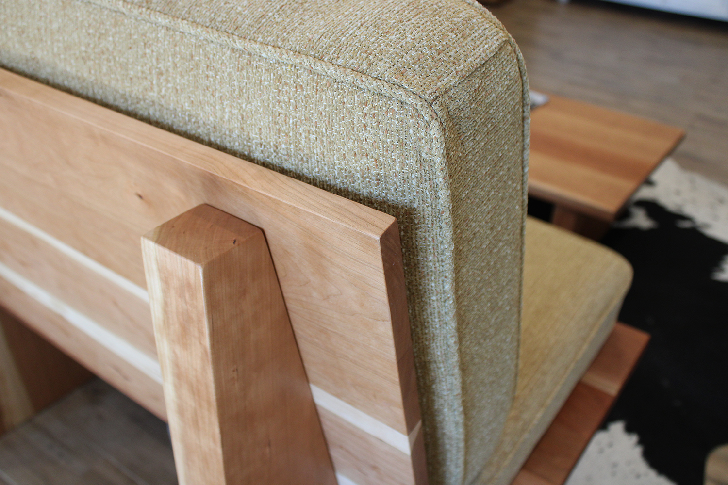 The Felten Collection is a complete living room set inspired by platform sofas and the midcentury modern aesthetic. Built with care and traditional craftsmanship, the set includes two sofas, a chair, and a coffee table. Each piece is crafted from solid American Black Cherry that provides a natural warmth while the design strikes a balance between chunky and elegant, striving to present a refined and highly functional furniture collection. Finished with hand-rubbed oil urethane, the Felten furniture was crafted to provide a lifetime of enjoyment.